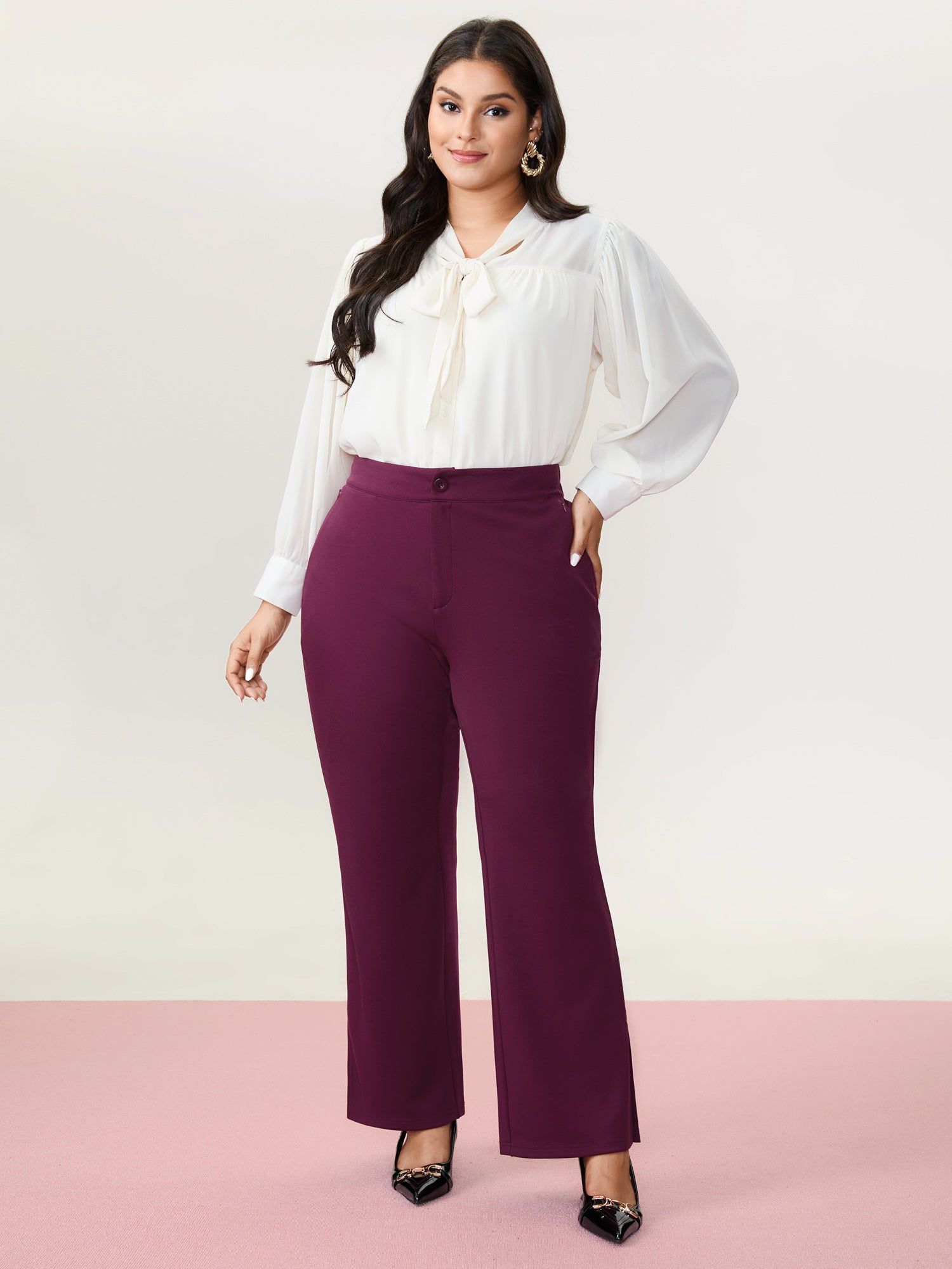 Stretchy Waist Straight-Leg Pants