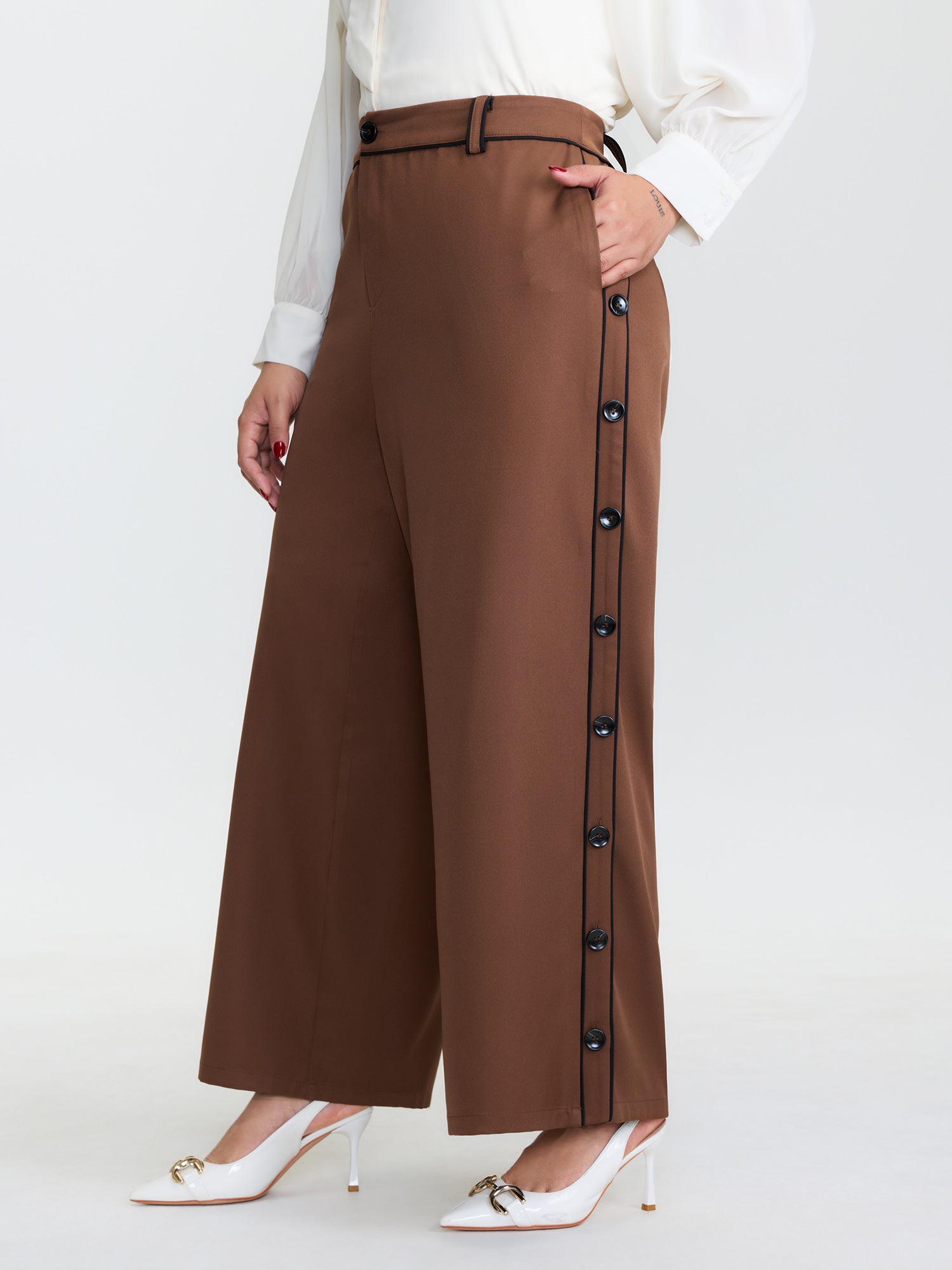Color Contrast Trim Button Detail Pants