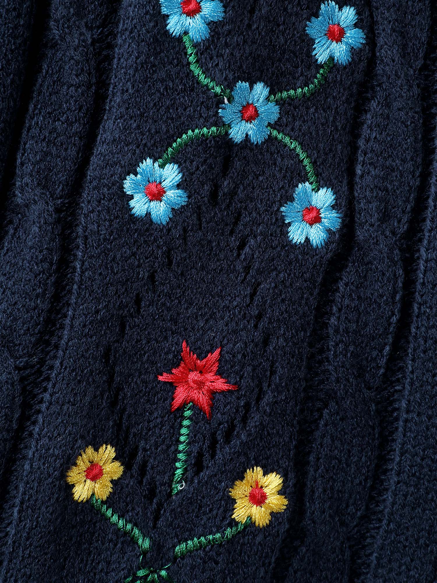 Cable Knit Embroidered Raglan Sleeve Pullover