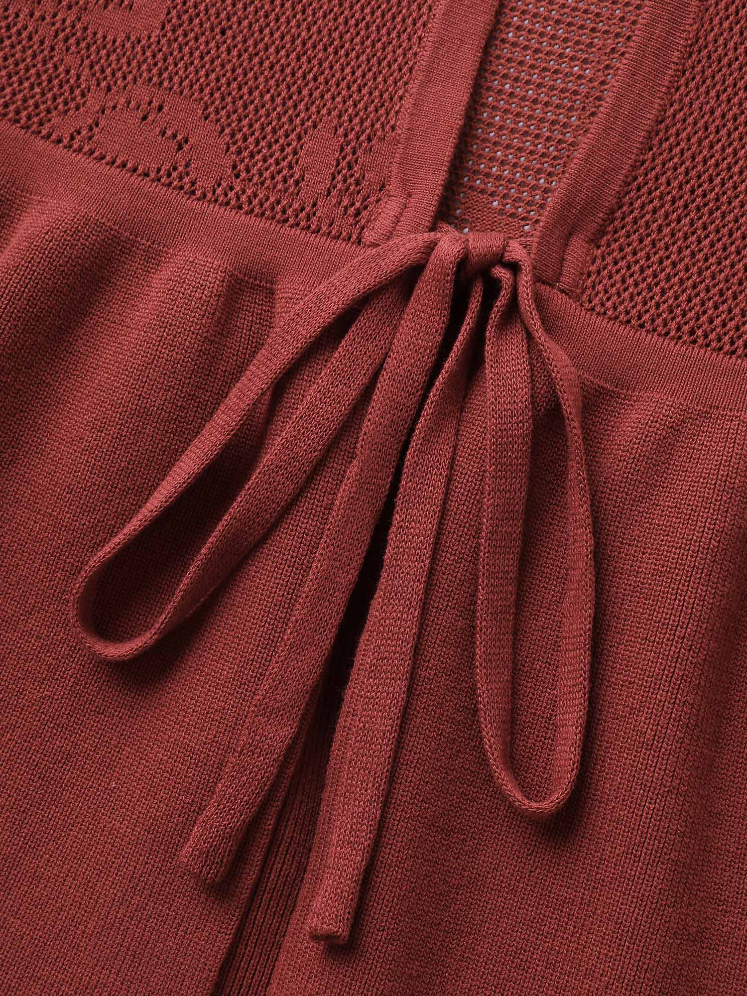 Eyelet Jacquard Ruffled Hem Knit Cardigan