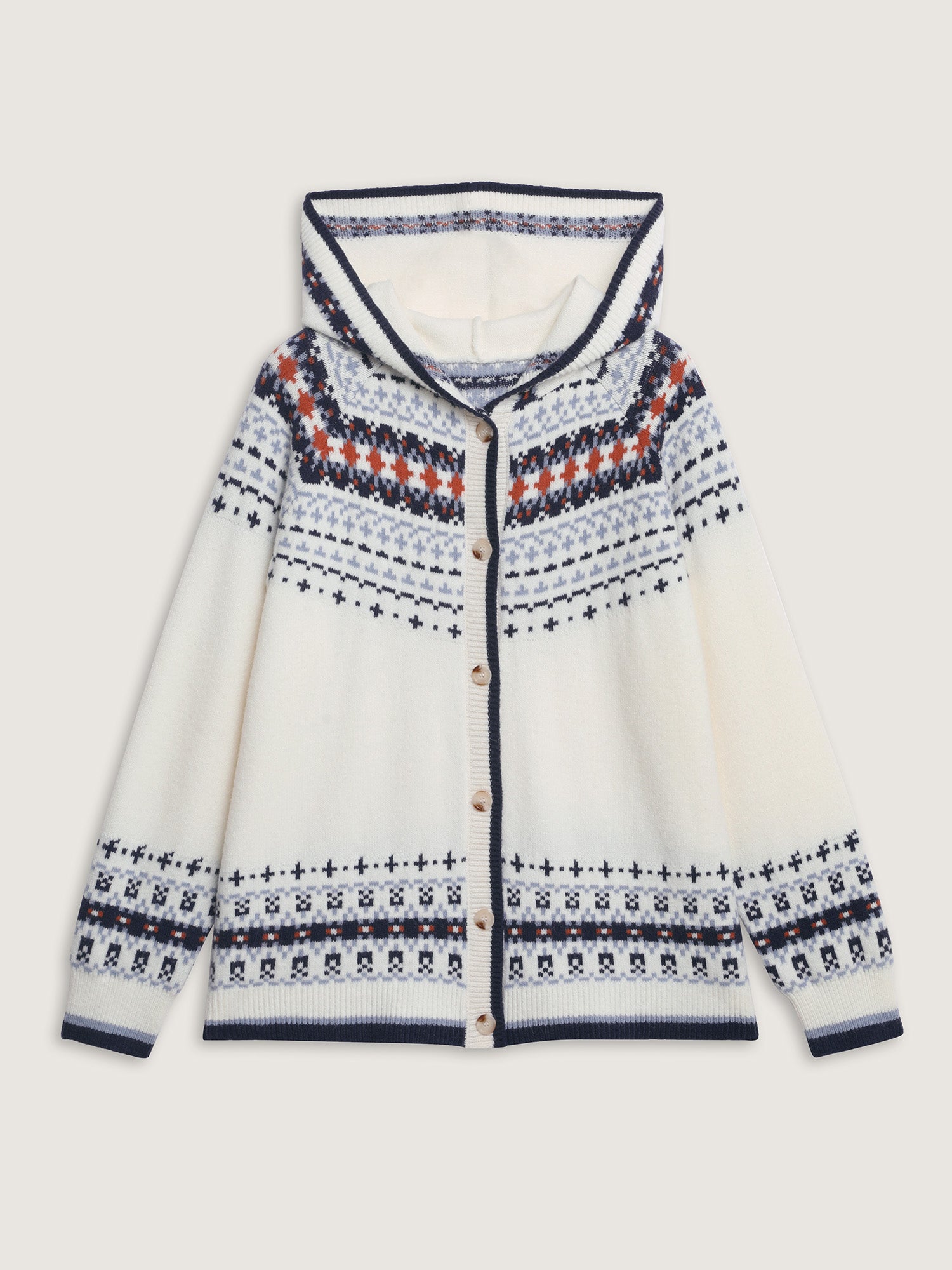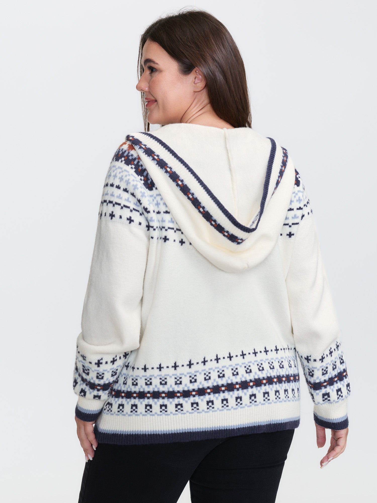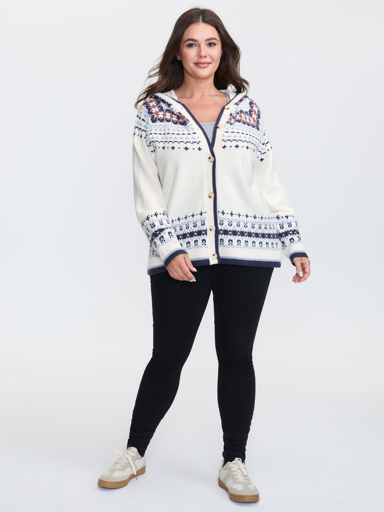 Shop Hooded Jacquard Pattern Button Knit Cardigan now and redefine your style with confidence at BloomChic. Tailored for mid and plus-size women. This trendy Sweaters Cardigans Women, sizes 10-30. Color:Ivory;Style:Leisure;Neckline:Hooded;Sleeve Type:Raglan sleeve;Prints:Geometric & color block;Details:Button, Contrast;Pocket:Patch pocket;Belt:No-belt;Closure Type:Button