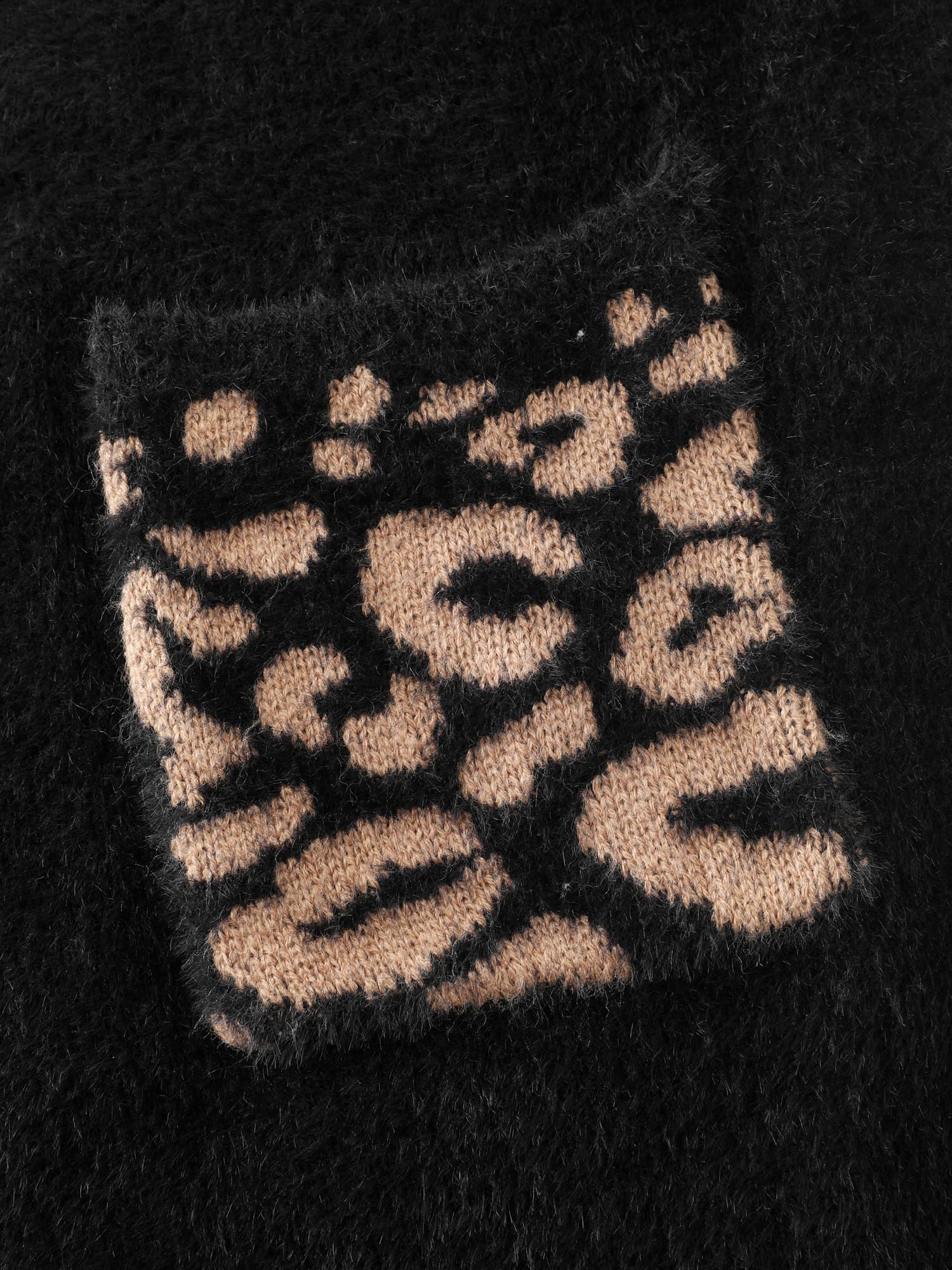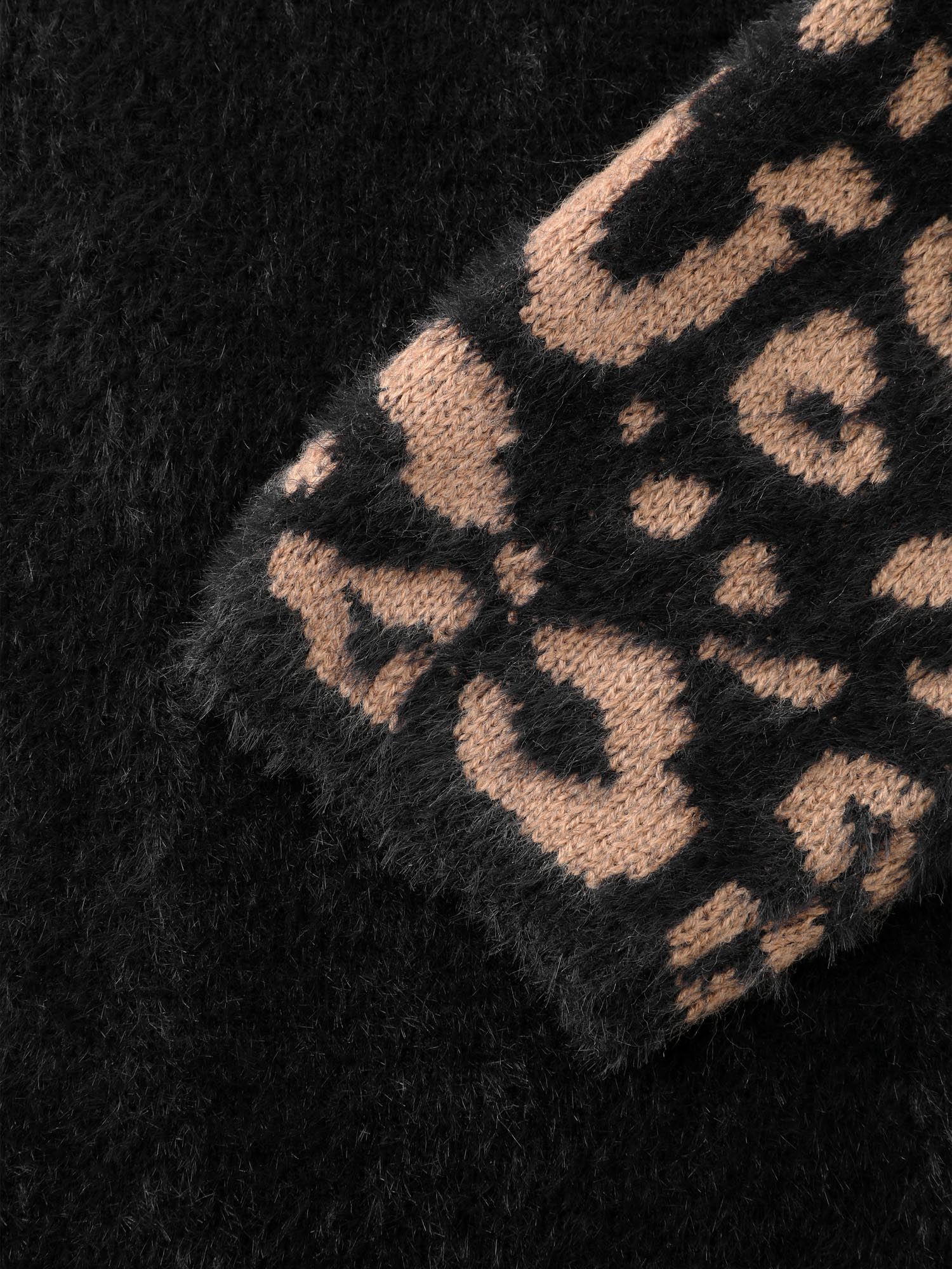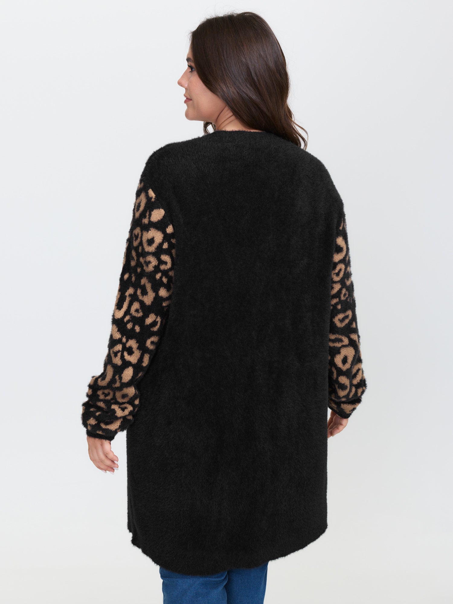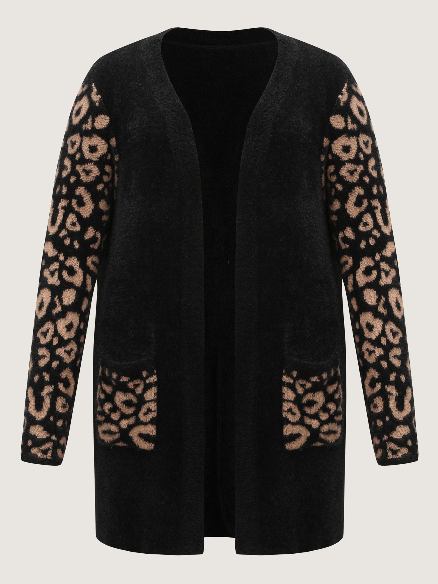 Shop Leopard Jacquard Furry Open-Front Knit Cardigan now and redefine your style with confidence at BloomChic. Tailored for mid and plus-size women. This trendy Sweaters Cardigans Women, sizes 10-30. Color:Black;Style:Casual;Neckline:Kimono collar;Sleeve Type:Drop shoulder sleeve;Prints:Animal print;Details:Contrast;Pocket:Patch pocket;Belt:No-belt;Closure Type:Open front without closure