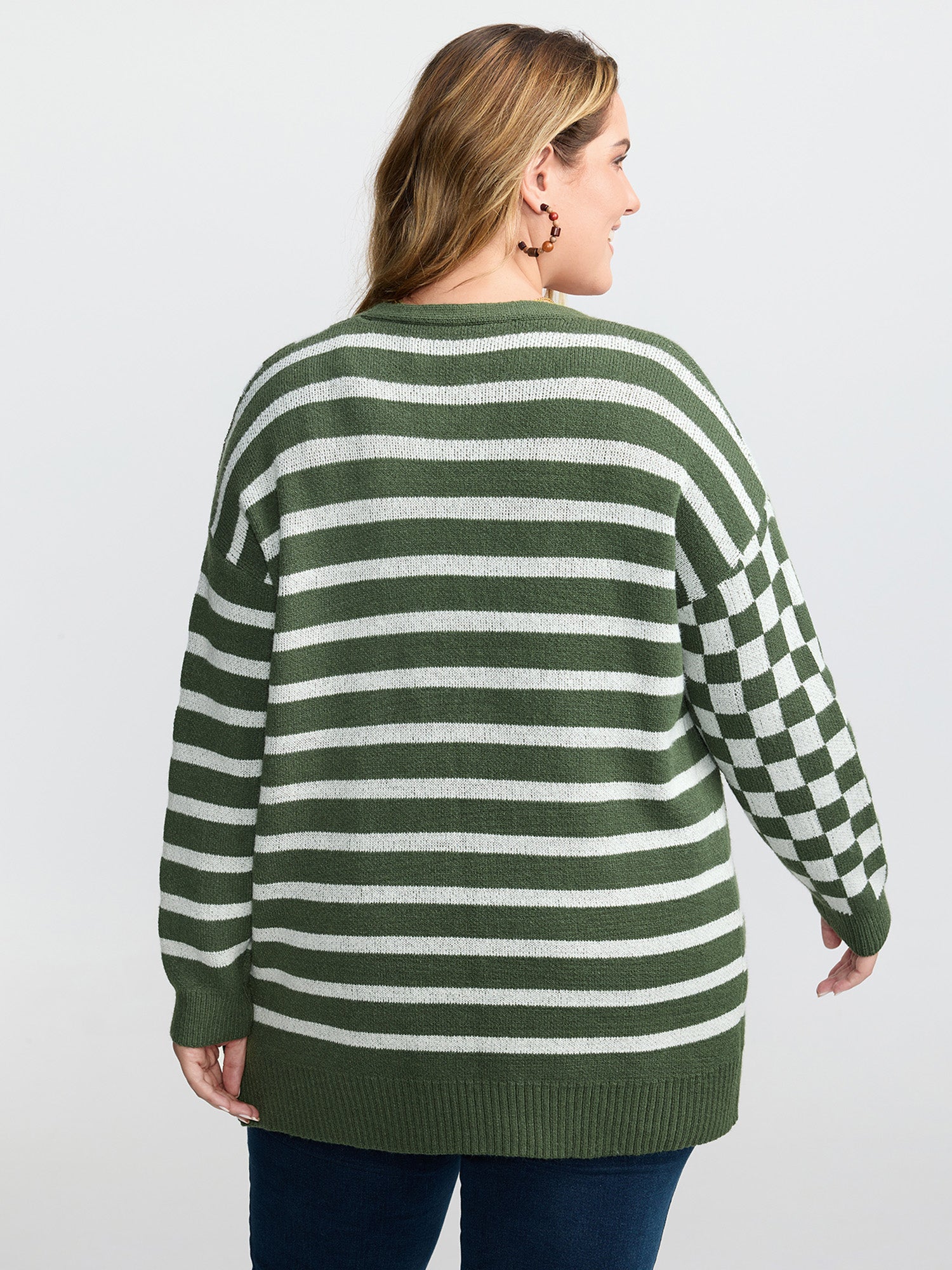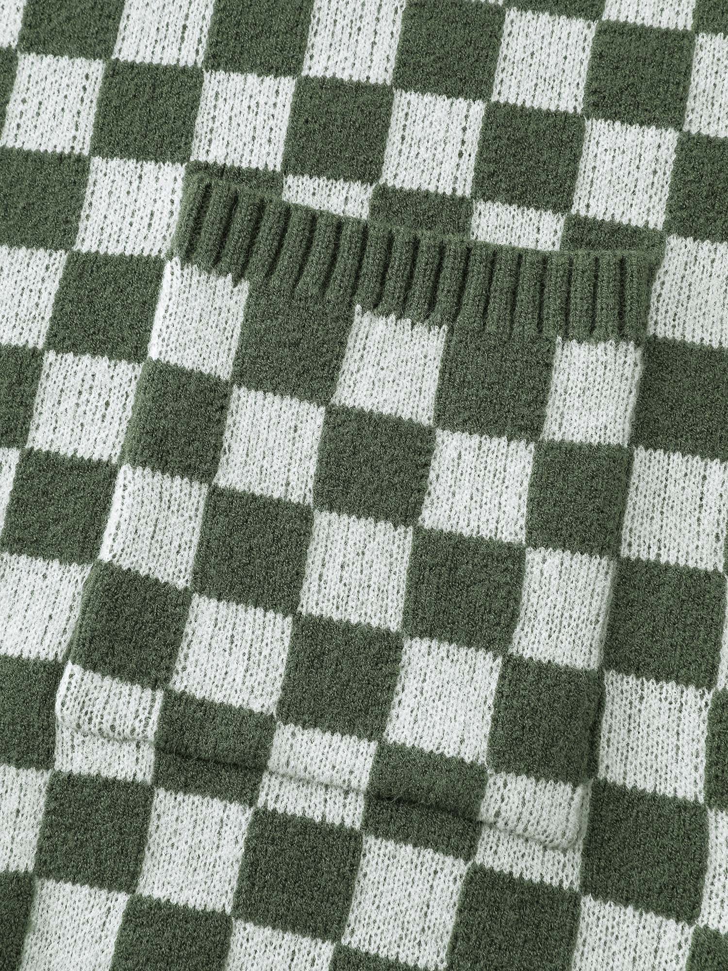 Supersoft Stripe Checkered Pockets Knit Cardigan