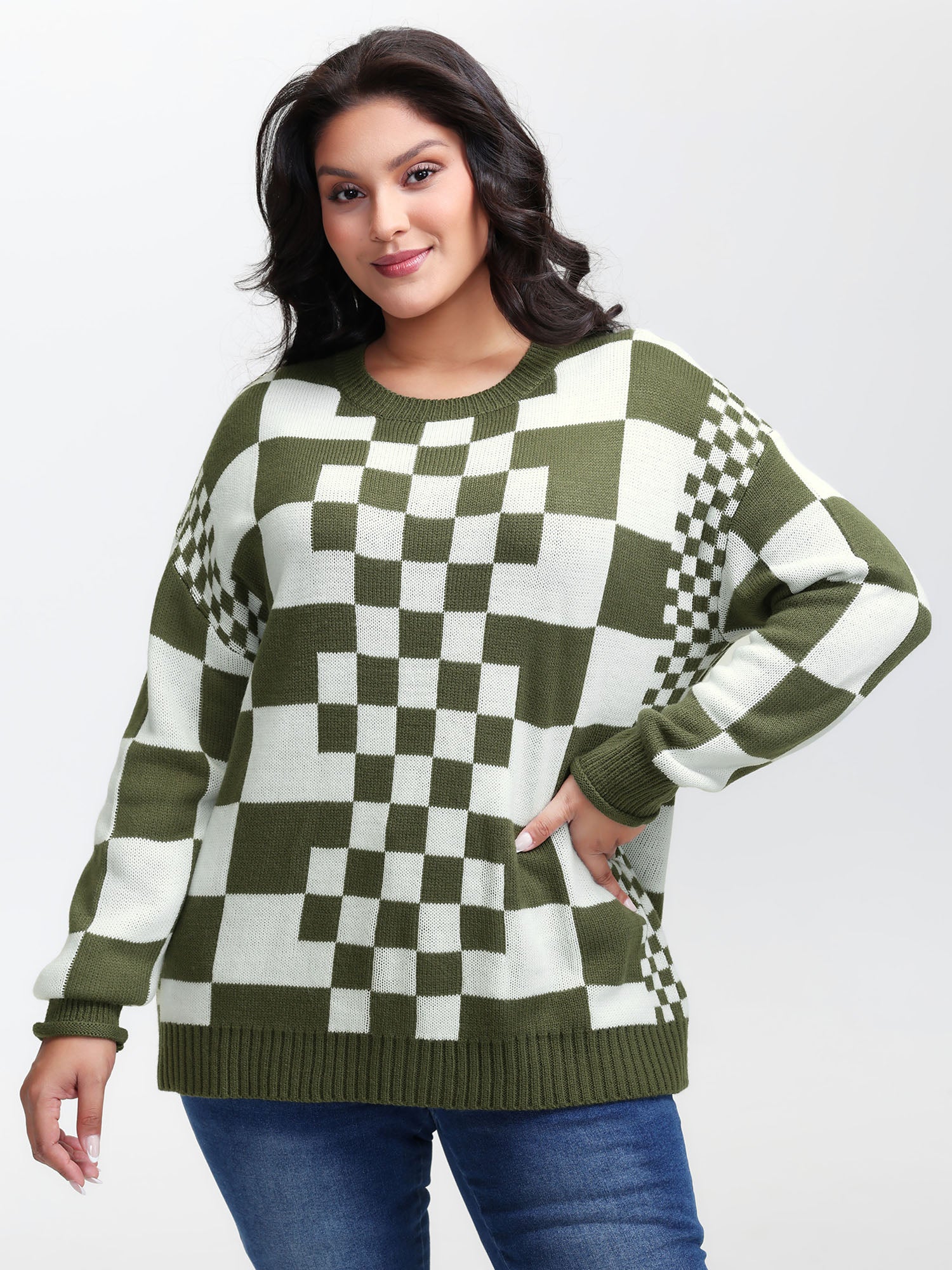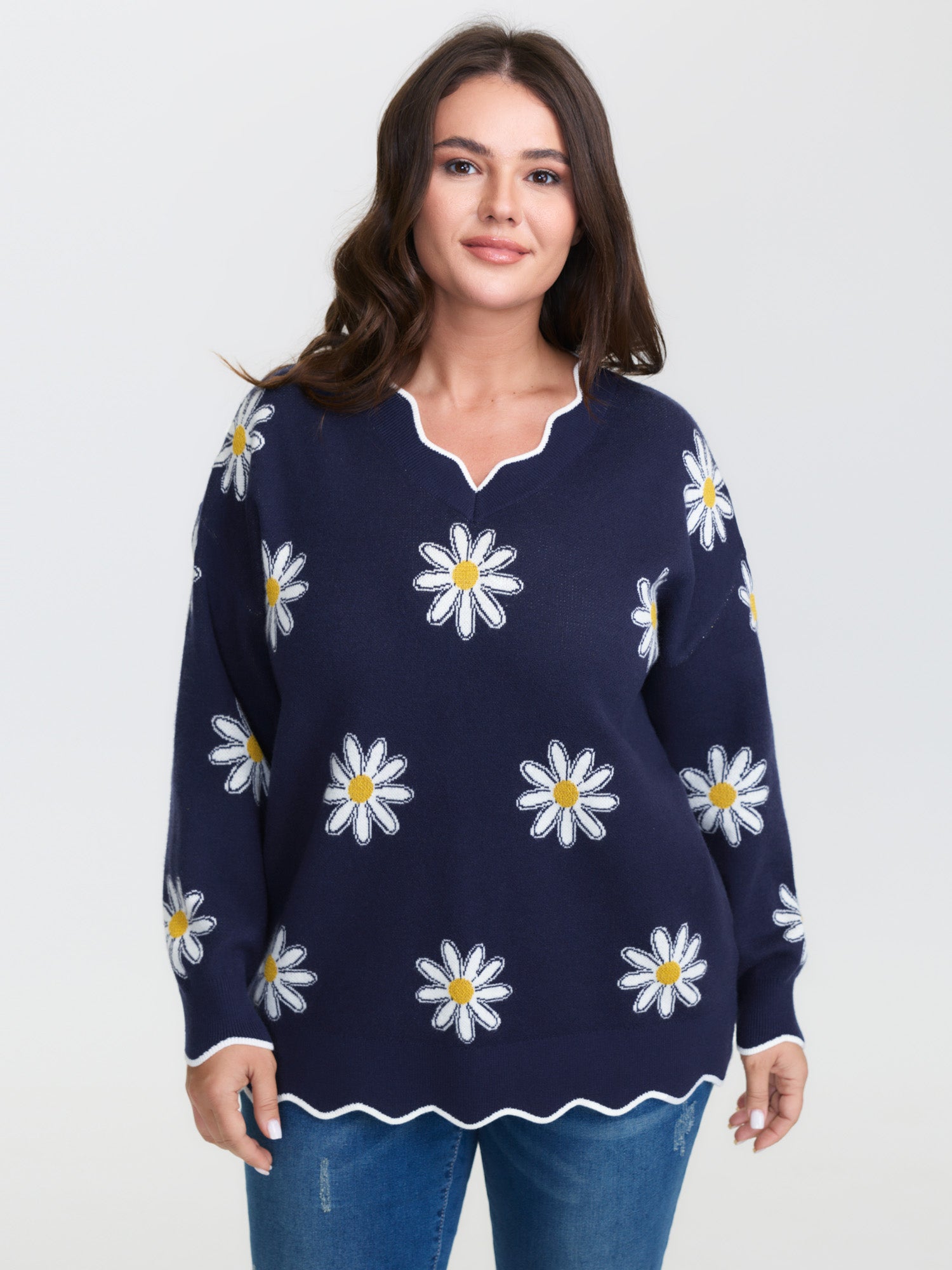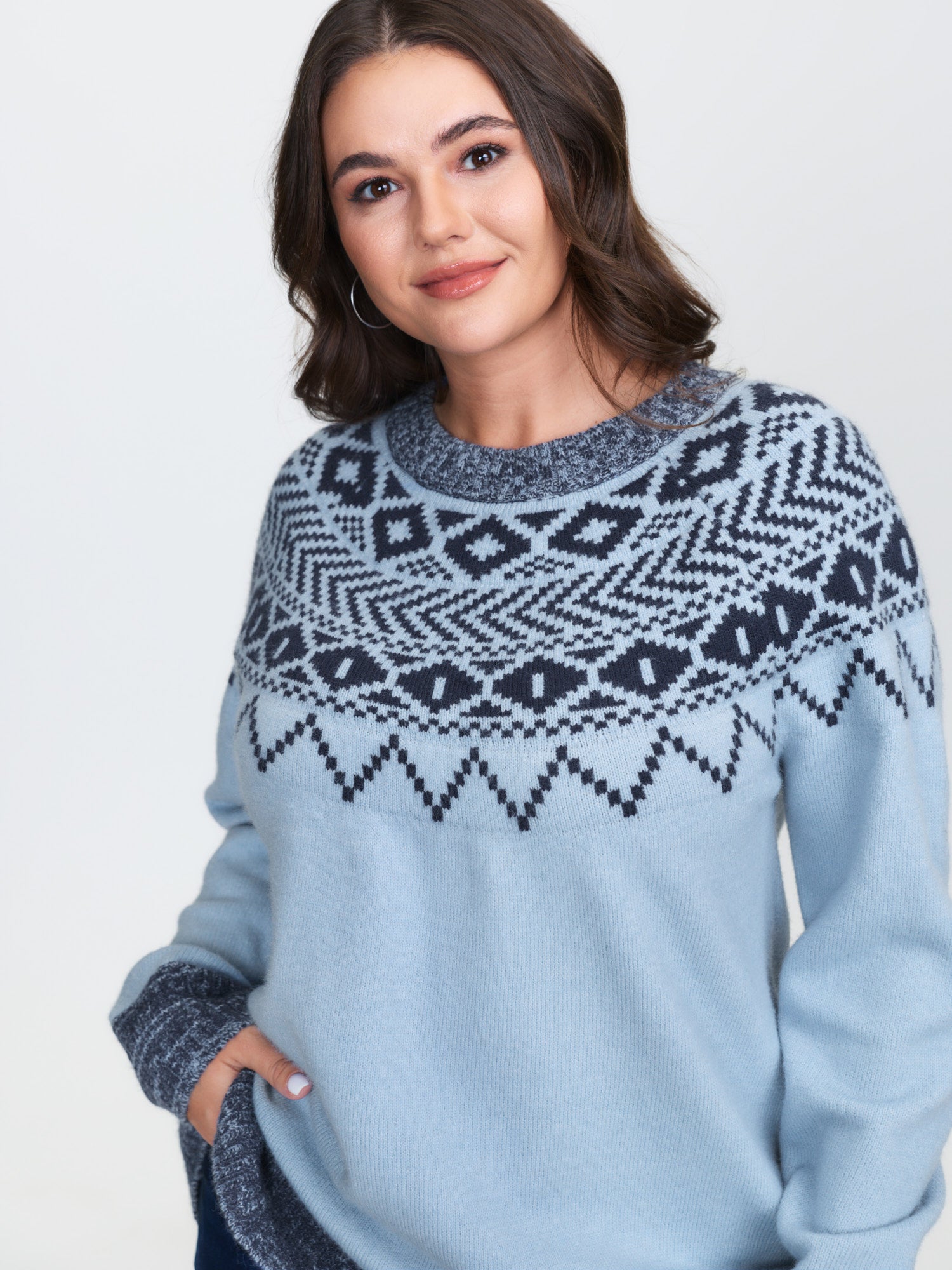 Fair Isle Floral Pattern Ribbed Hem Pullover