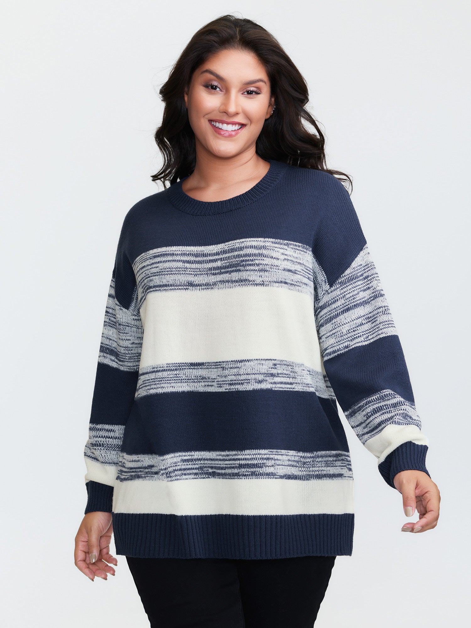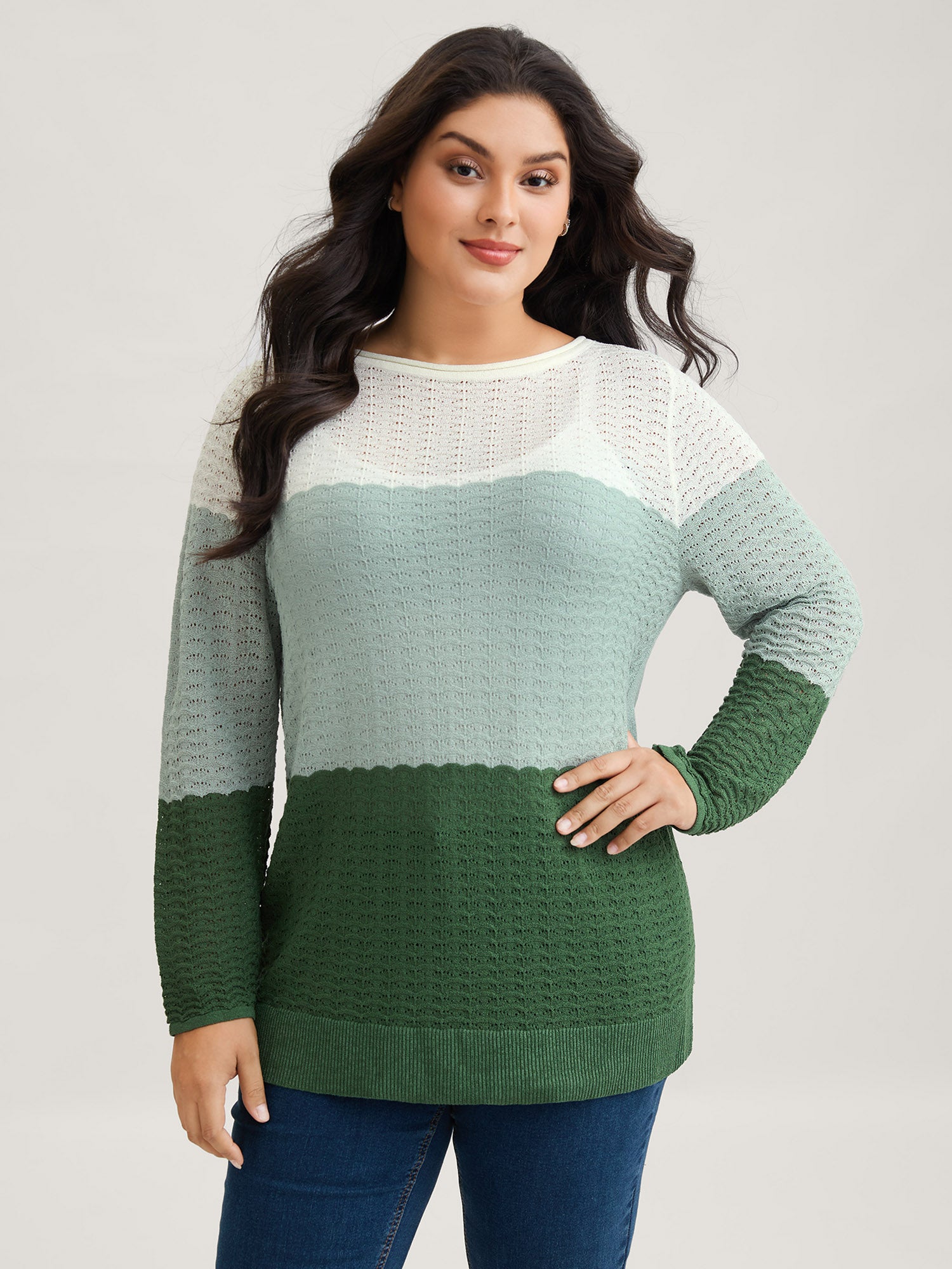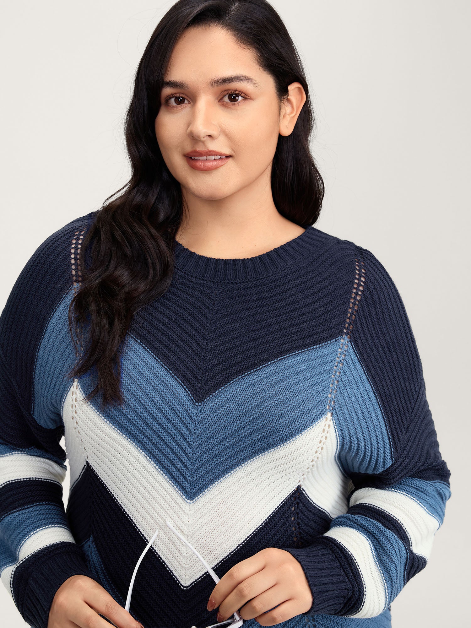 Round Neck Colorblock Asymmetrical Hem Pullover