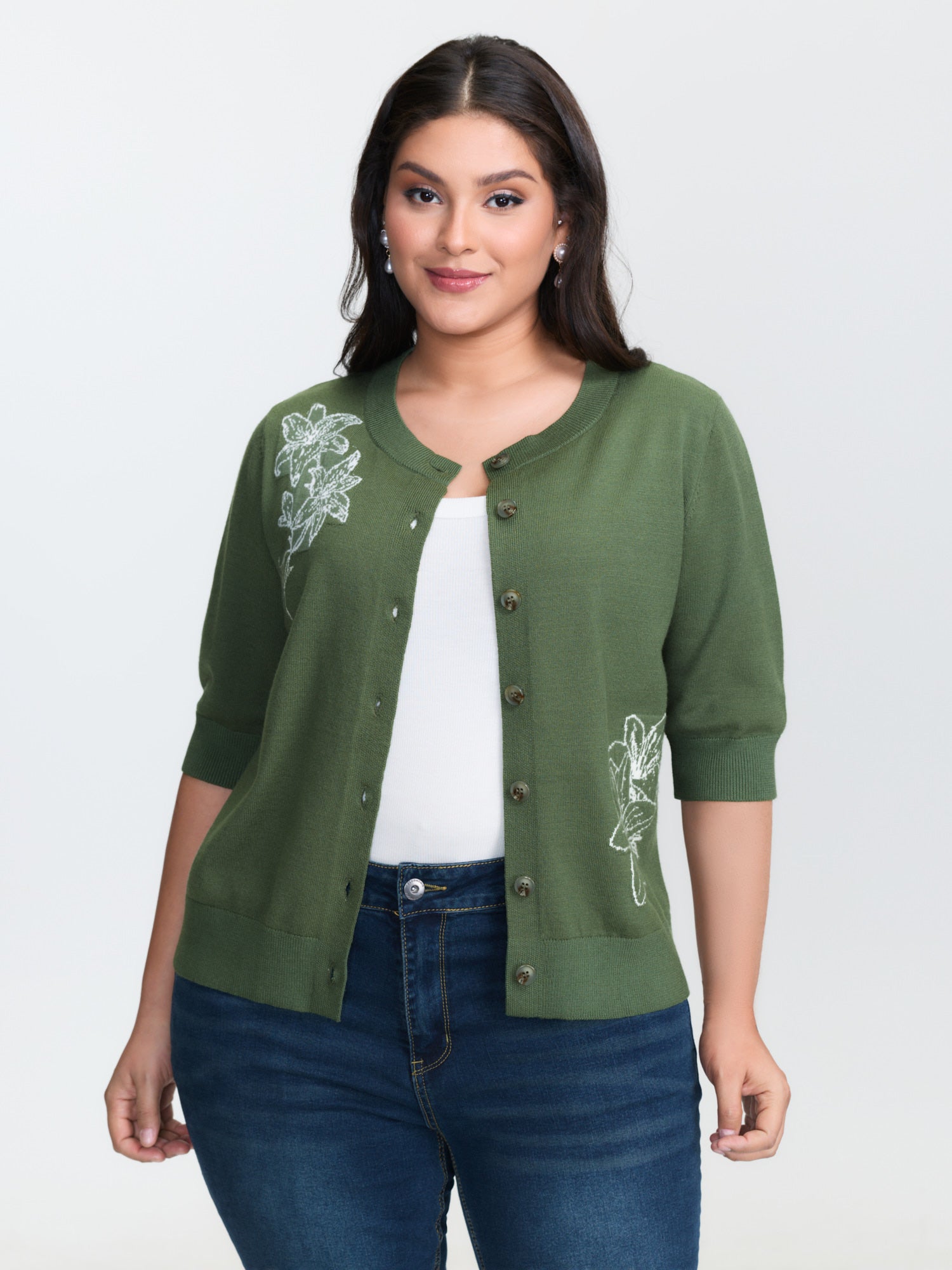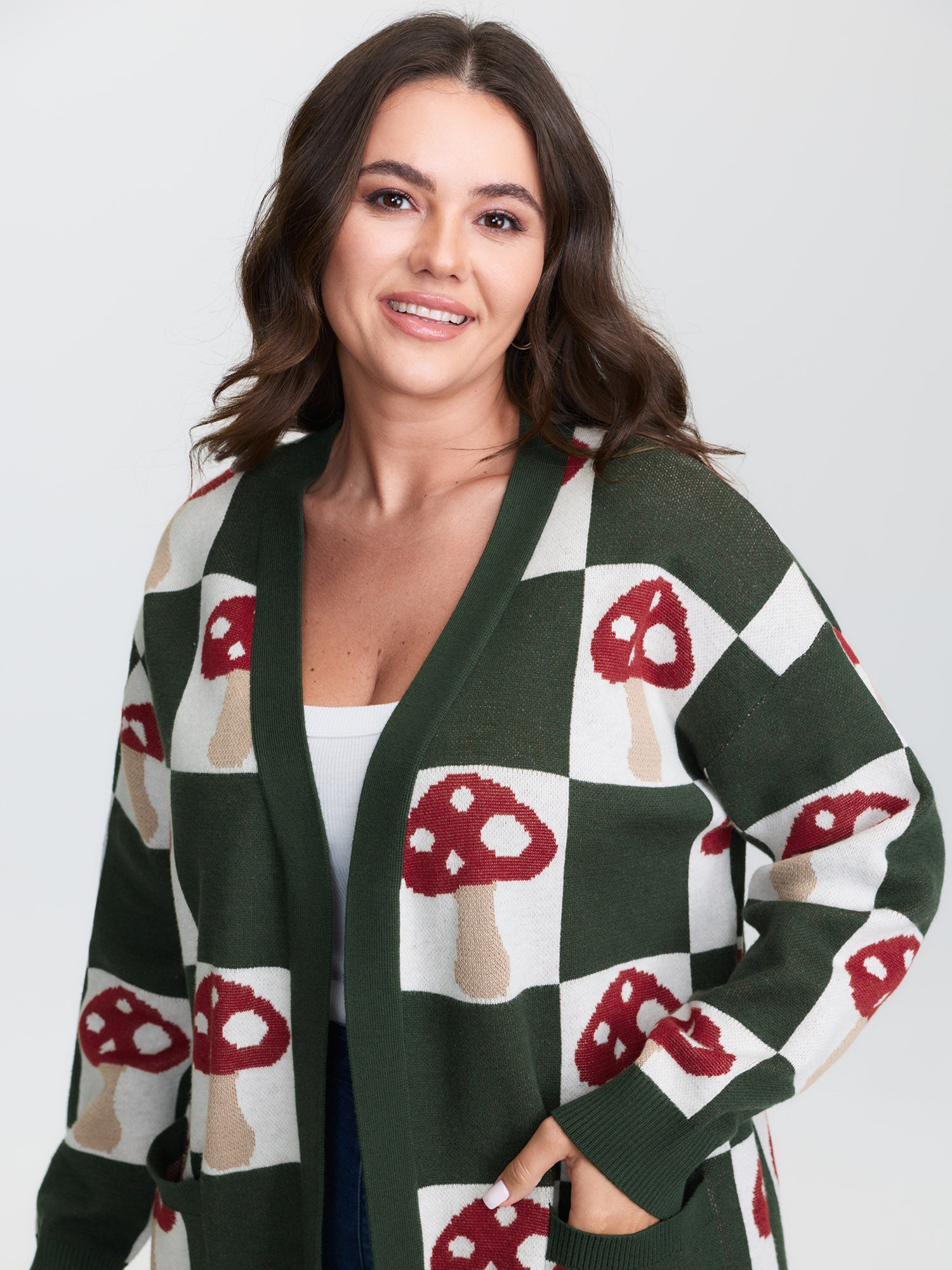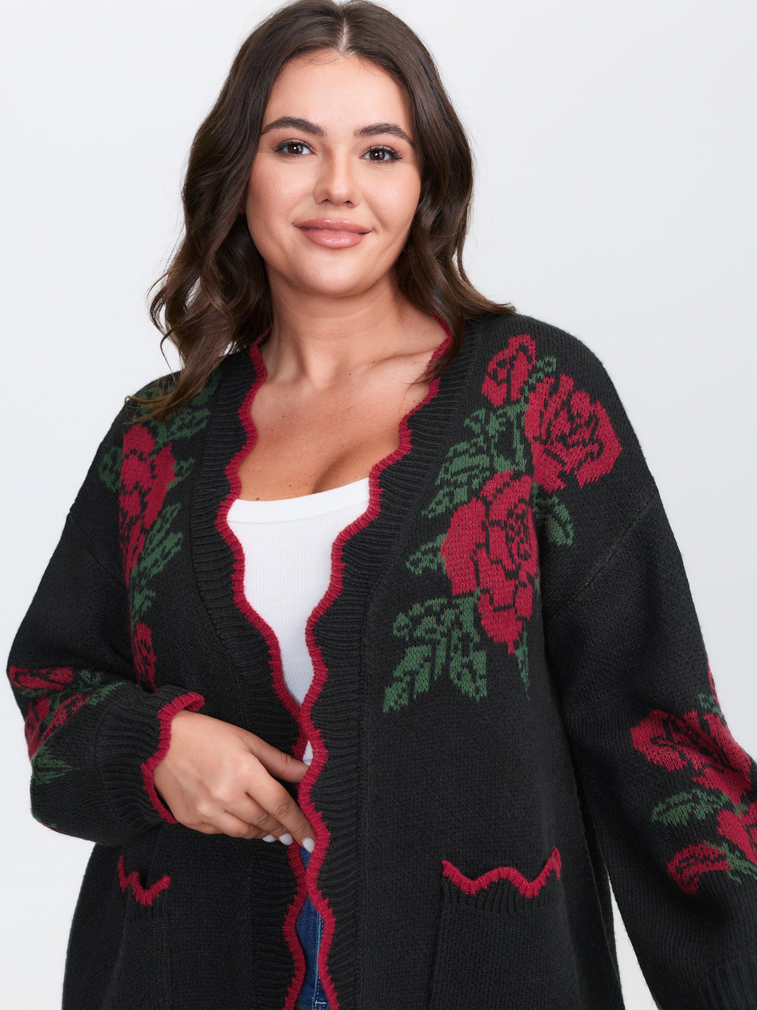 Rose Pattern Jacquard Color Contrast Knit Cardigan