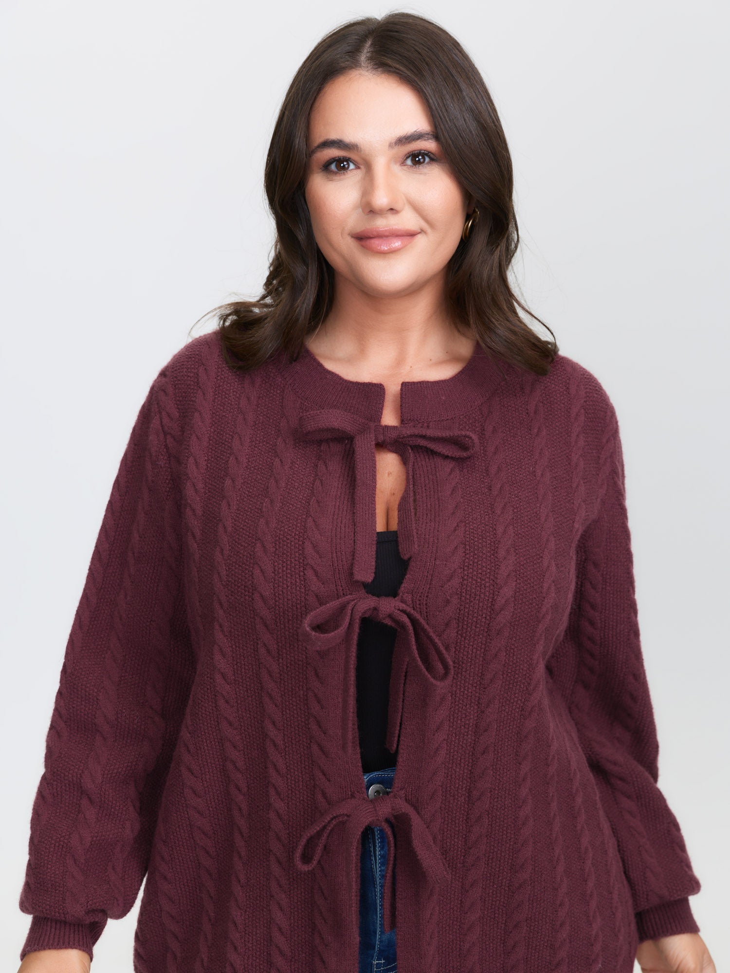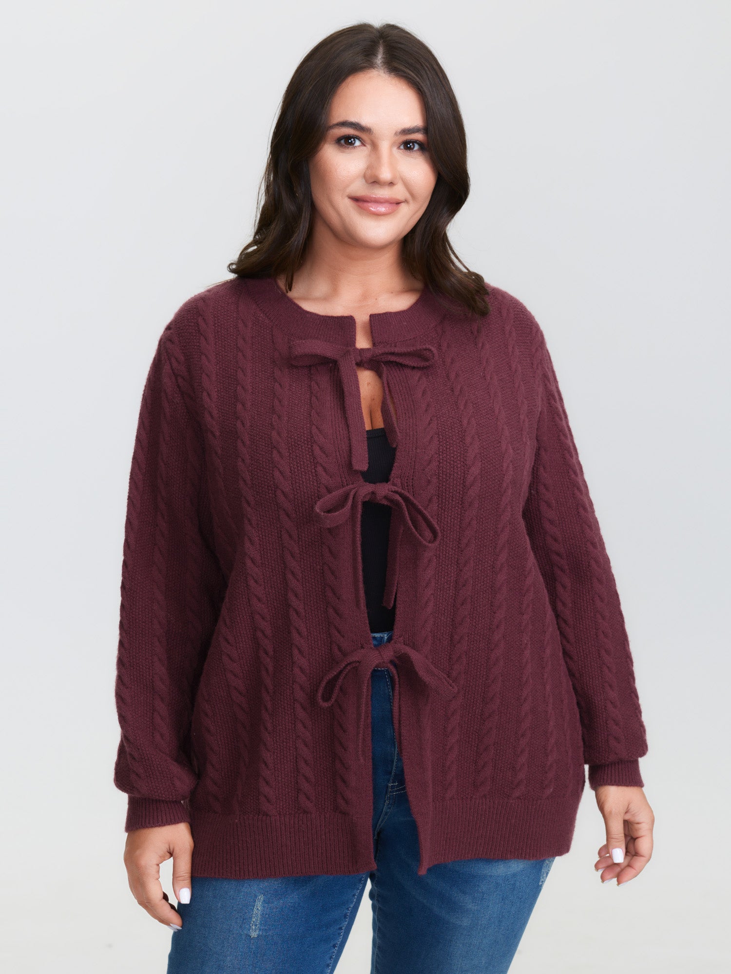 Stretchy Braided Textured Front-Tie Knit Cardigan