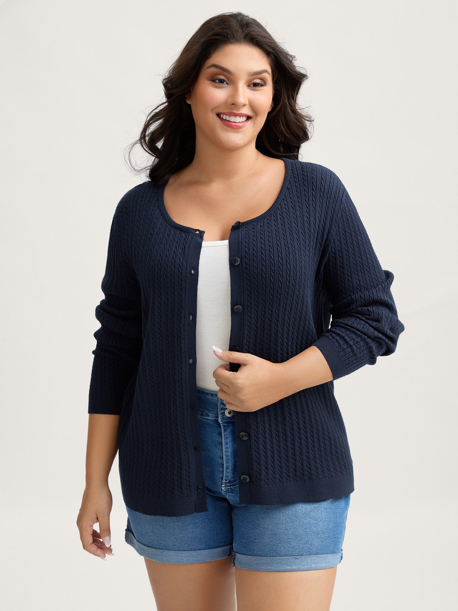 Cut-Out Curvy Front-Tie Knit Cardigan