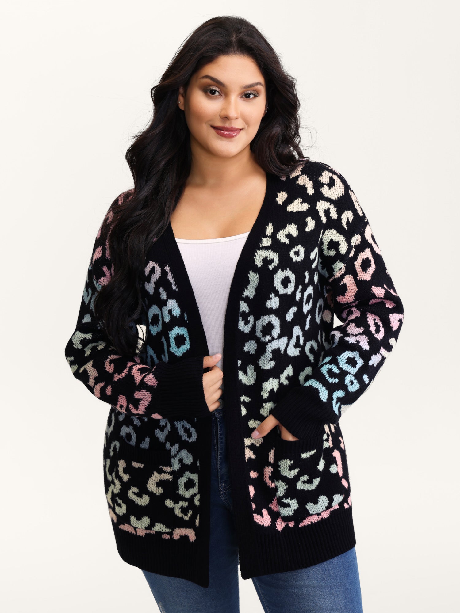 Ombre Gradient Eyelet Trim Knit Cardigan