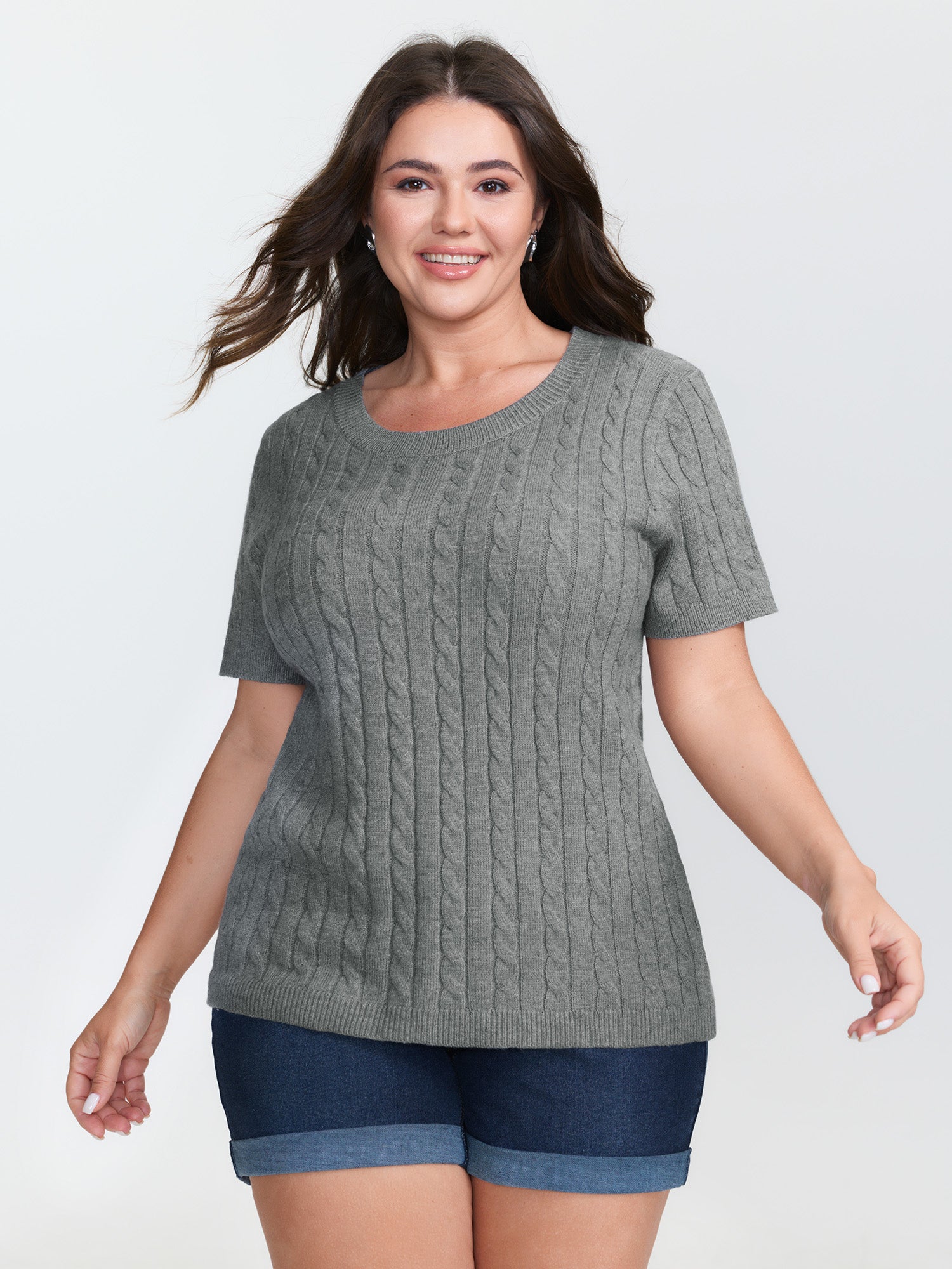 Supersoft Cable Knit Polo Collar Contrast Pullover