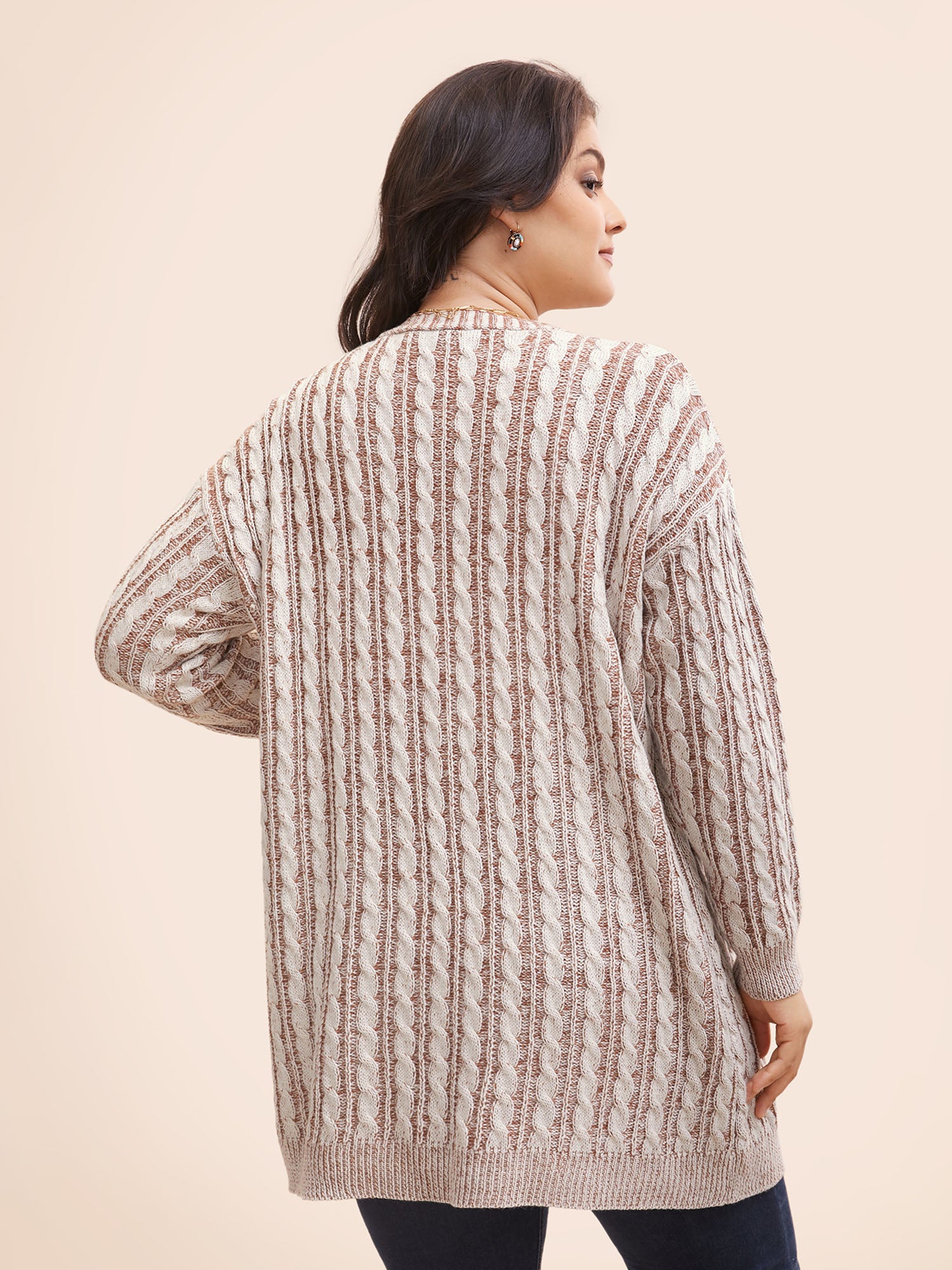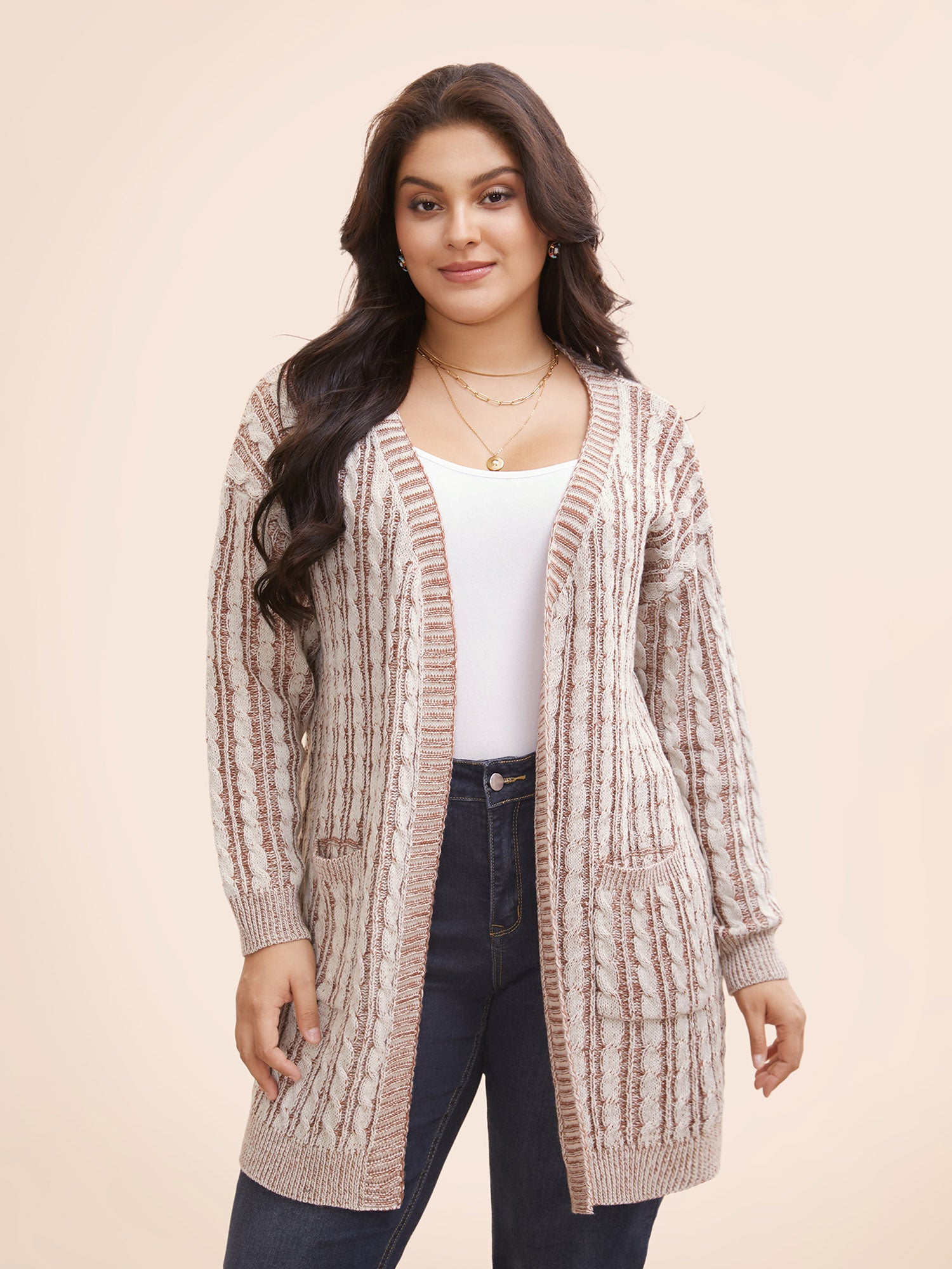 Contrast Trim Cable Knit Pocket Cardigan