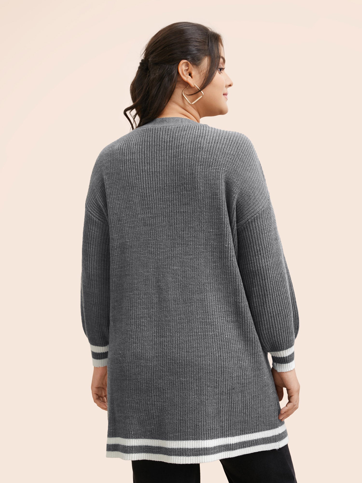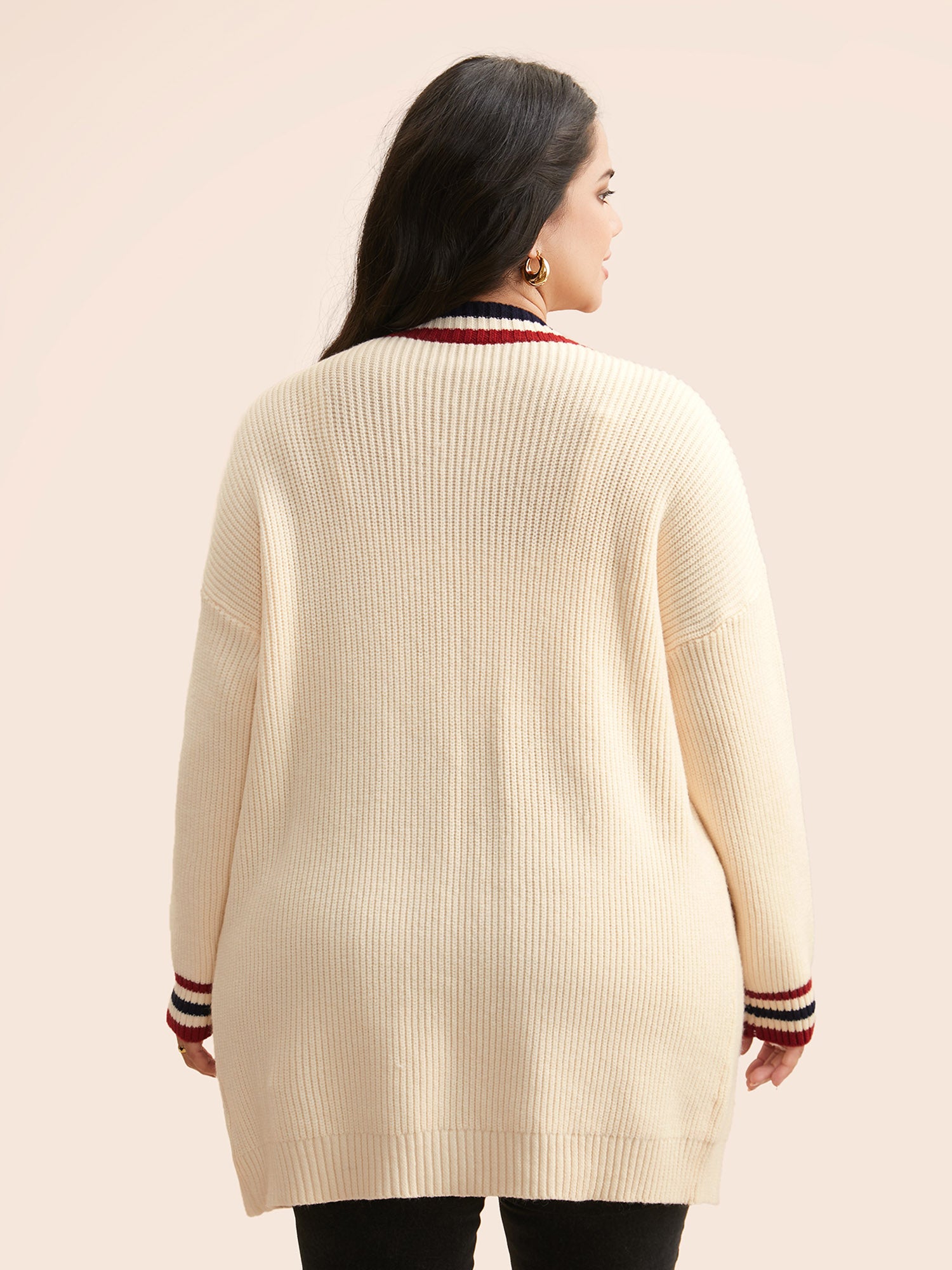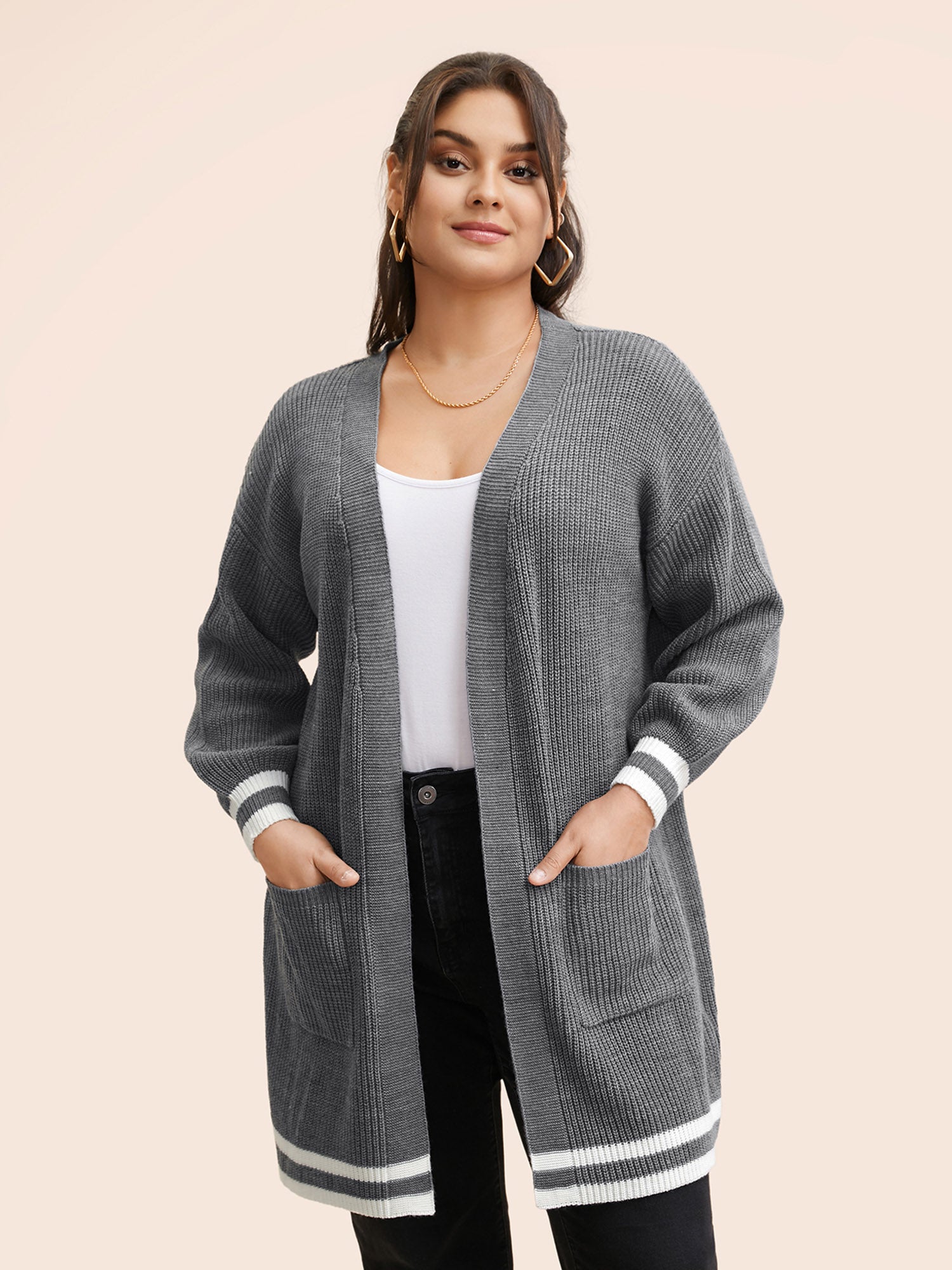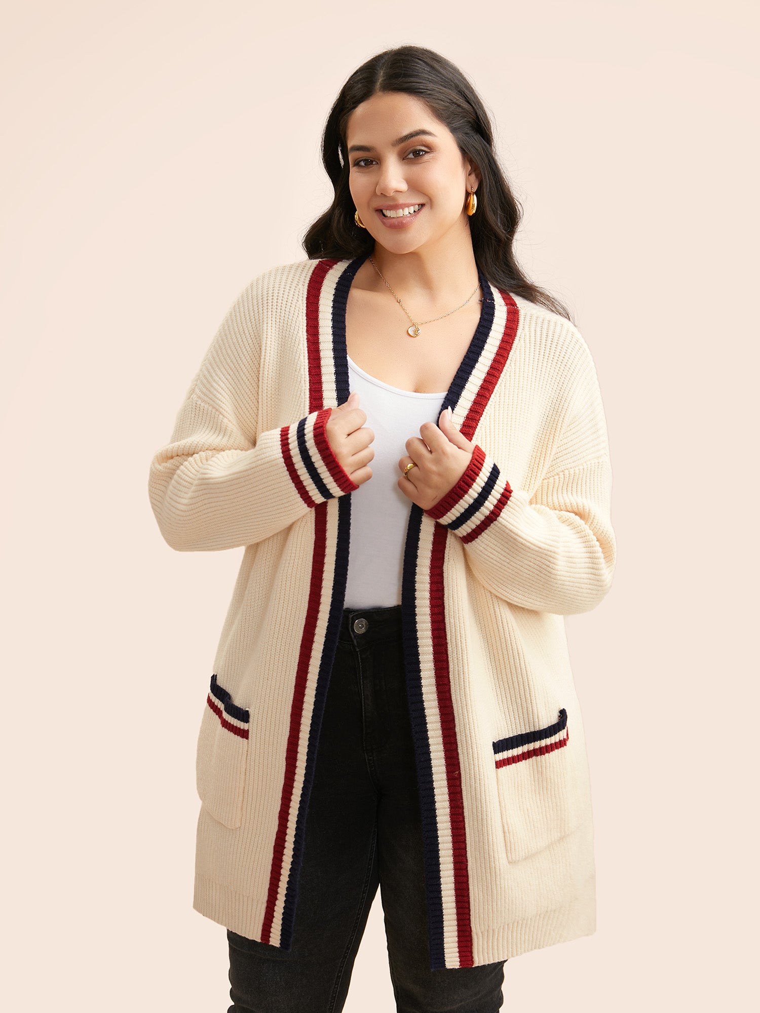 Contrast Striped Pocket Drop Shoulder Cardigan