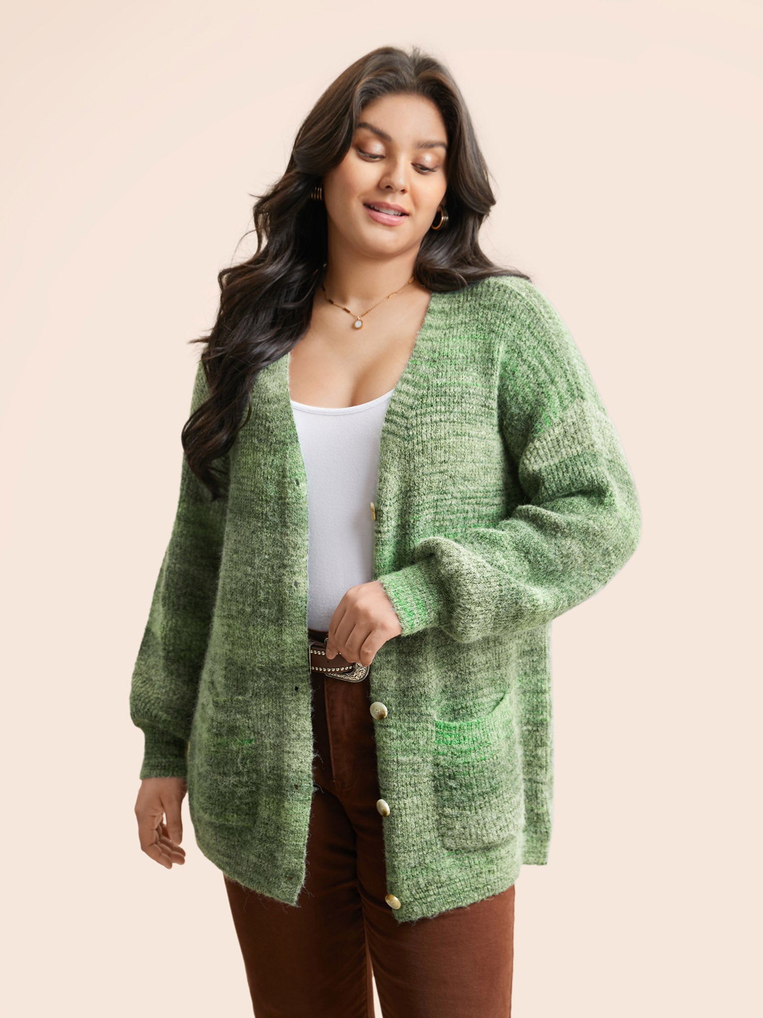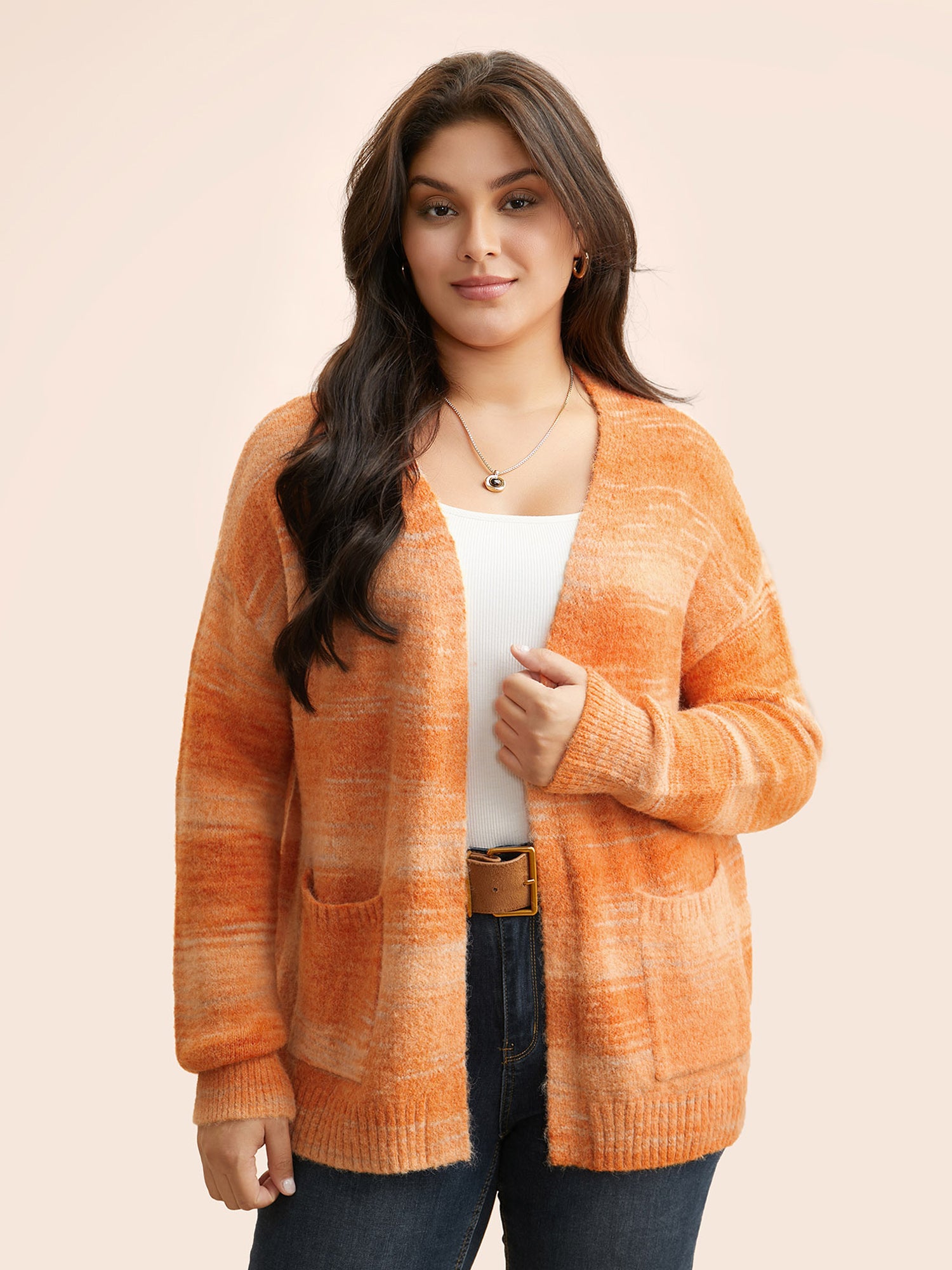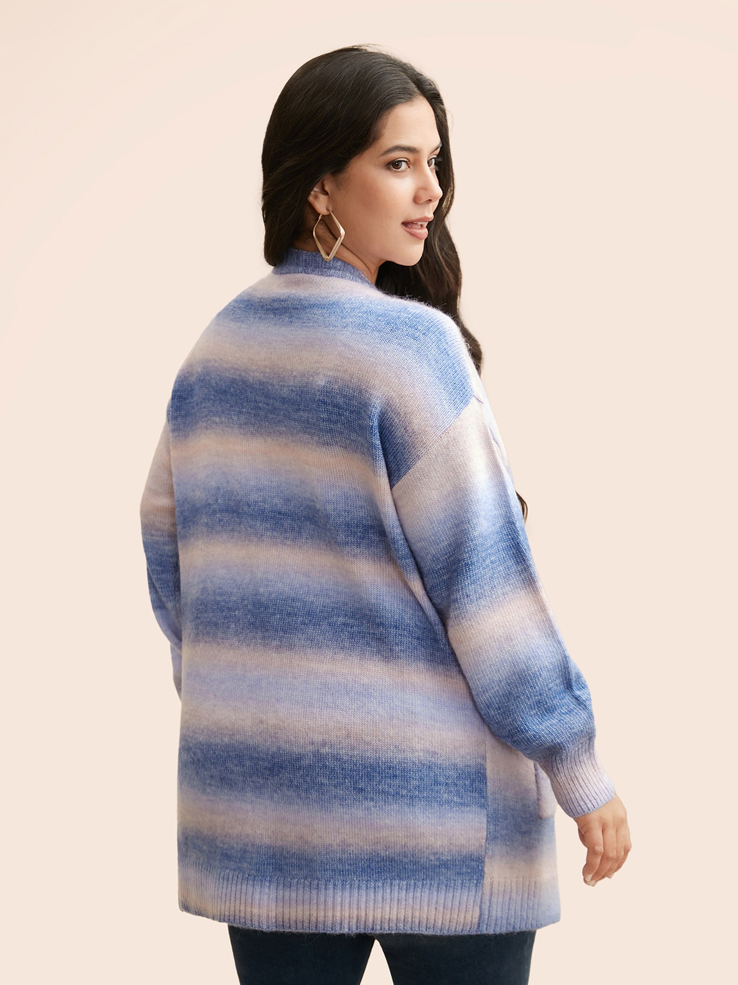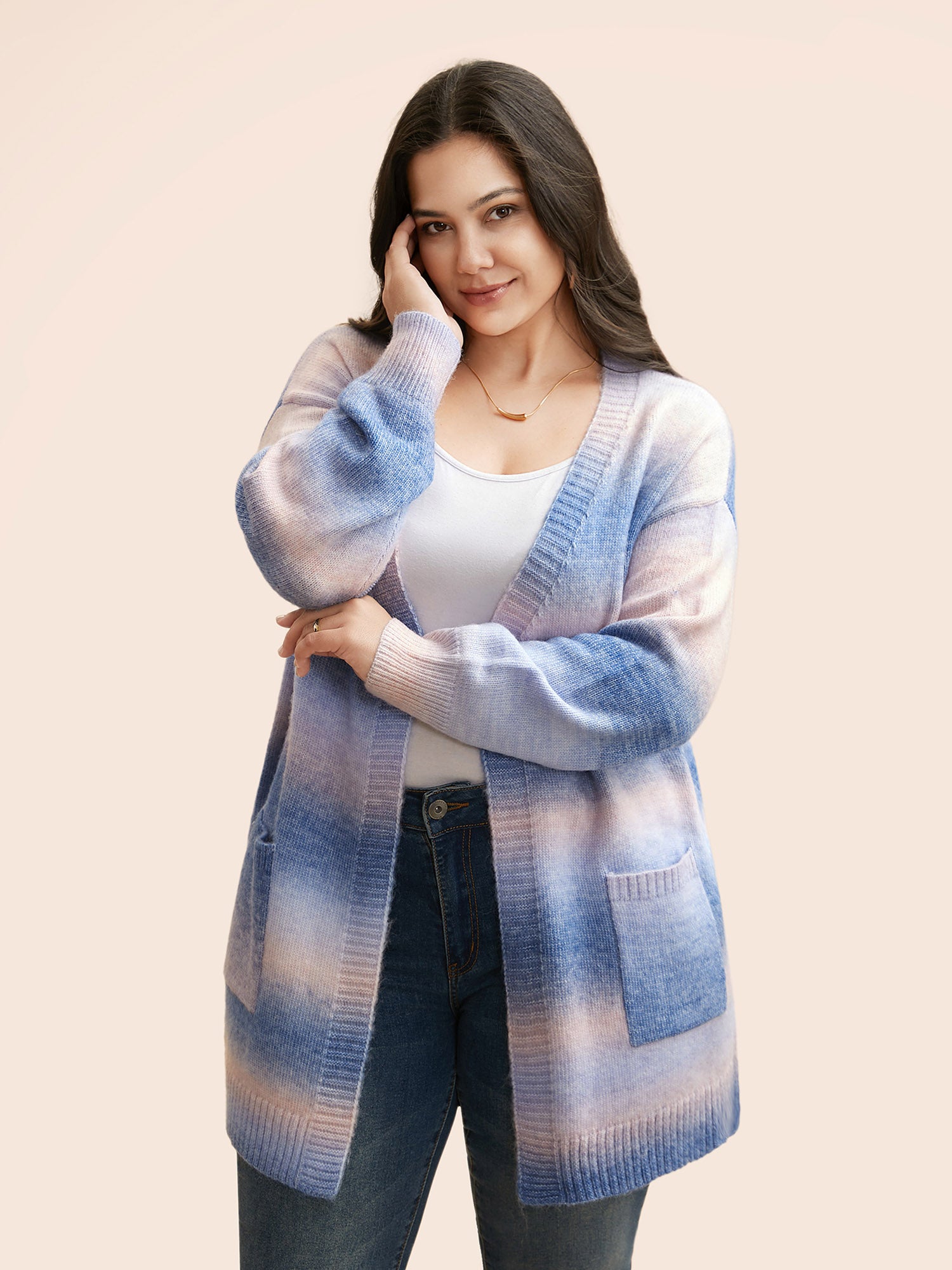 Ombre Patch Pocket Drop Shoulder Cardigan