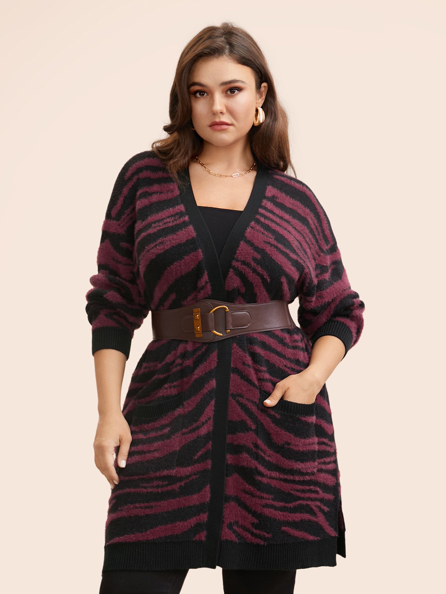 Zebra Print Fluffy Patch Pocket Cardigan