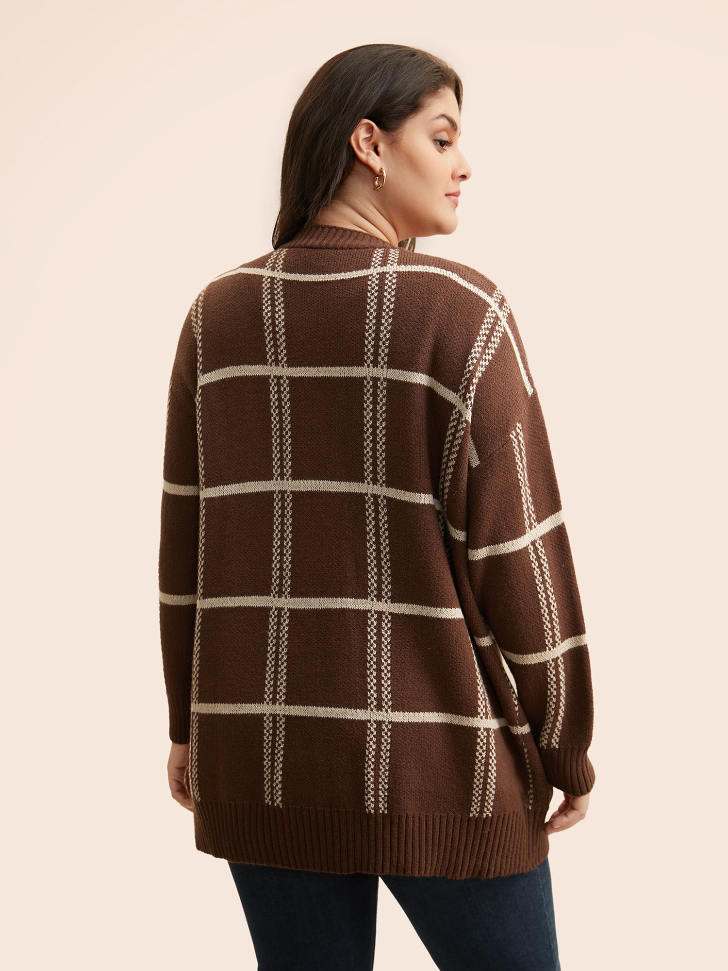 Plaid Drop Shoulder Pocket Cardigan