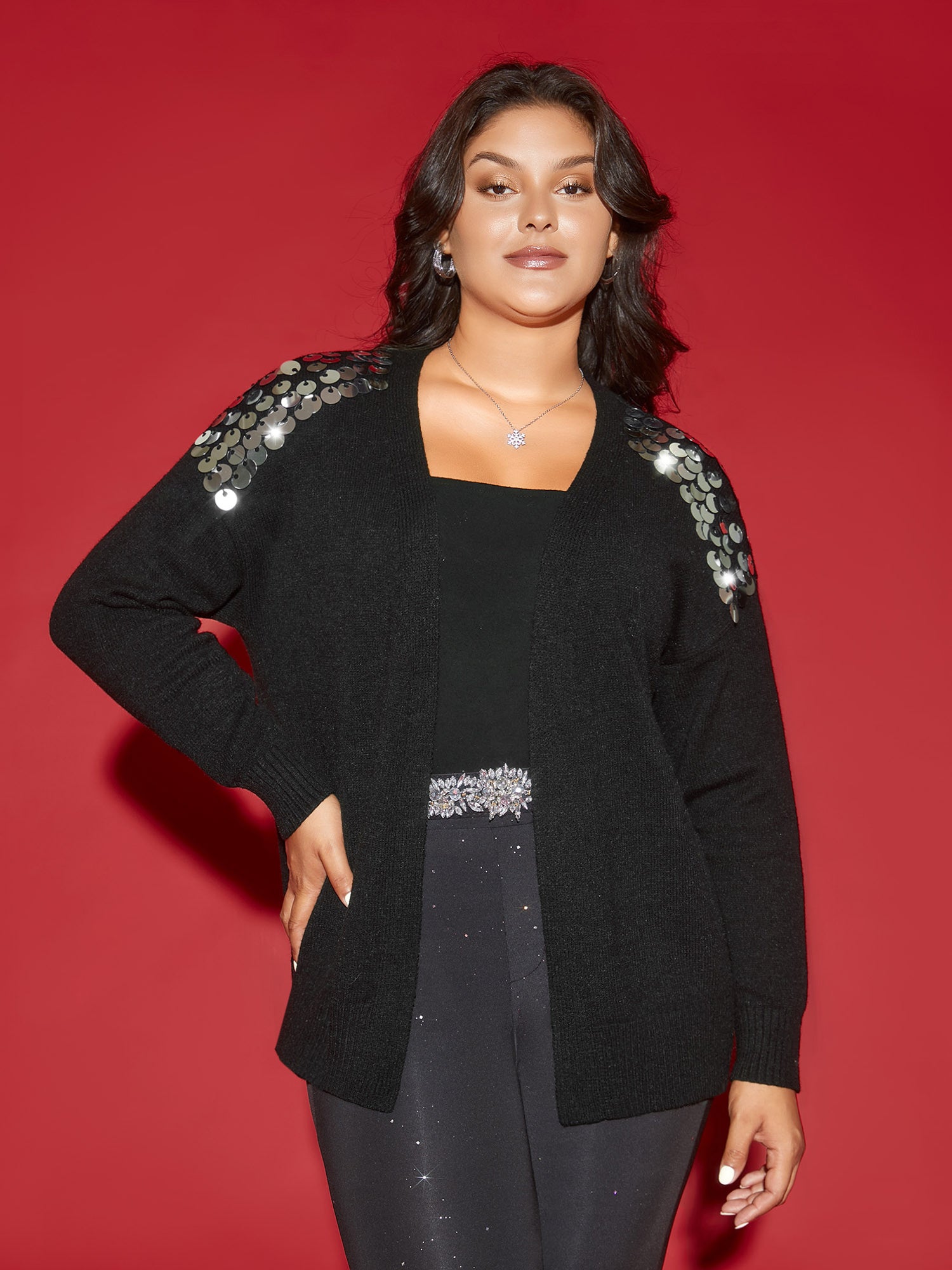 Supersoft Essentials Silver Sequins Shoulder Open Cardigan