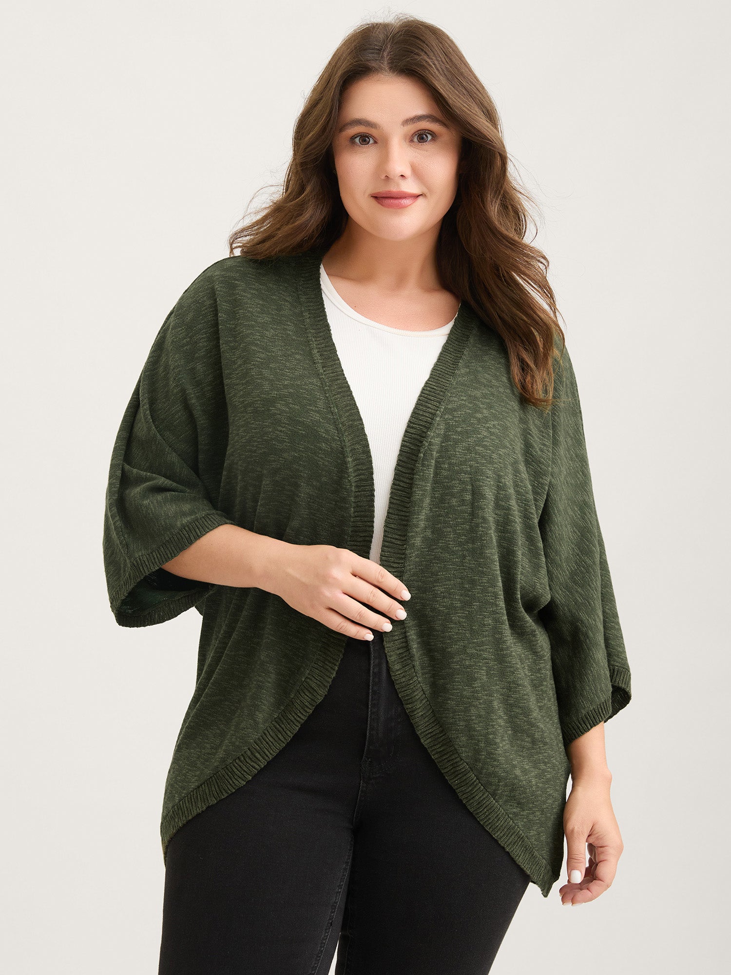 Curvy Hem Solid Open-Front Lightweight Cardigan