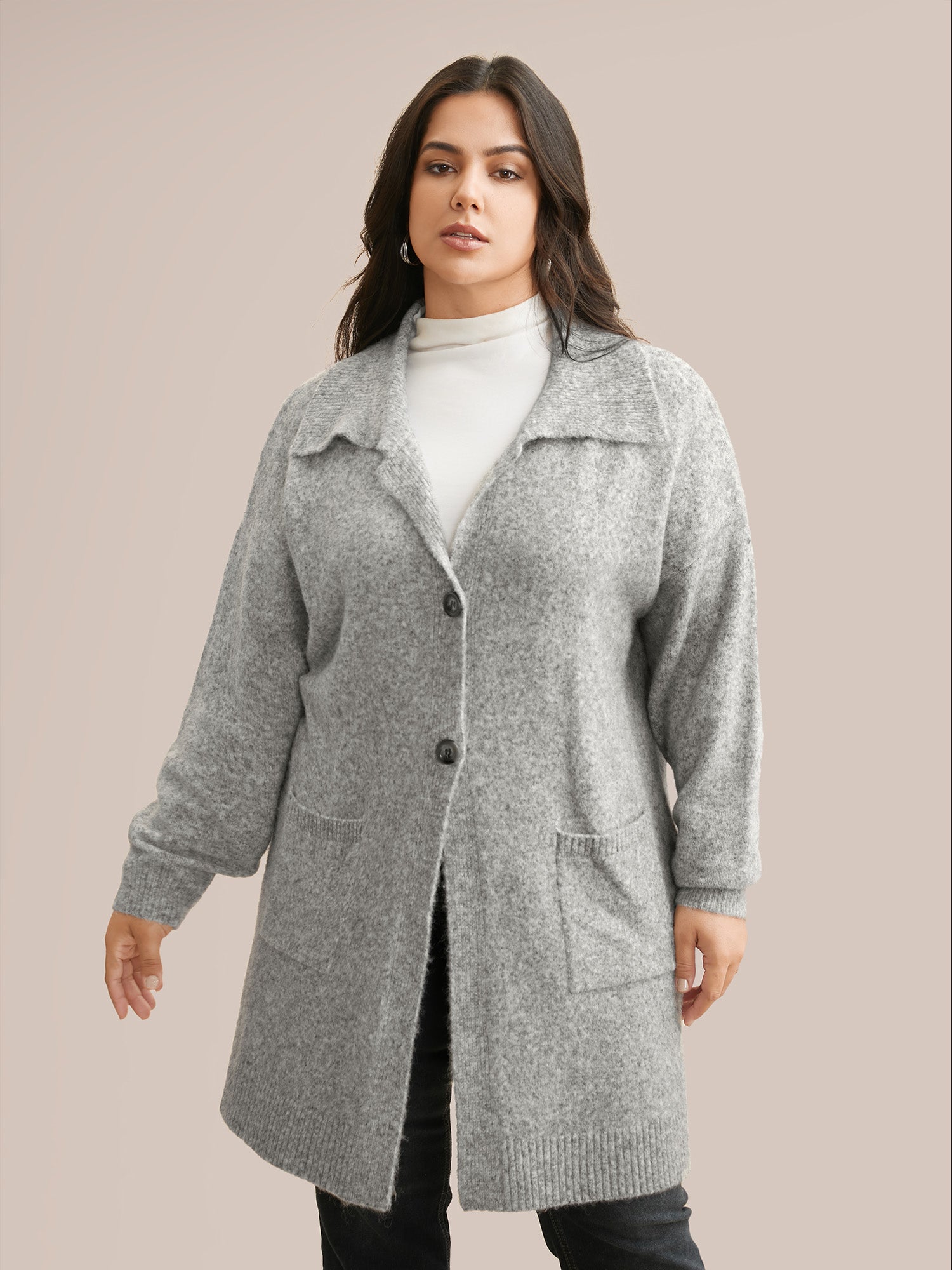 Heather Patch Pocket Drop Shoulder Cardigan