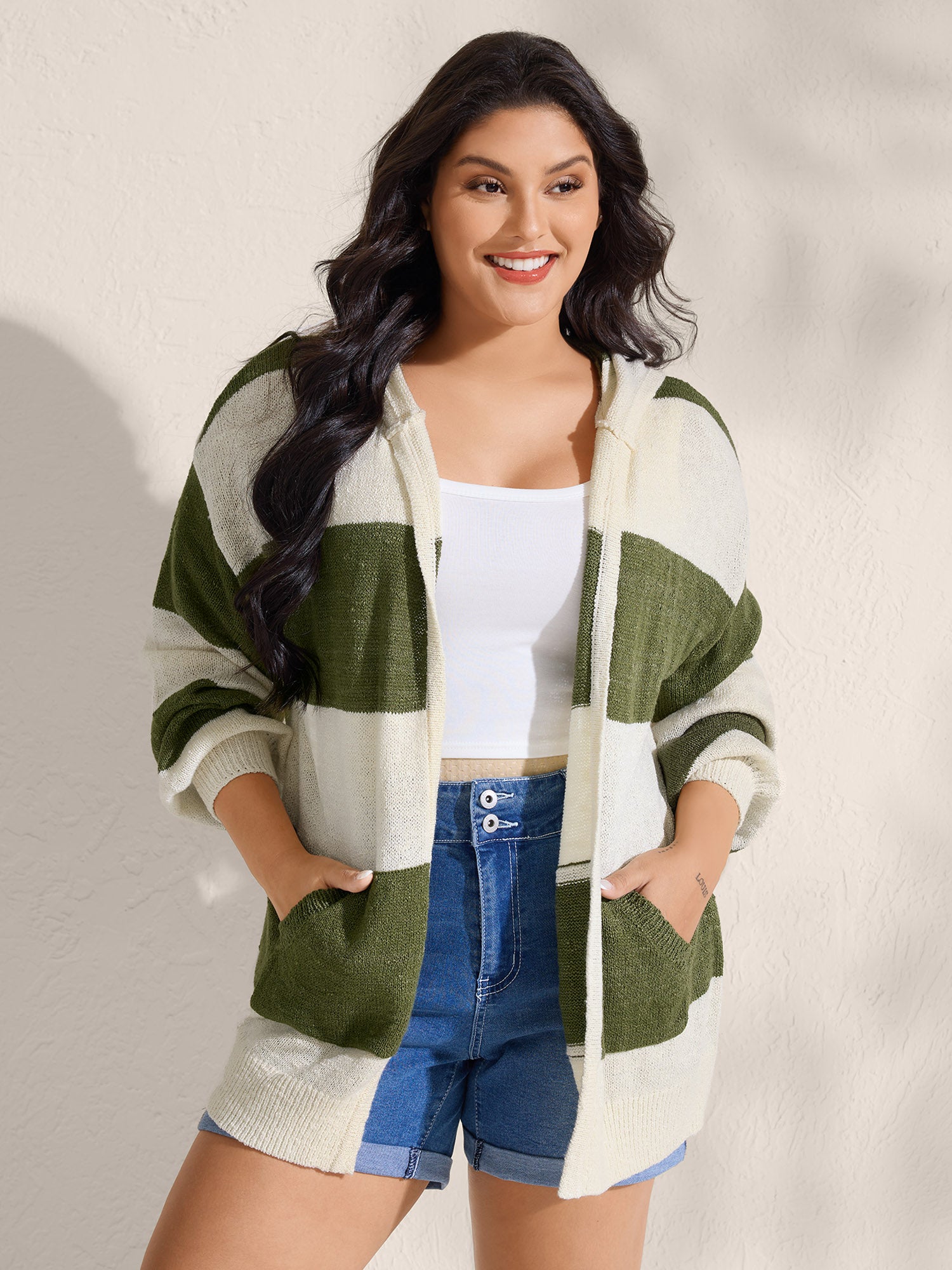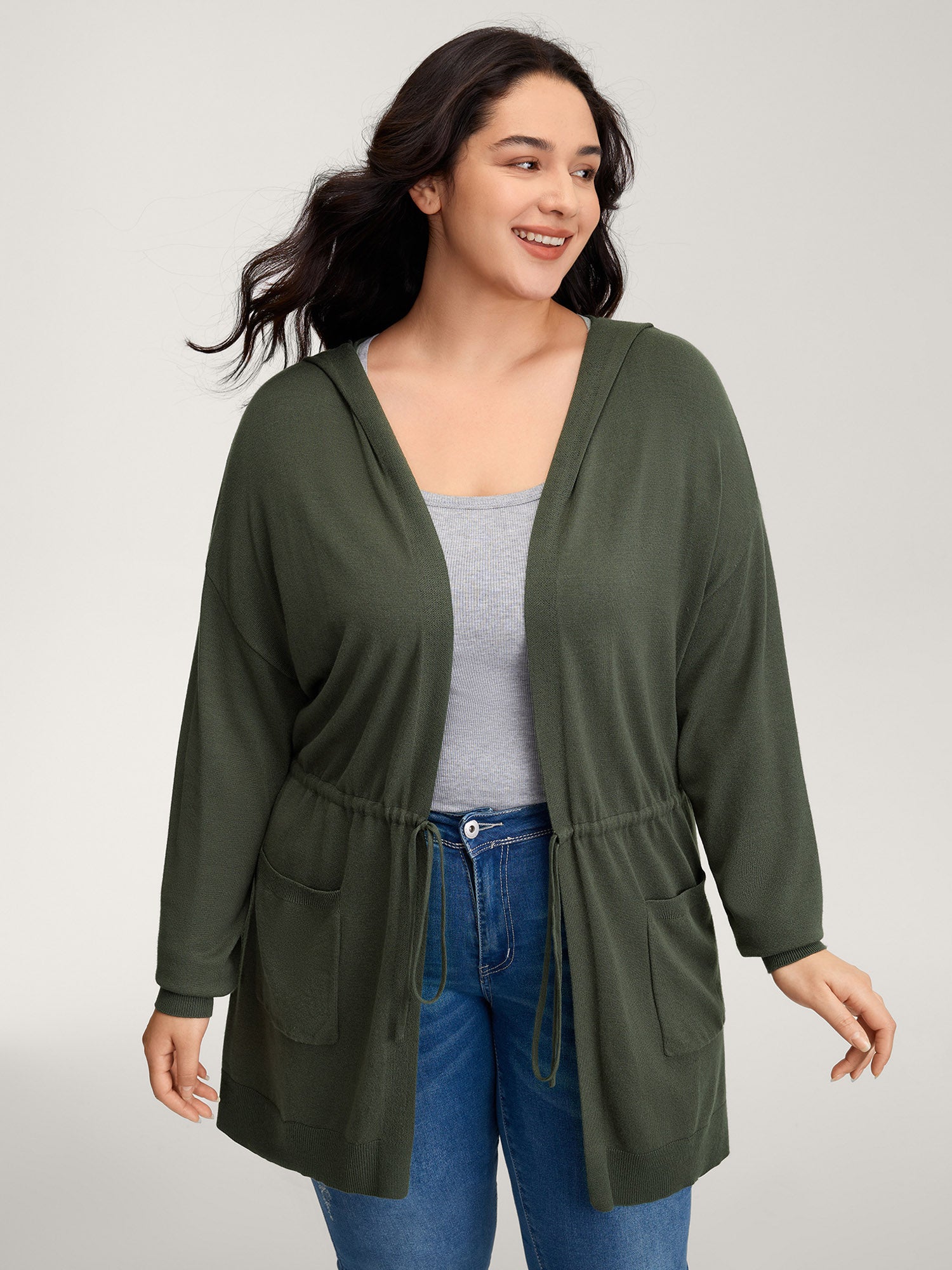 Hooded Drawstring Waist Pockets Knit Cardigan