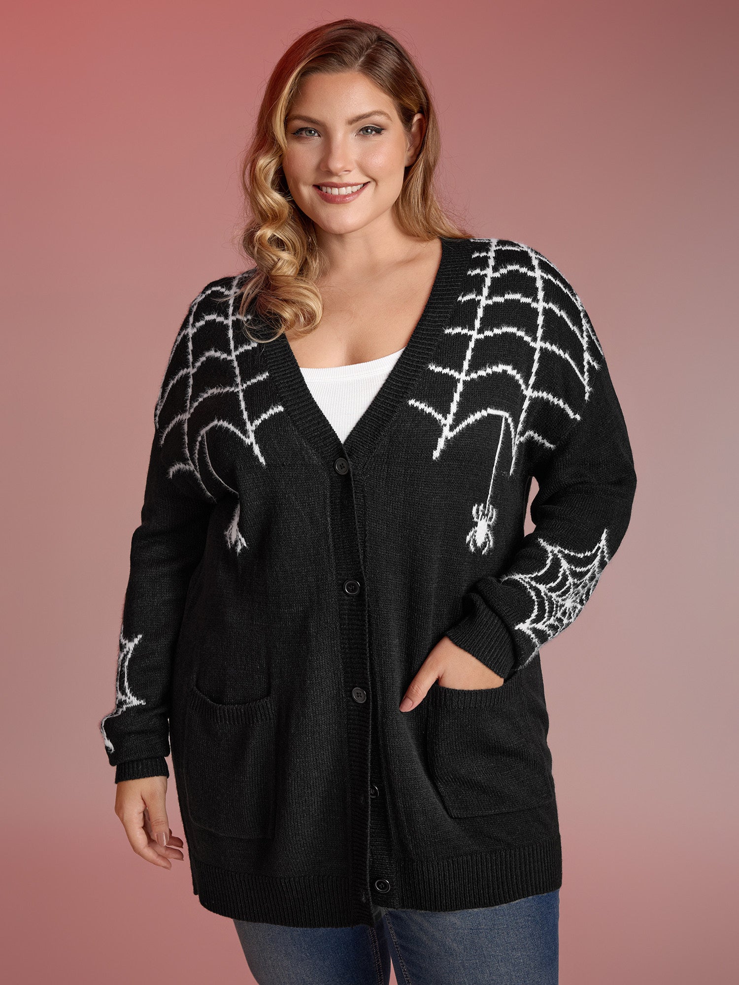 Spiderweb Jacquard Pockets Button Knit Cardigan