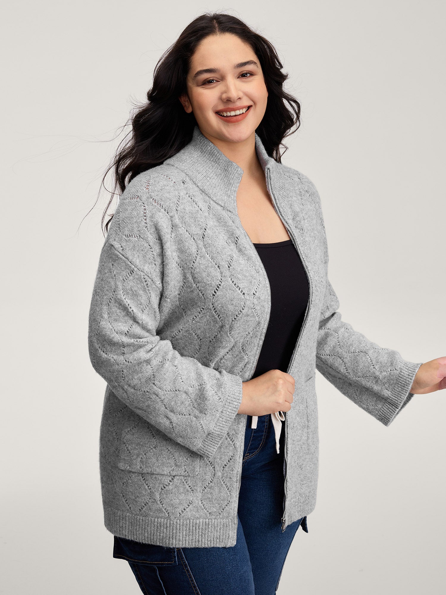 Mixed Texture Cable Stitch Pockets Knit Cardigan