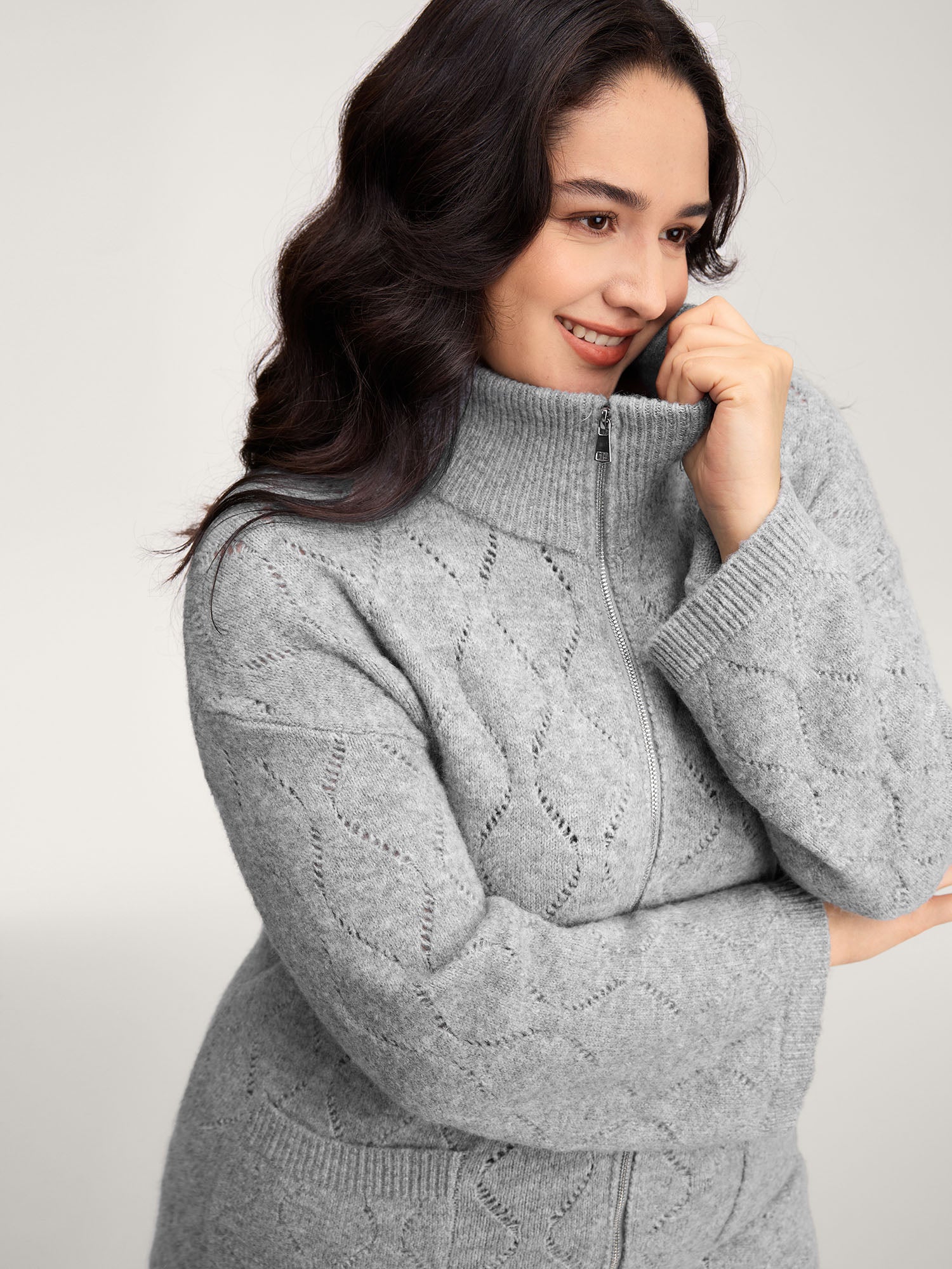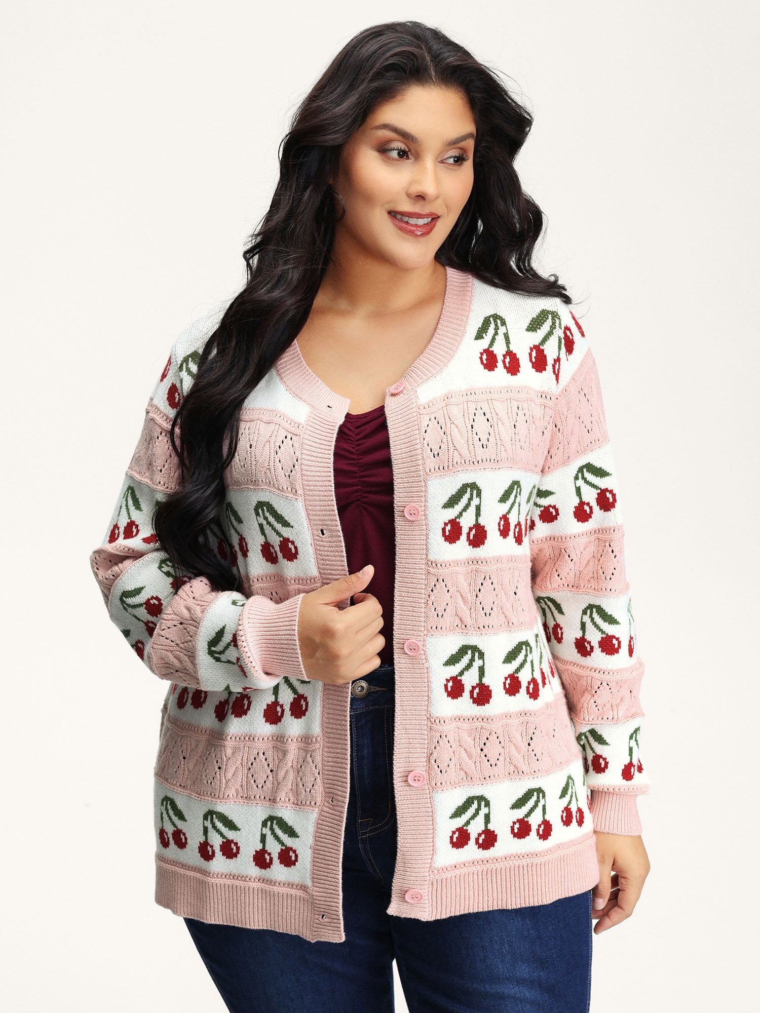 Eyelet Jacquard Ruffled Hem Knit Cardigan