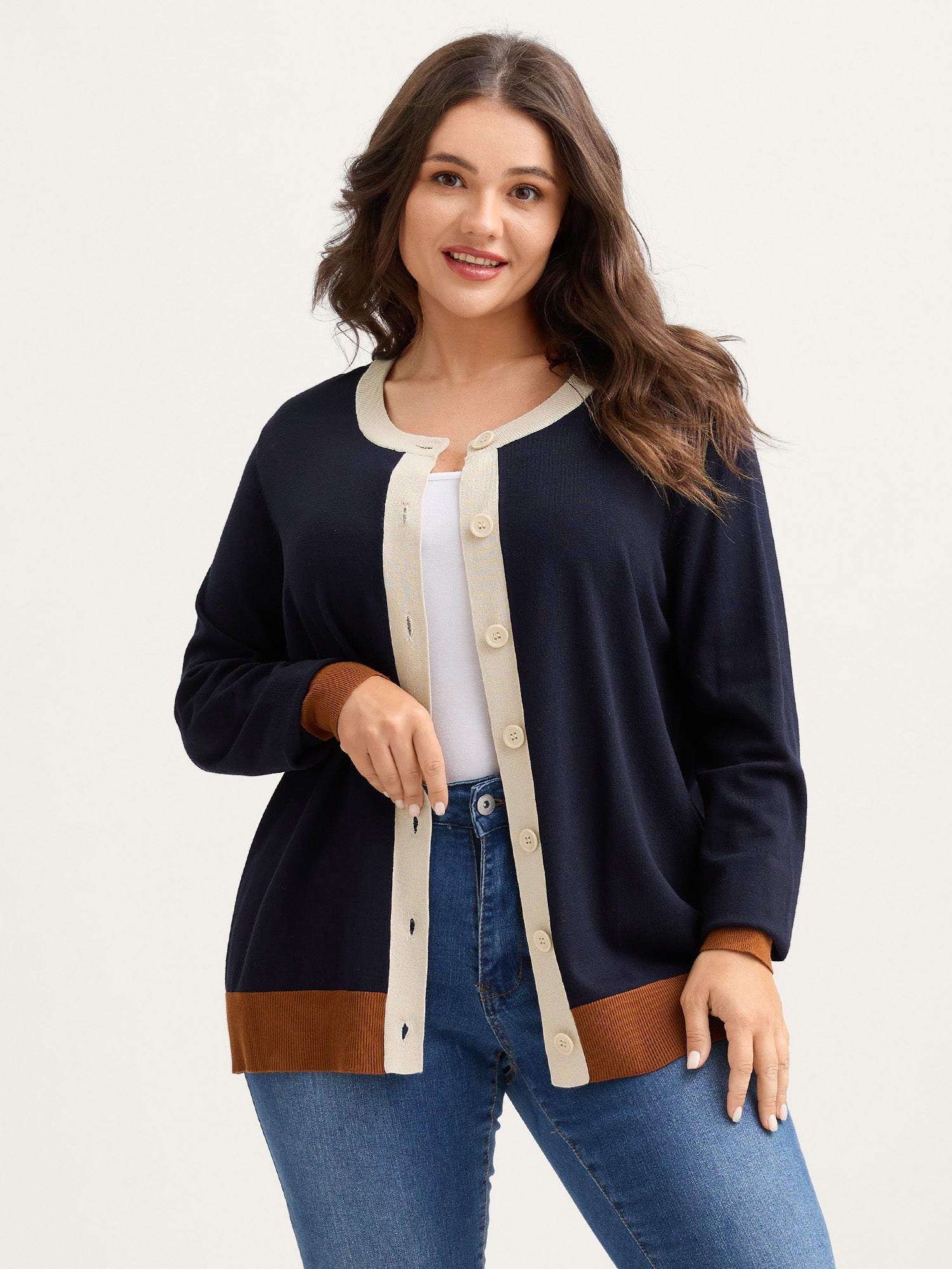 Supersoft Color Contrast Button-Down Knit Cardigan