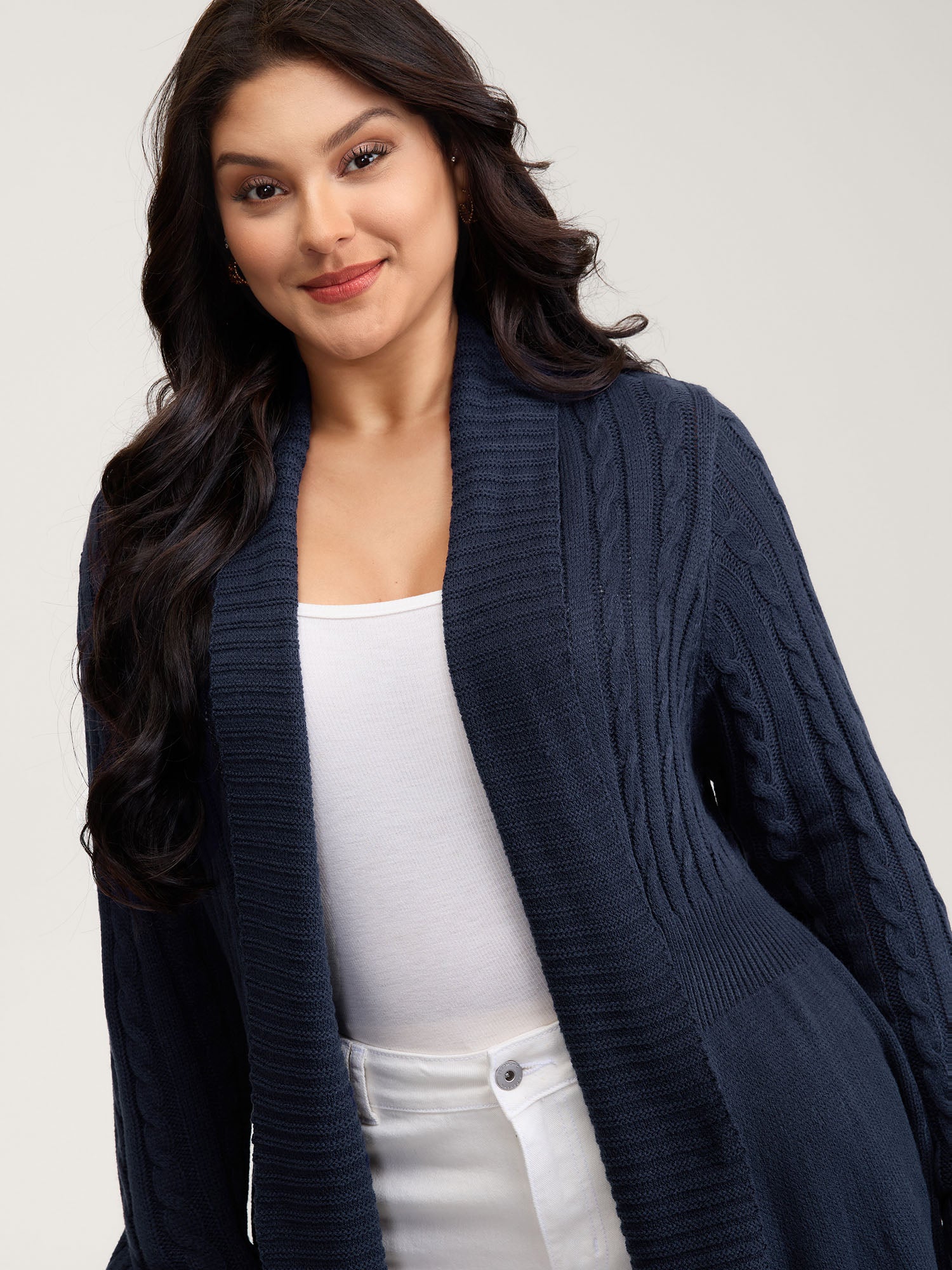 Cable Knit Cinched-Flared Waist Knit Cardigan