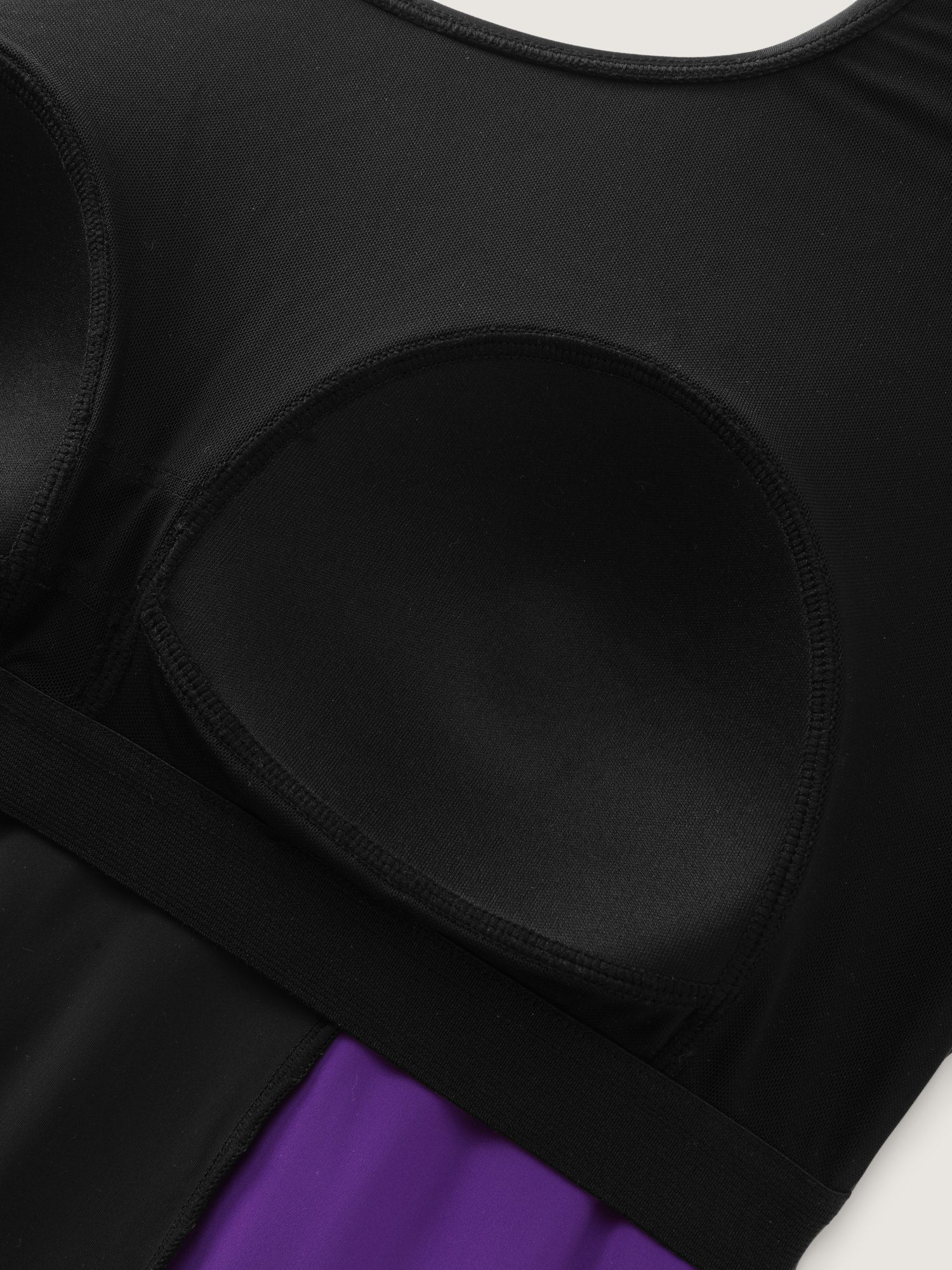 Shop Color Block Adjustable Swim Top now and redefine your style with confidence at BloomChic. Tailored for mid and plus-size women. This trendy Swimwear Women, sizes 10-30. Color:DeepPurple;Style:Resort;Cup Type:Fixed cups;Coverage:Full;Prints:Geometric & color block;Details:Contrast;Pocket:No-pocket;Belt:No-belt;Chest pad:Non-removable padding;Structural function:Bust-Lift,Adaptive-Fit;Swimsuit types:Tankini