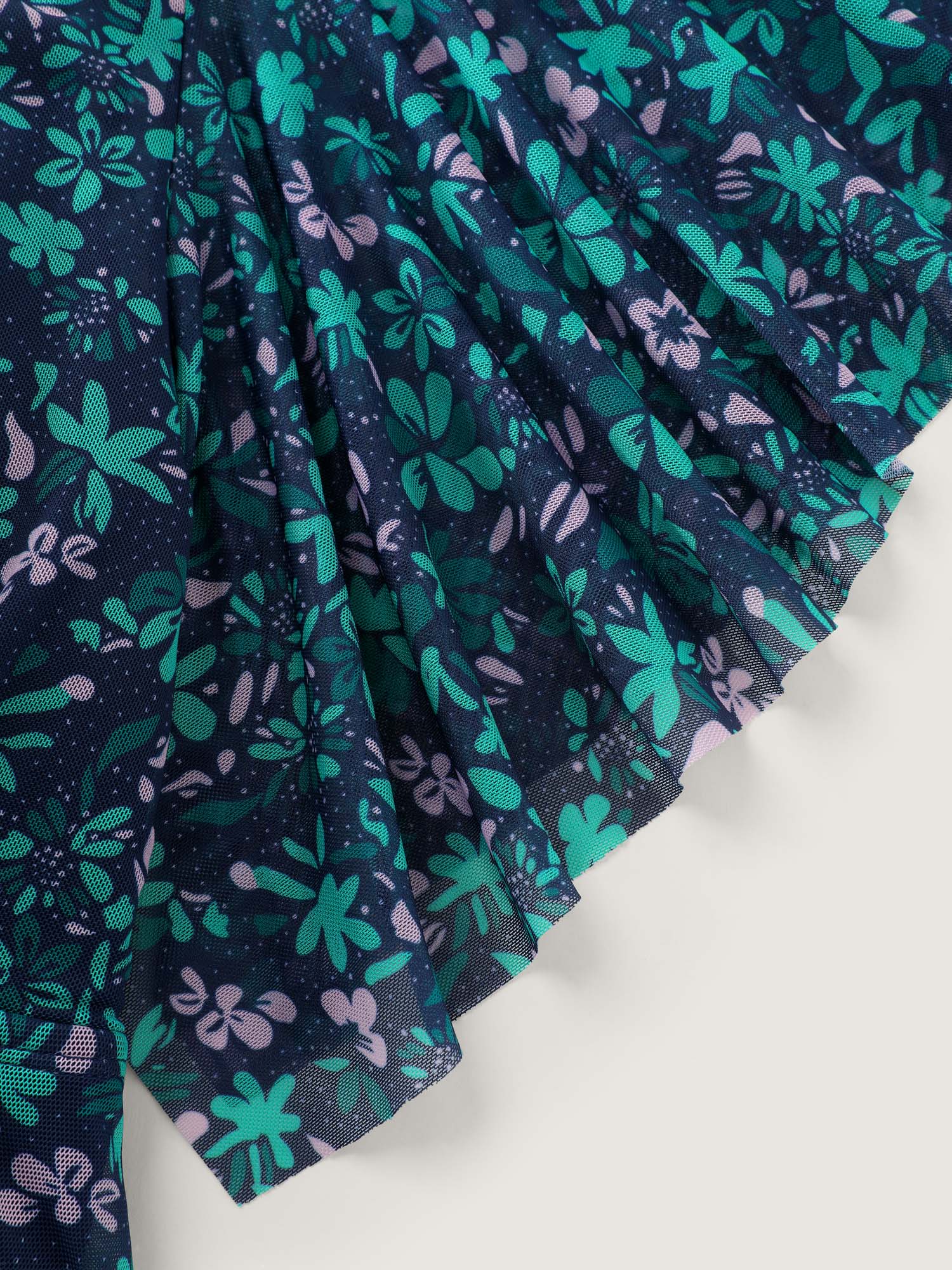 Colorful Sheer Floral Print Swim Dress
