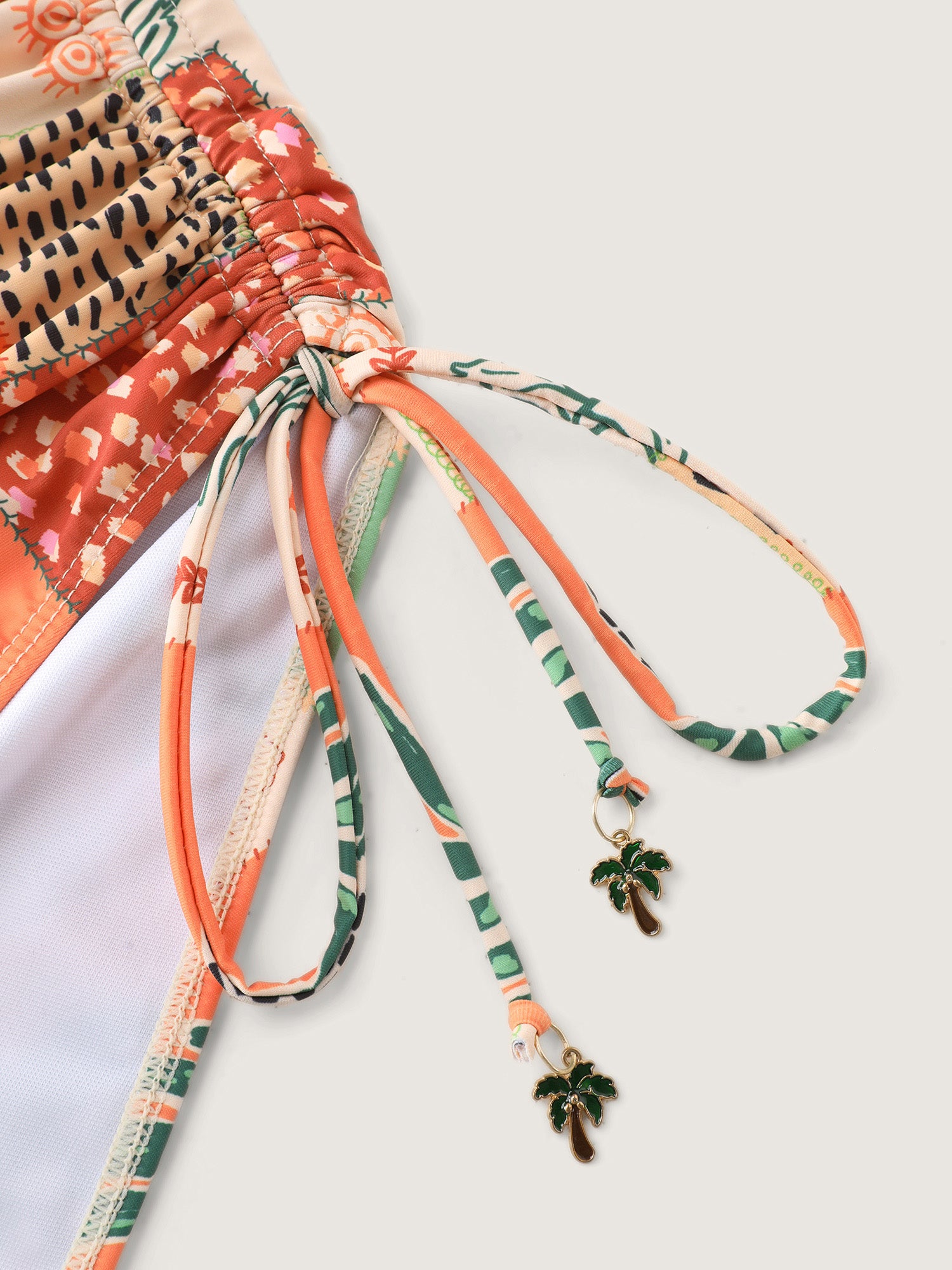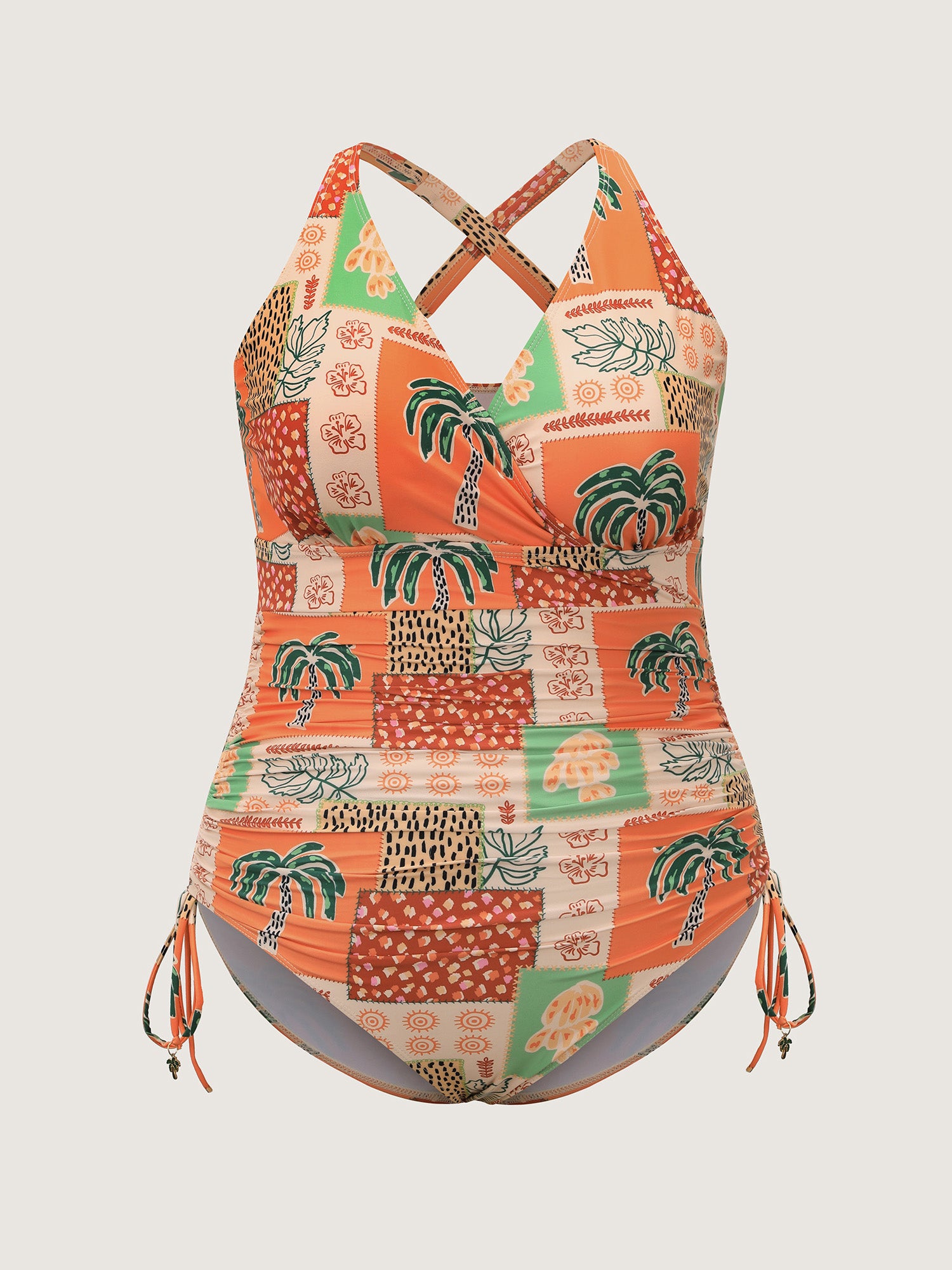 Shop Island Print Channel Drawstring One-Piece Swimsuit now and redefine your style with confidence at BloomChic. Tailored for mid and plus-size women. This trendy Swimwear Women, sizes 10-30. Color:Coral;Style_2:Resort;Cup Type:Removable cups;Coverage:Full;Neckline:Overlap Collar;Sleeve Type:Sleeveless;Prints:Tropical;Details:Drawstring;Pocket:No-pocket;Belt:No-belt;Chest pad:Removable Padding;Lining:Lining;Closure Type:Non;Structural function:Adaptive-Fit,Tummy-Sculpt;Swimsuit types:One-Piece Swimsuit