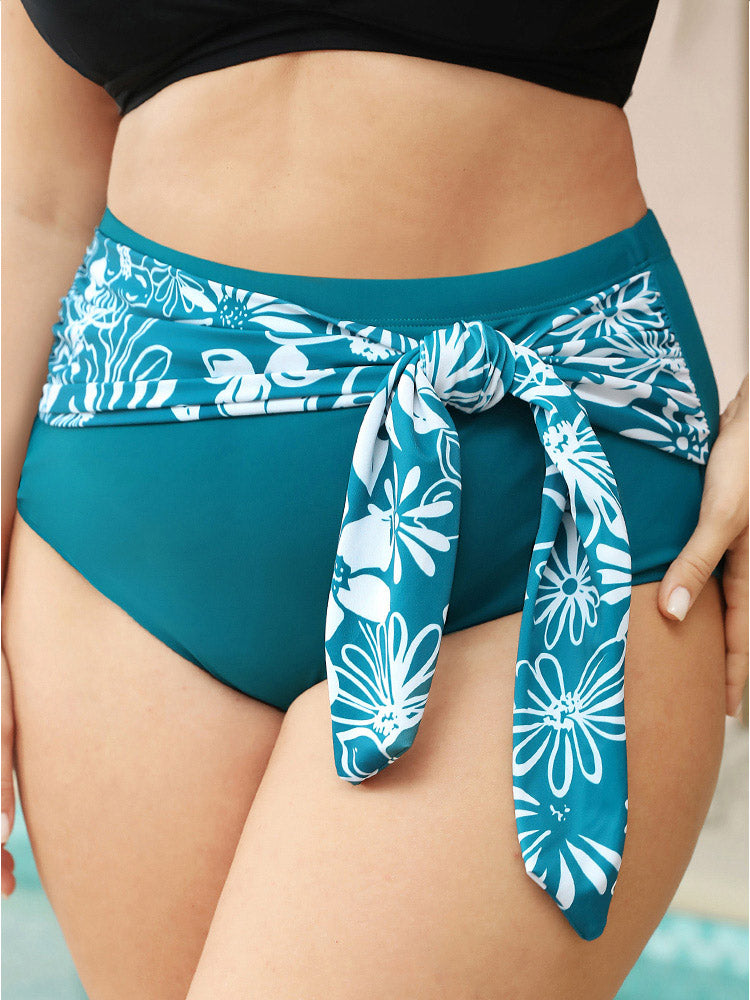 Shop Tropical Patchwork Knotted Front Bikini Bottom now and redefine your style with confidence at BloomChic. Tailored for mid and plus-size women. This trendy Swimwear Women, sizes 10-30. Season:Summer;Color:Teal;Style:Vacation;Waist Design:High Rise;Pattern Type:Tropical;Details:Knotted, Patchwork, Printed, Cross straps;Pocket:No-pocket;Belt:No-belt;Lining:Lining