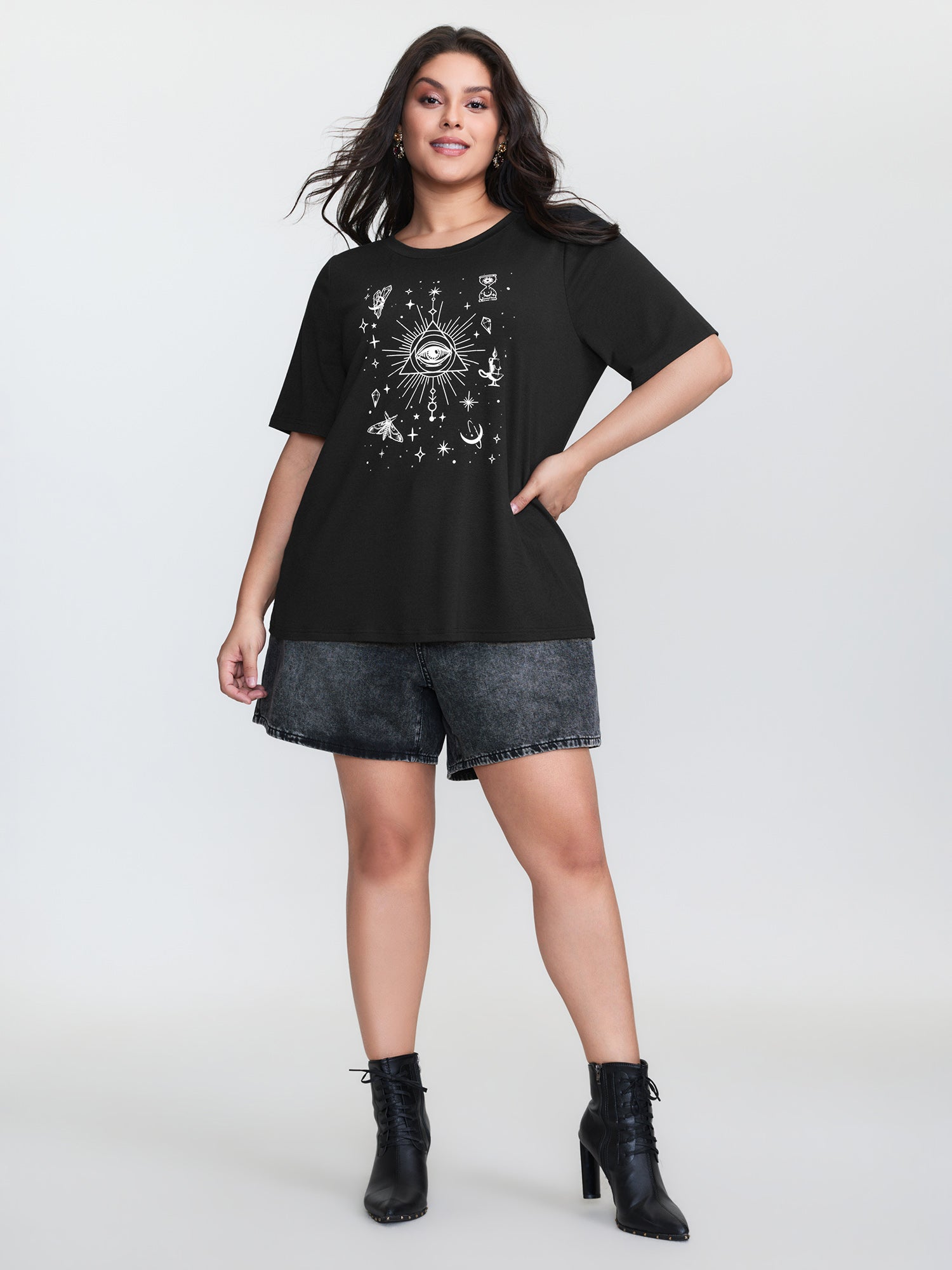 Shop Celestial Print Round Neck T-Shirt at BloomChic. Plus Size Clothing & Plus Size T-shirts. BloomChic is a digital-first fashion and lifestyle destination for modern women sizes 10-30.