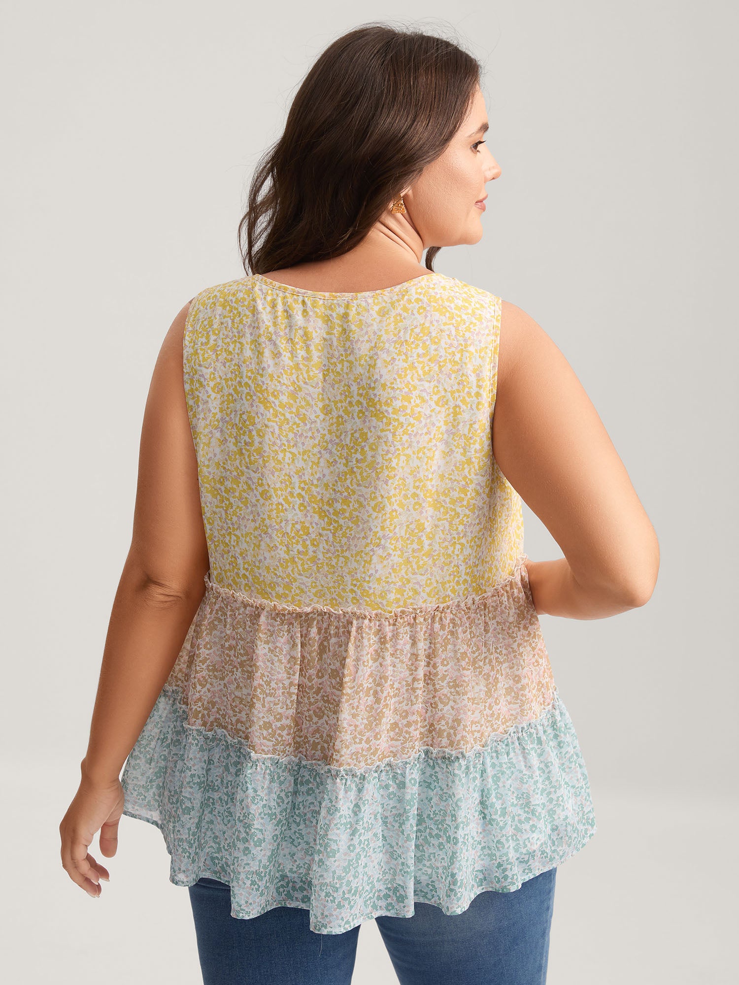 Chiffon Color Block Tiered Tank Top