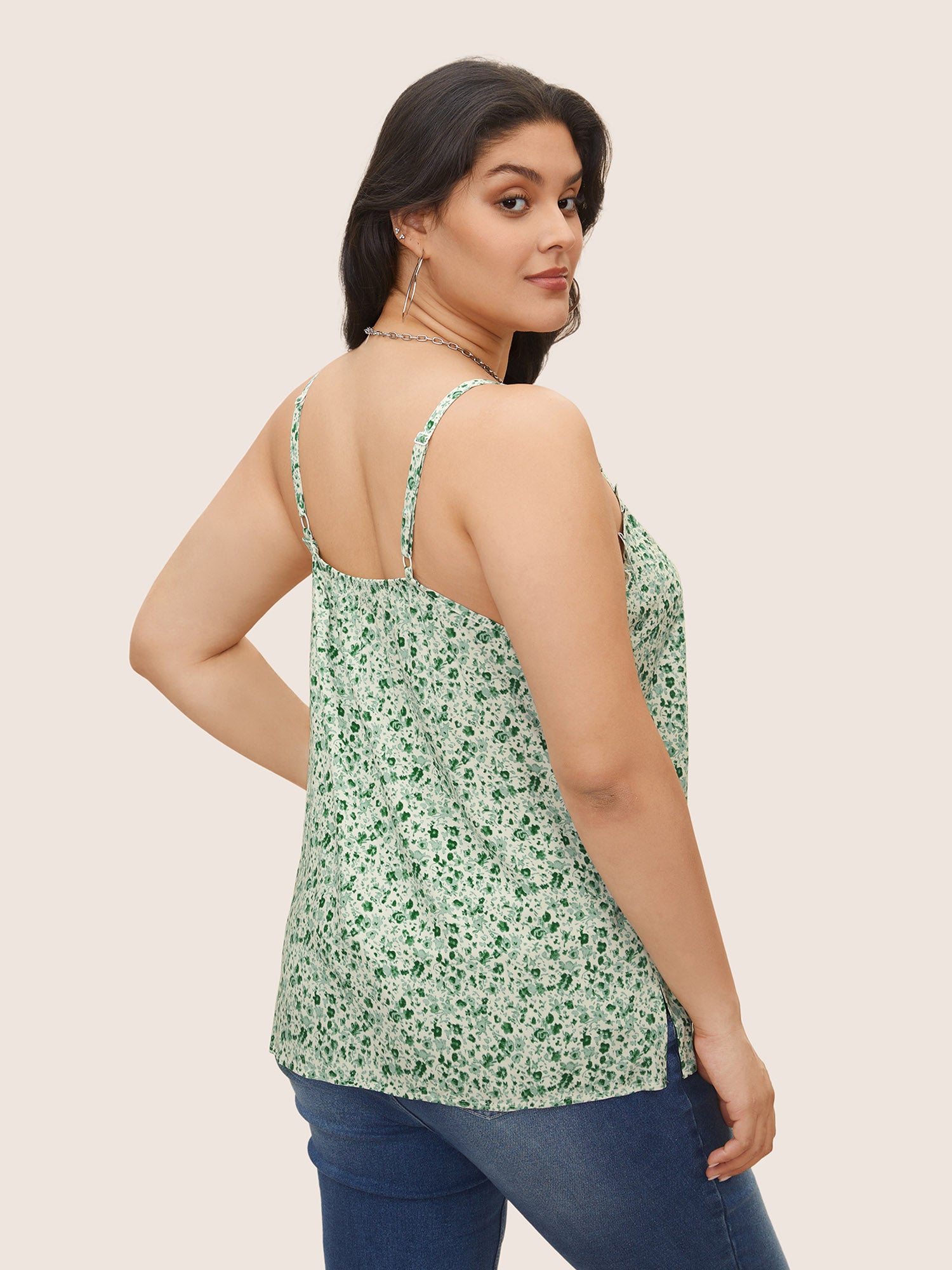 Shop Ditsy Floral Frill Trim Adjustable Straps Cami Top now and redefine your style with confidence at BloomChic. Tailored for mid and plus-size women. This trendy Tops Women, sizes 10-30. Season:Summer;Color:Moss;Prints:Ditsy floral;Neckline:V-neck;Details:Frill Trim;Pocket:No-pocket