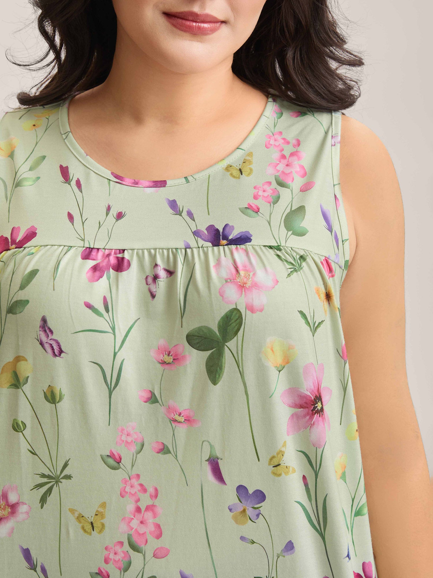 Floral Print Flowy Pleated Tank Top