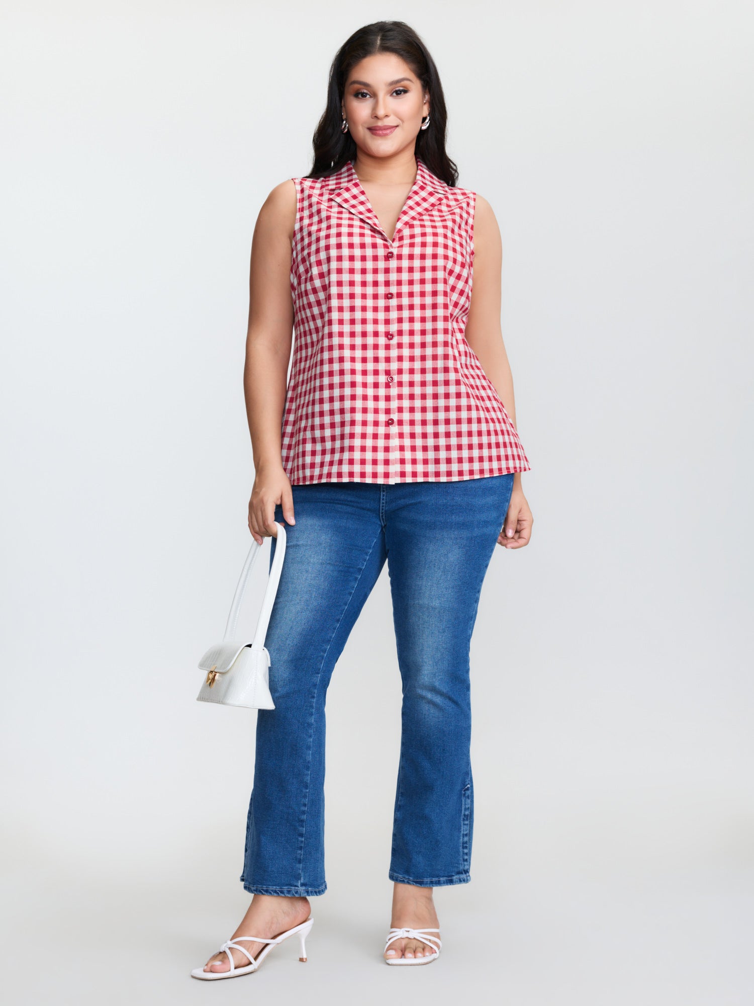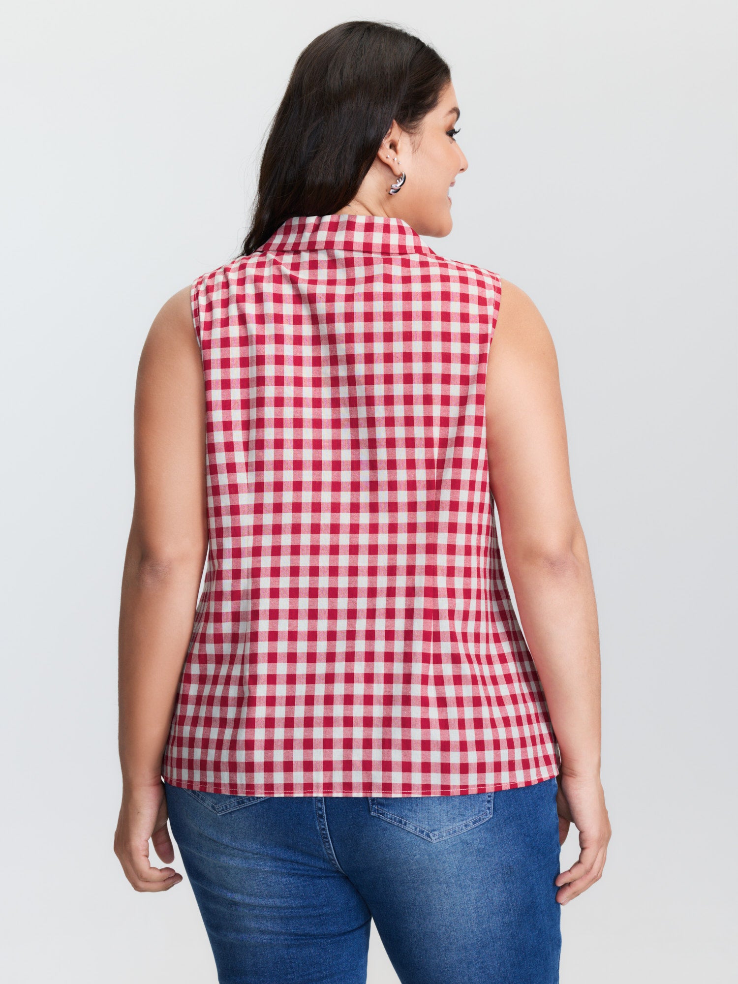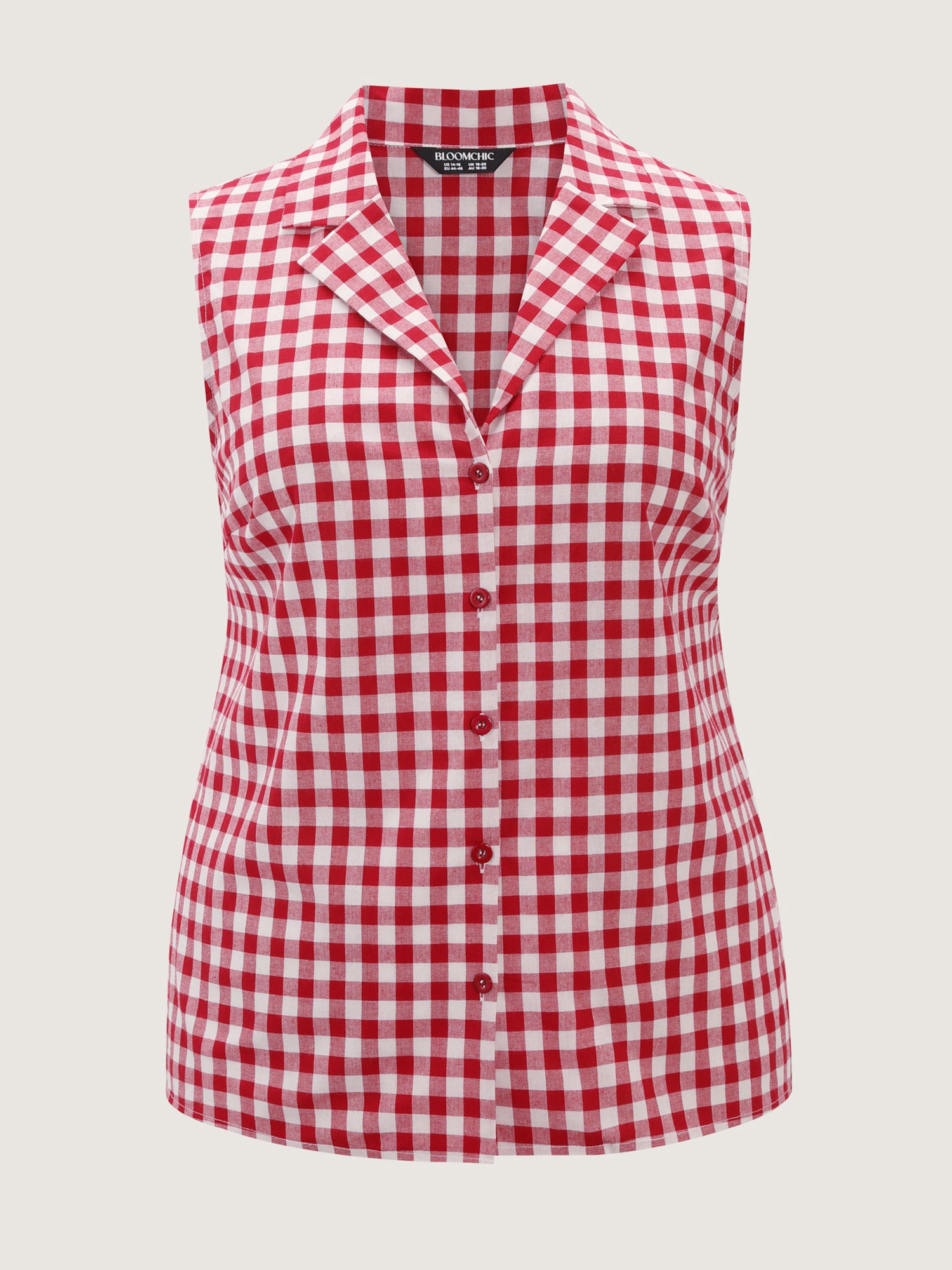 Shop Gingham Print Lapel Collar Tank Top now and redefine your style with confidence at BloomChic. Tailored for mid and plus-size women. This trendy Tops Women, sizes 10-30. Color:Raspberry;Style:Timeless;Prints:Plaid;Neckline:Suit Collar;Sleeve Type:Sleeveless;Details:Contrast, Button;Pocket:No-pocket