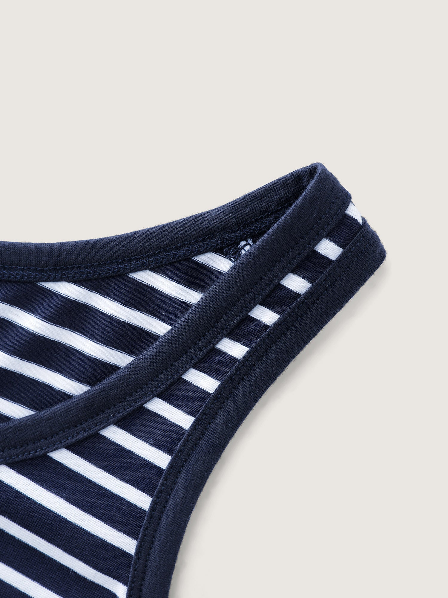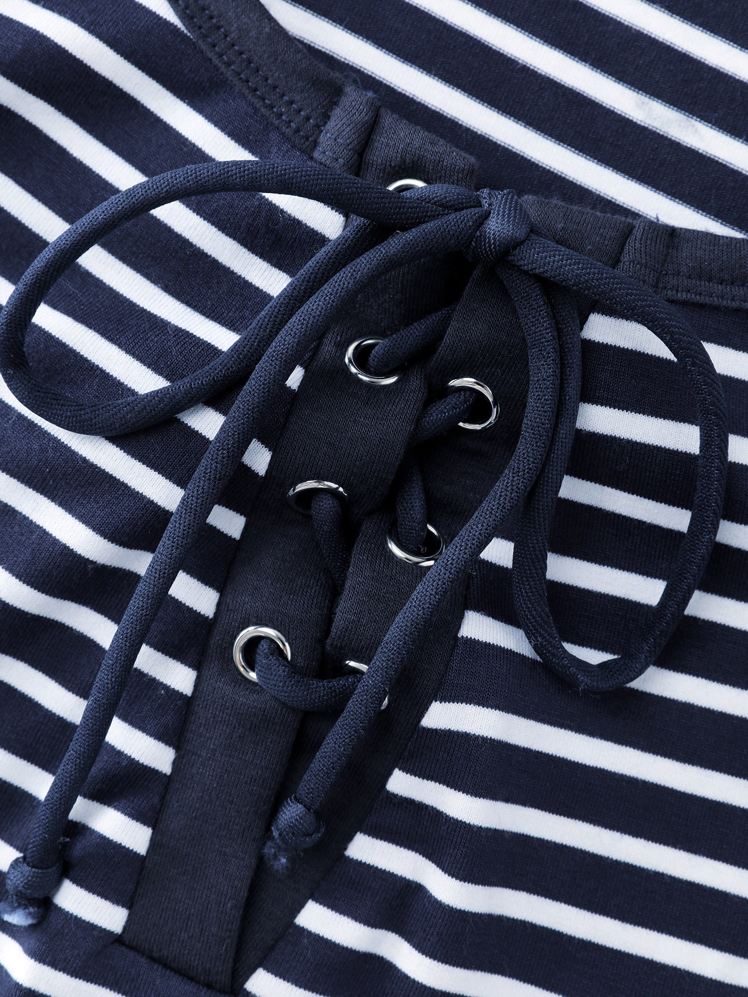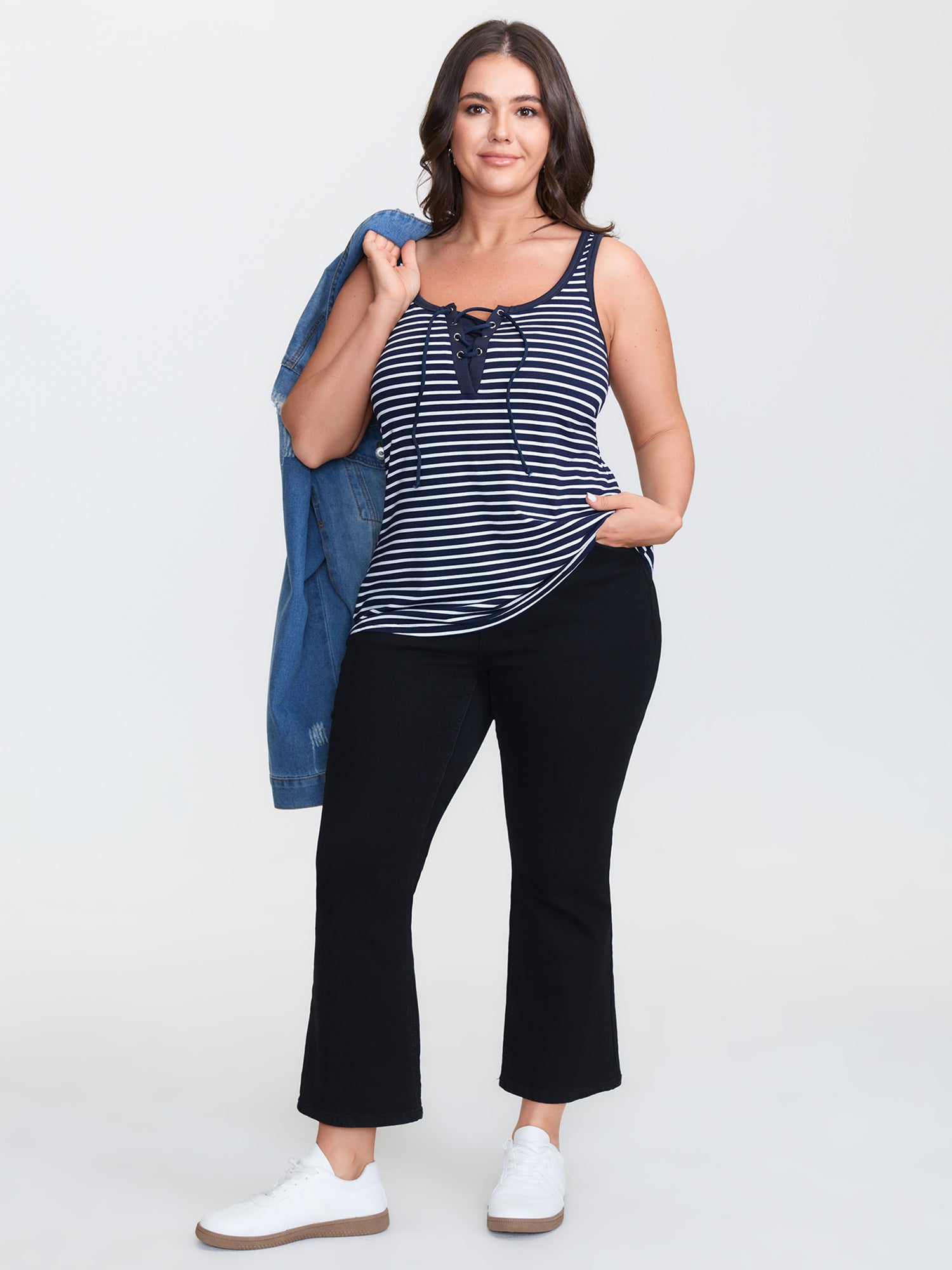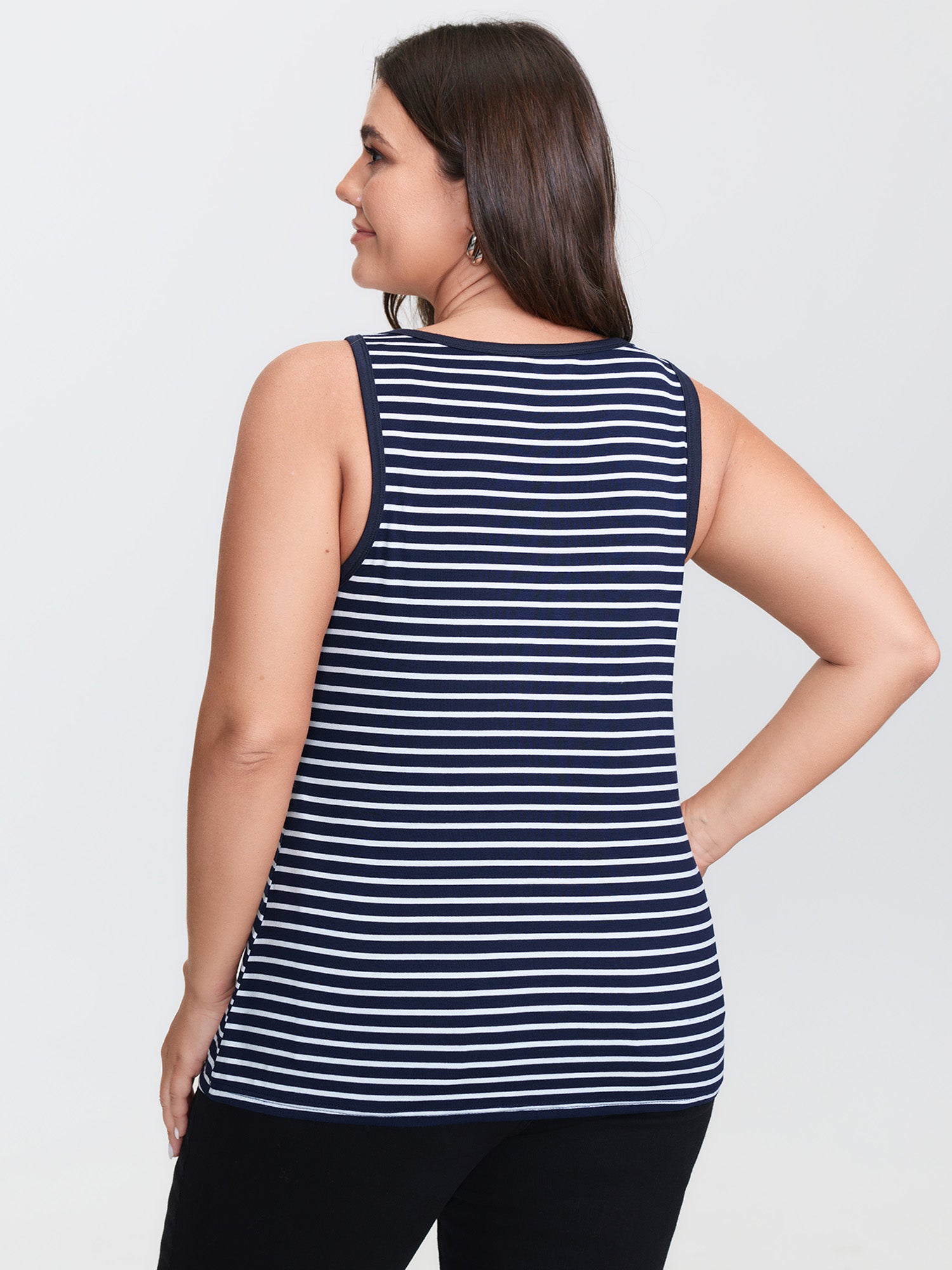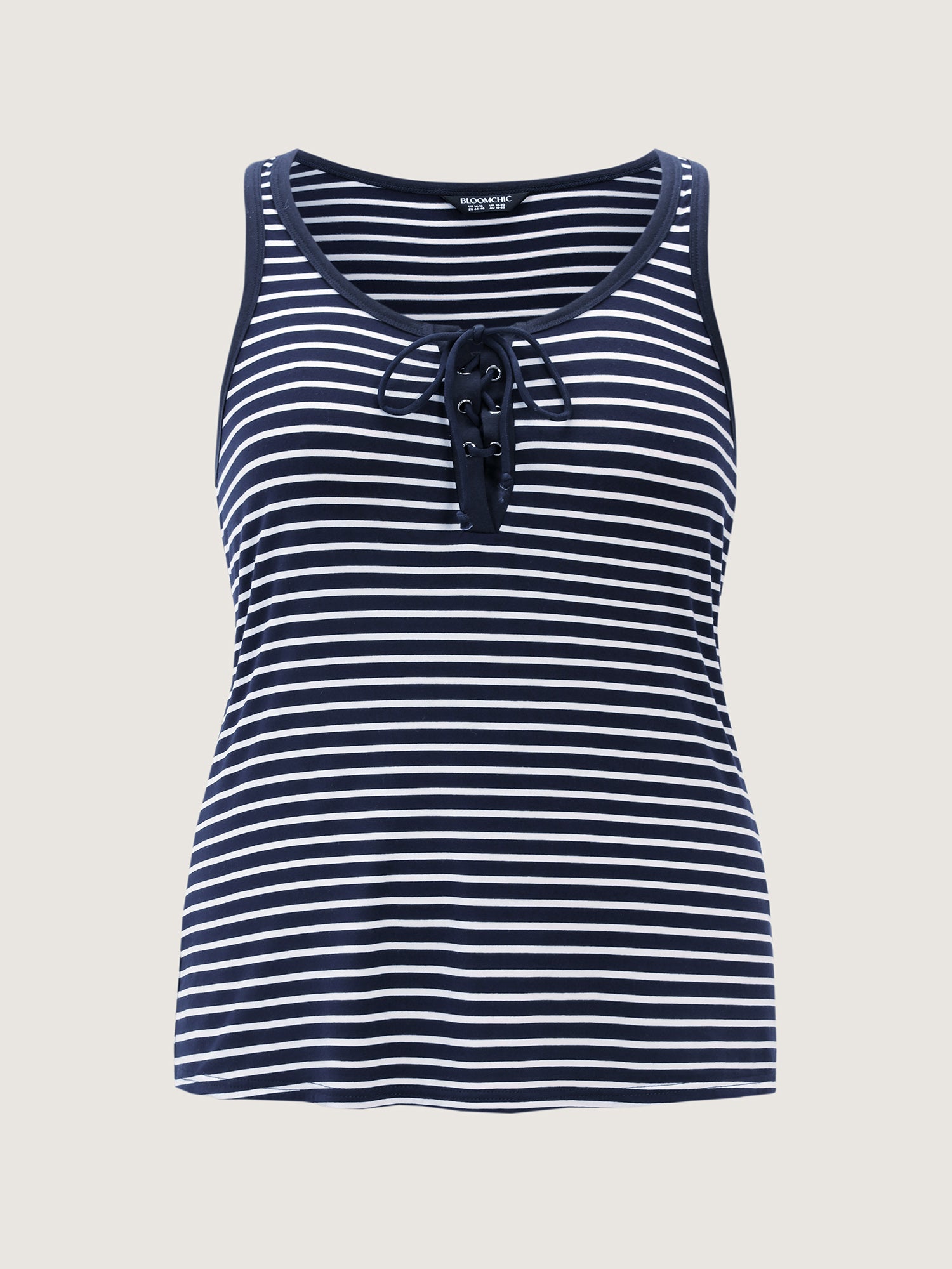 Shop Stretchy Striped Drawstring Neckline Tank Top now and redefine your style with confidence at BloomChic. Tailored for mid and plus-size women. This trendy Tops Women, sizes 10-30. Color:Indigo;Style:Leisure;Prints:Stripes;Neckline:U-neck;Sleeve Type:Sleeveless;Details:Eyelet, Cross straps;Pocket:No-pocket