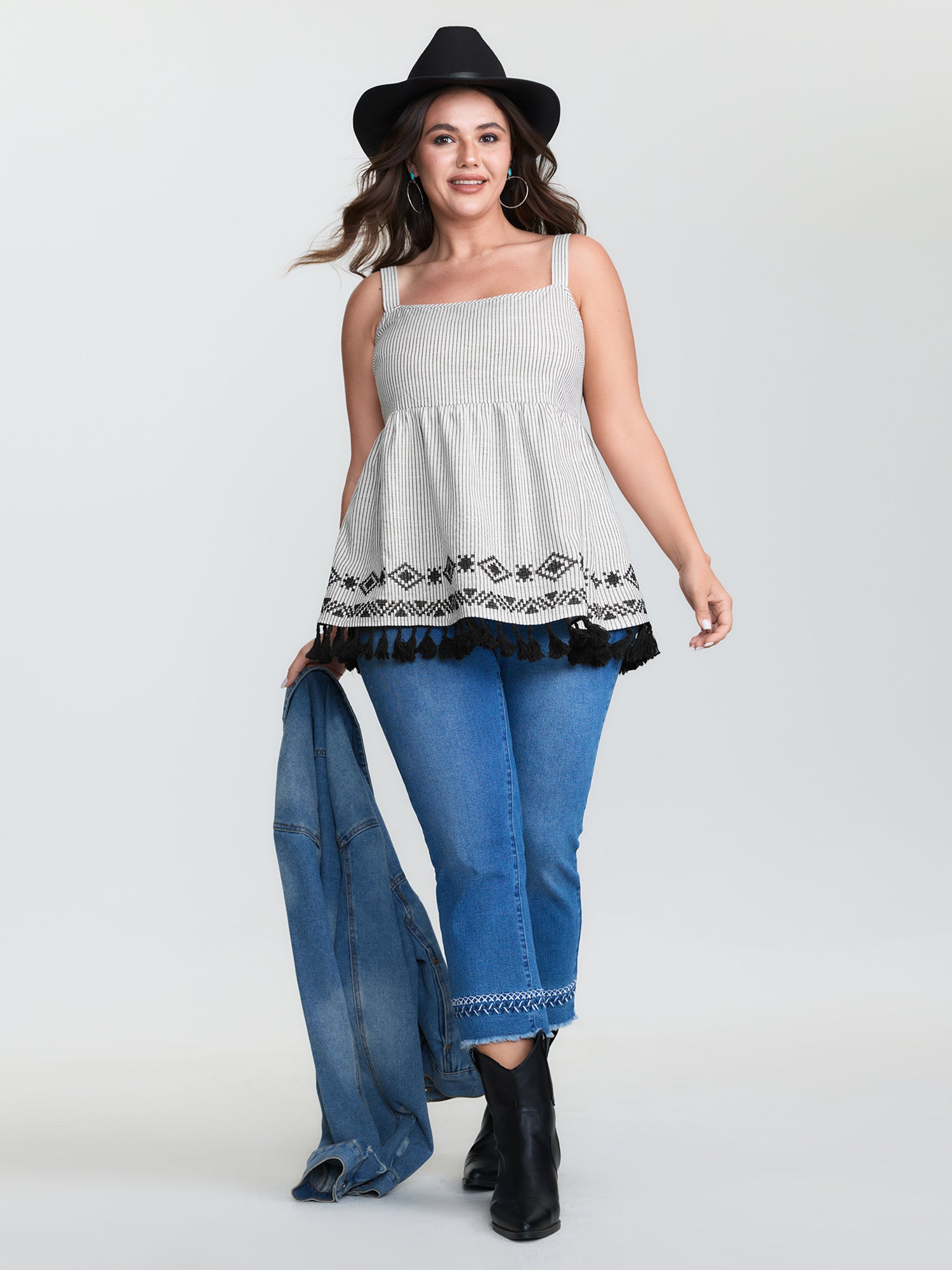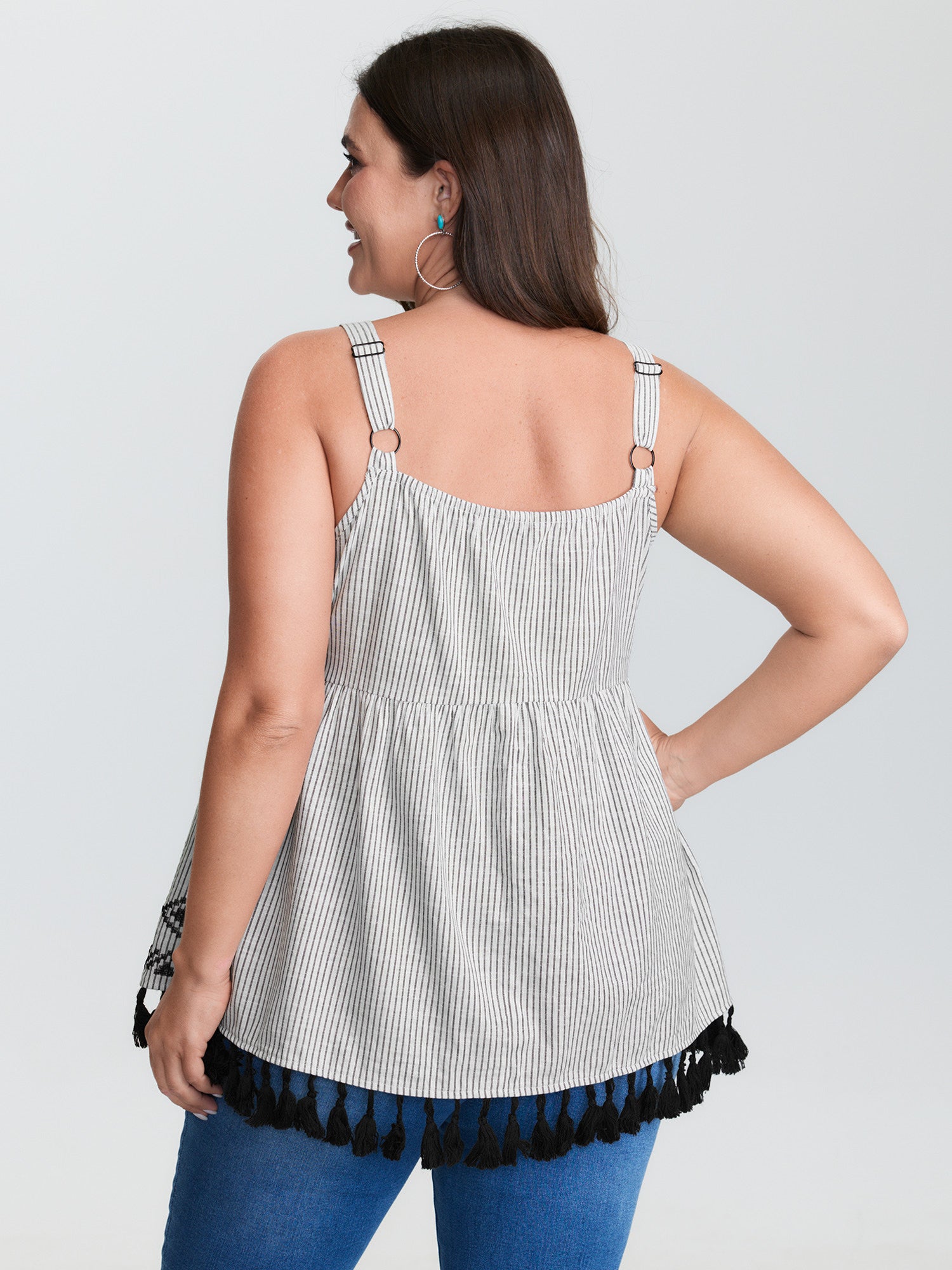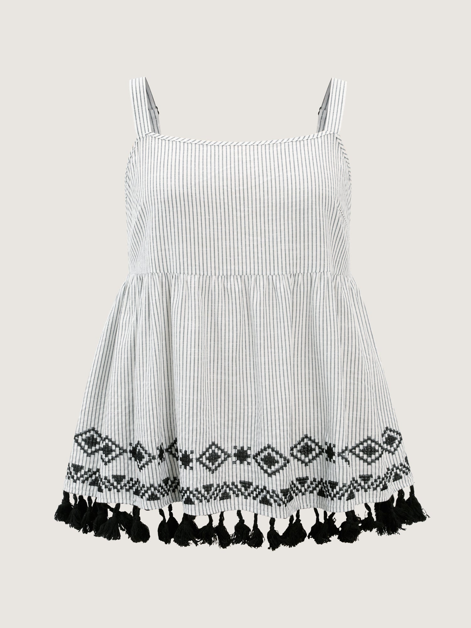 Shop Cotton Linen Striped Embroidered Fringe Hem Tank Top now and redefine your style with confidence at BloomChic. Tailored for mid and plus-size women. This trendy Tops Women, sizes 10-30. Color:Black;Style:Boho;Prints:Stripes;Neckline:U-neck;Sleeve Type:Sleeveless;Pocket:No-pocket