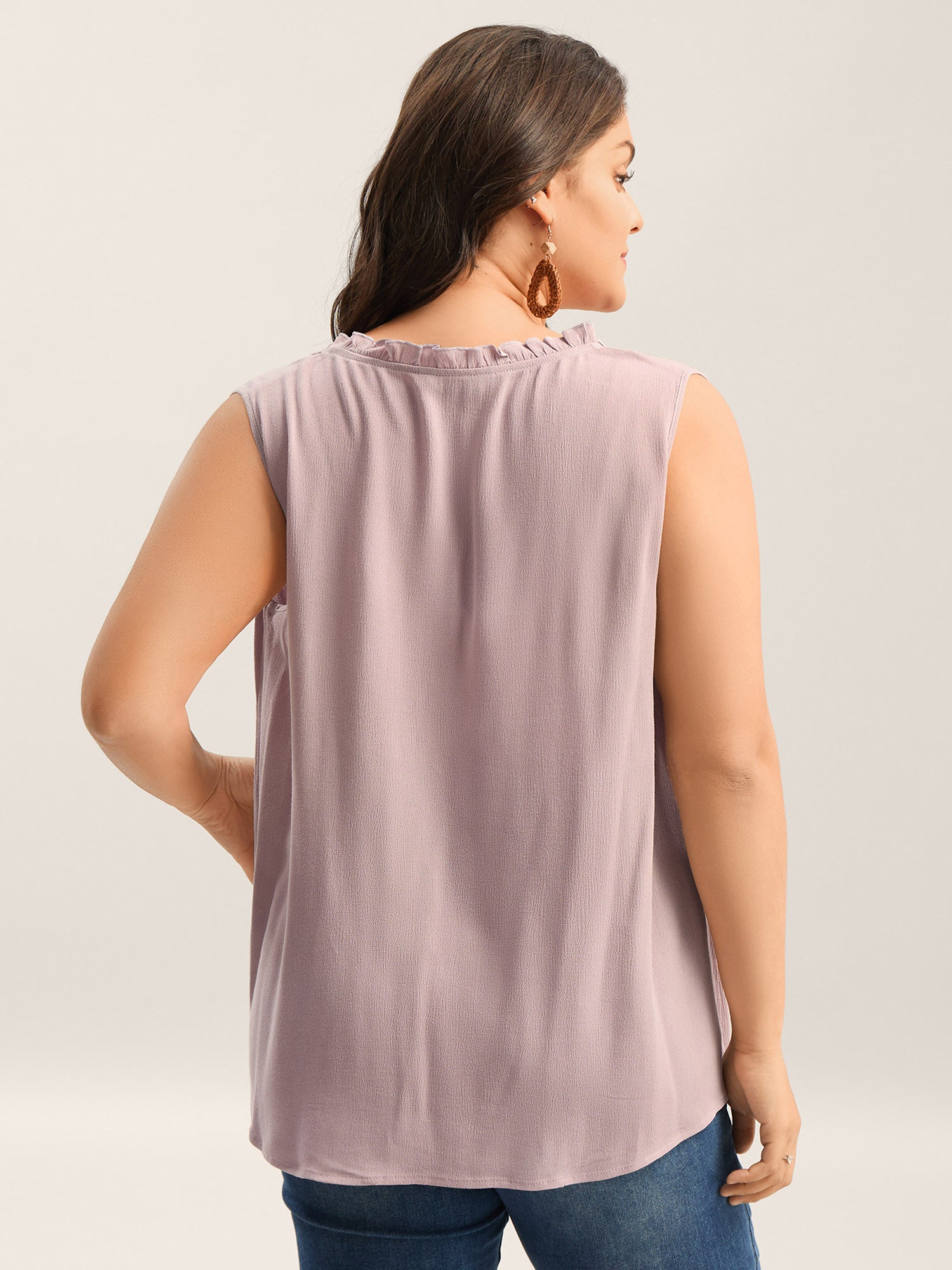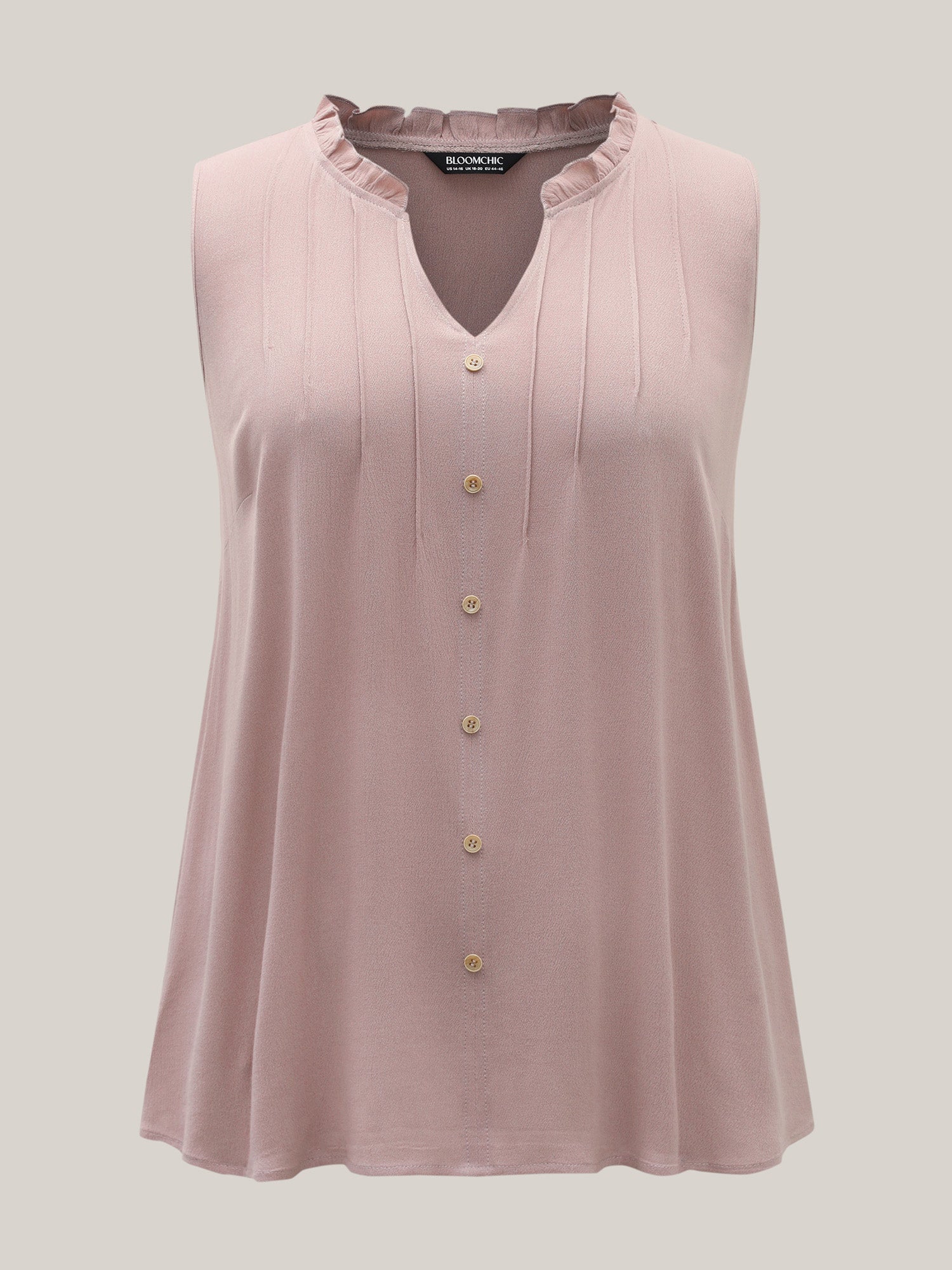 Shop Toothpick Pleat Button Detail Sleeveless Top now and redefine your style with confidence at BloomChic. Tailored for mid and plus-size women. This trendy Tops Women, sizes 10-30. Color:Lilac;Prints:Non;Neckline:Notched collar;Sleeve Type:Sleeveless;Details:Ruffles, Button, Tucked seam;Pocket:No-pocket
