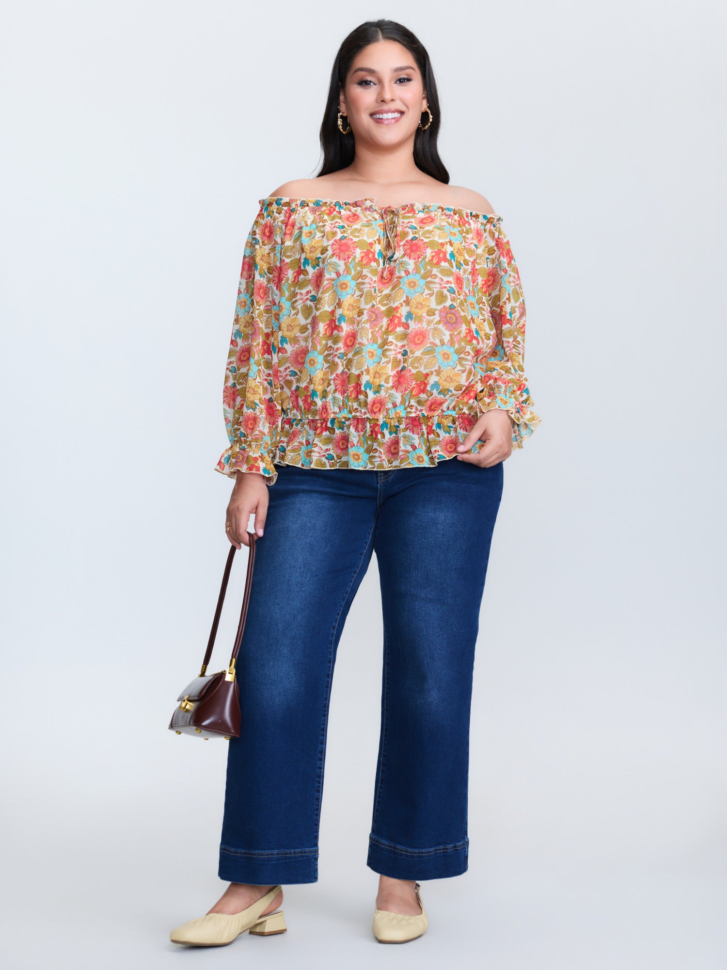 Romantic Off-Shoulder Floral Print Blouse