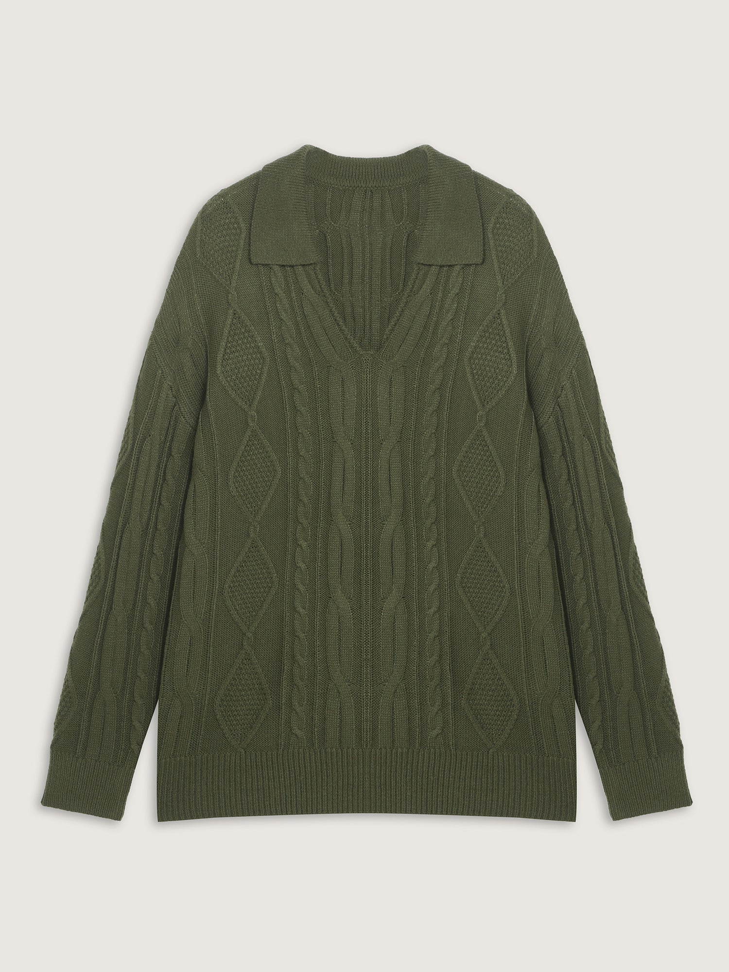 Cable Knit Polo Collar Pullover