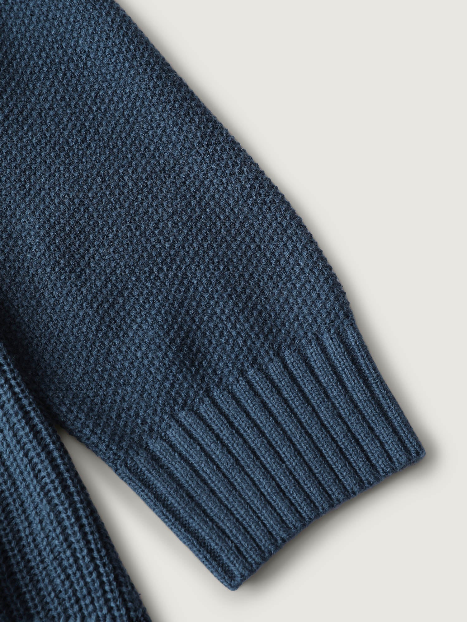 Textured Stretchy Waist Button Sweater Knee-Length Dress