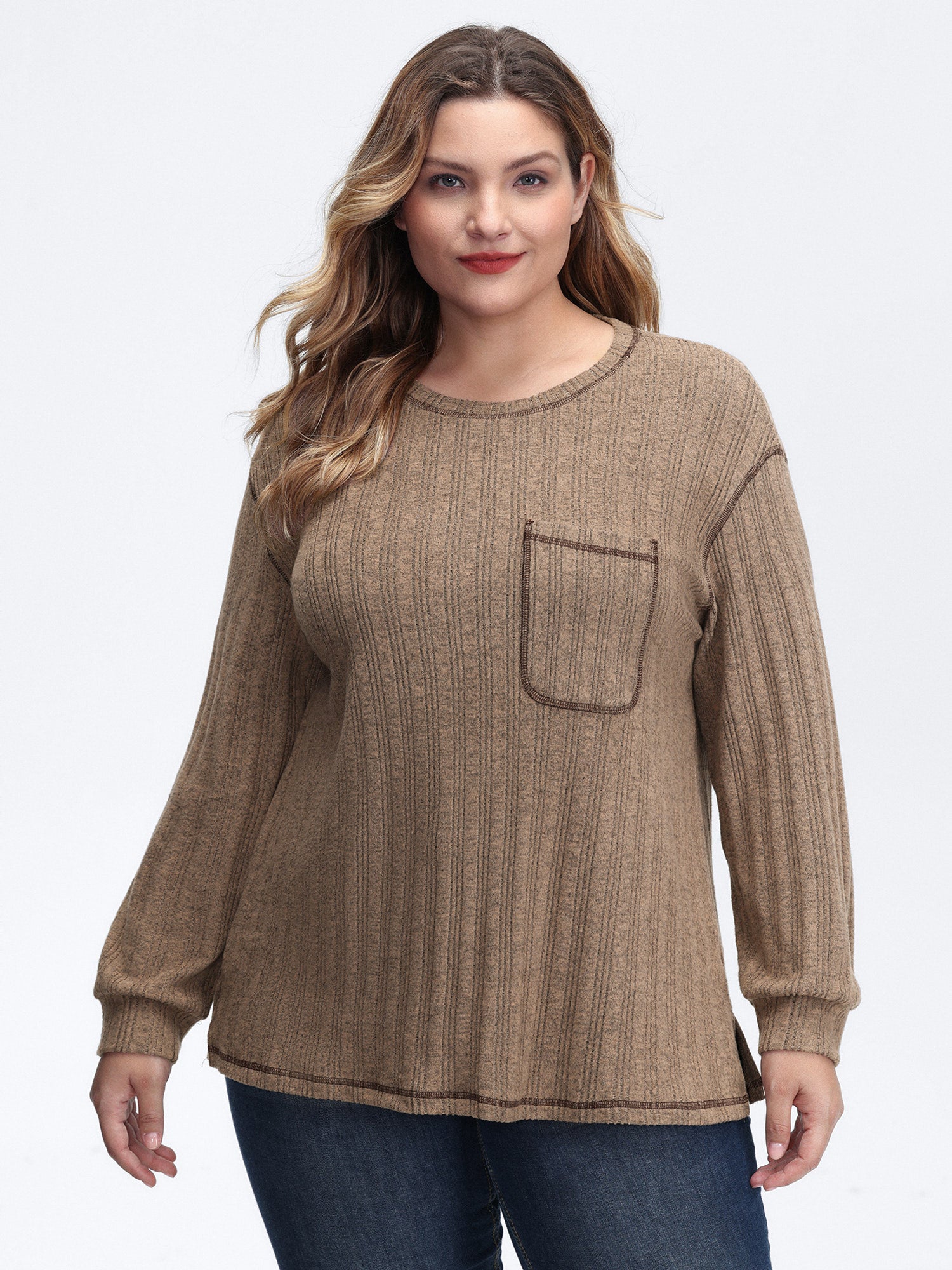 Textured Patch Pocket Round Neck Sweatshirt