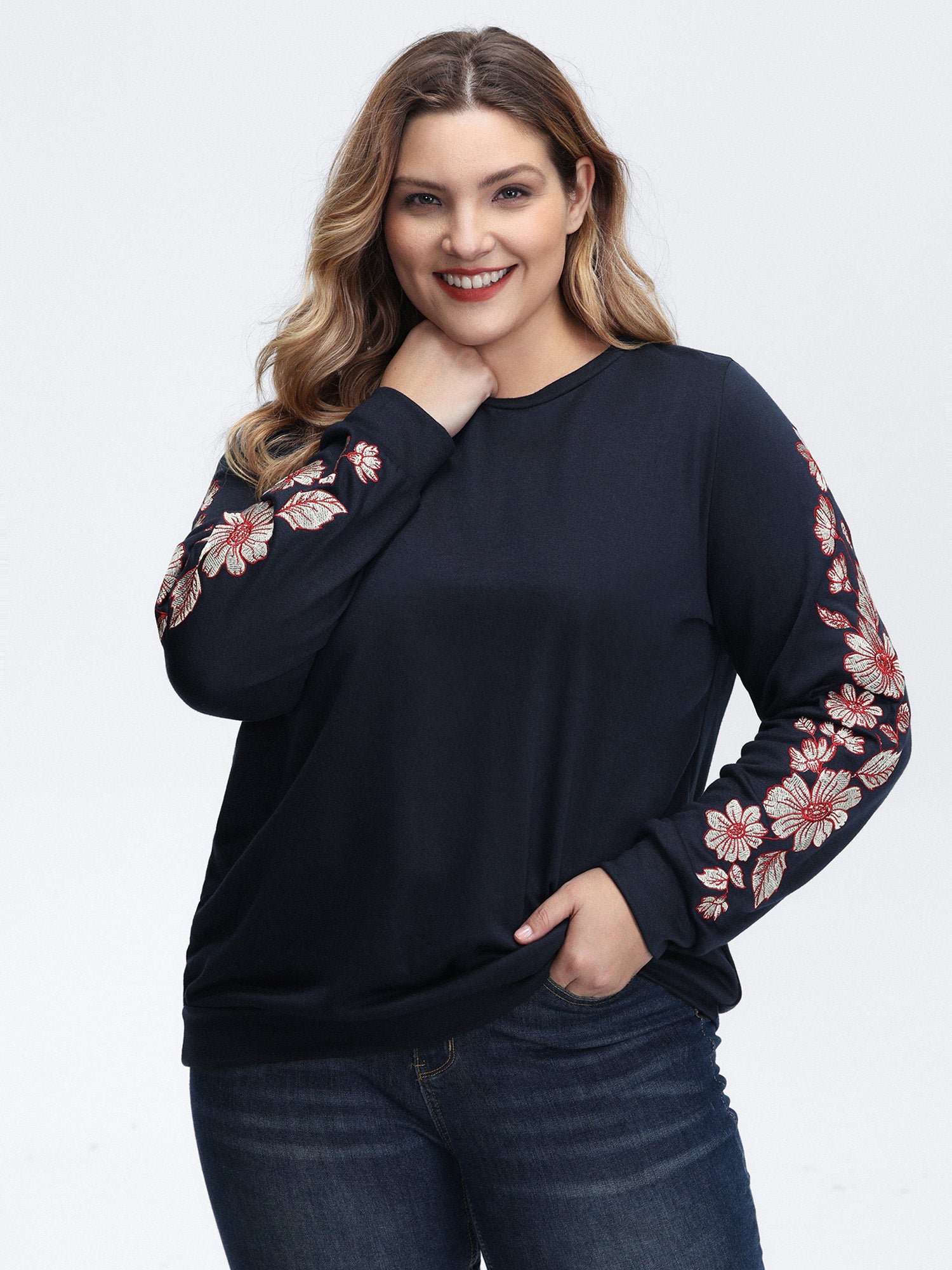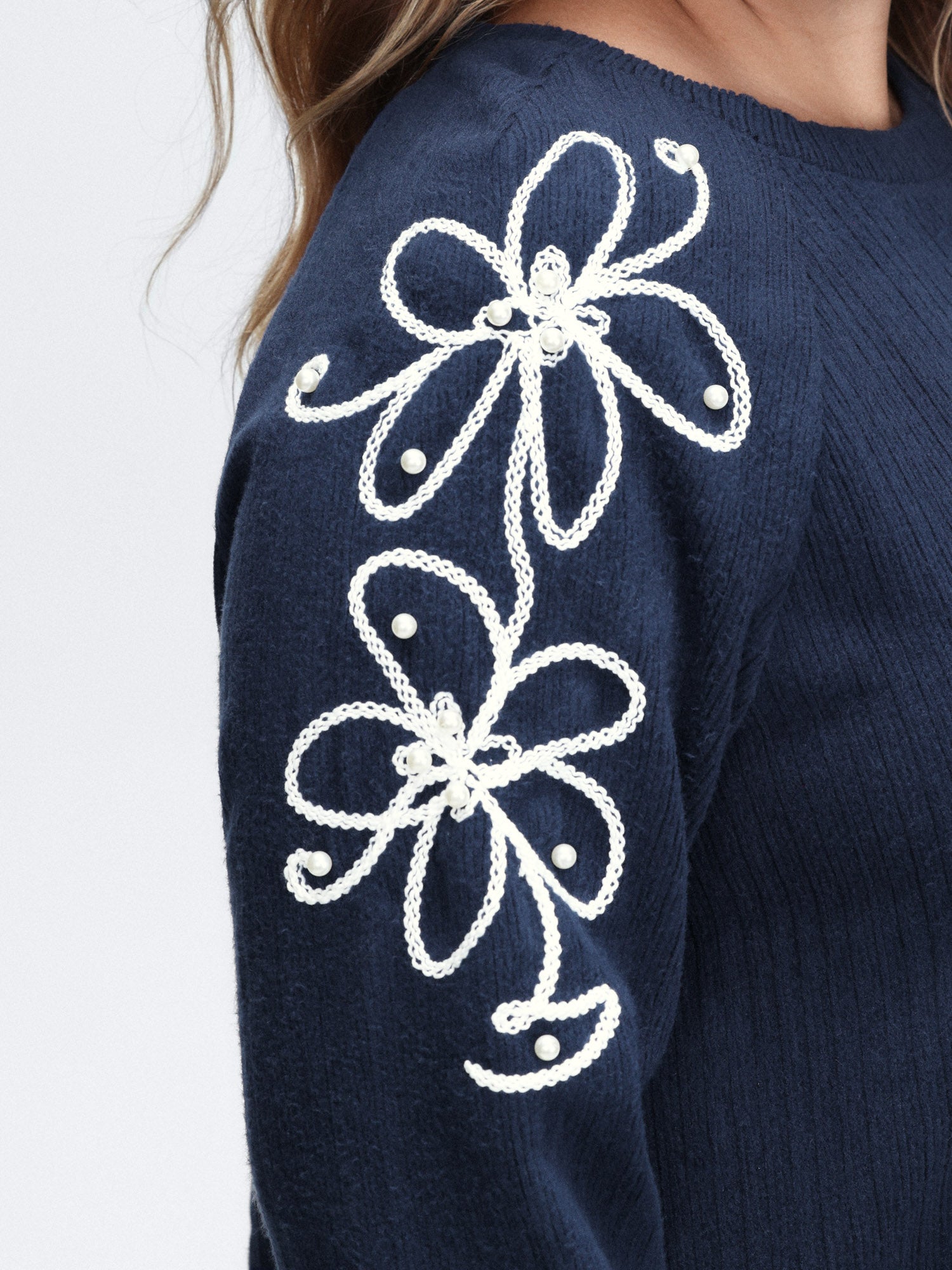Textured Stretchy 3D Beadwork Sweatshirt