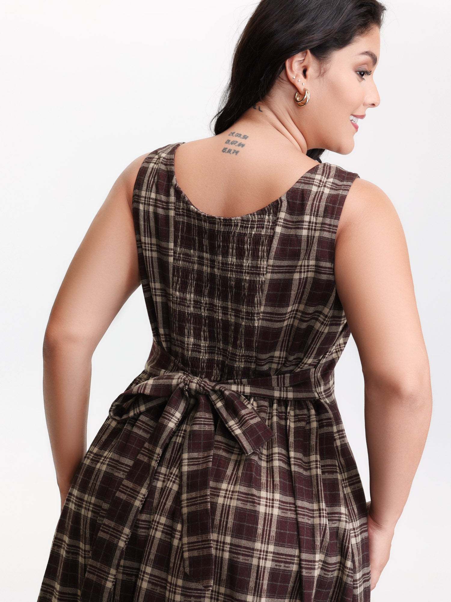 Retro Plaid Drop Waist Tie Midi Dress