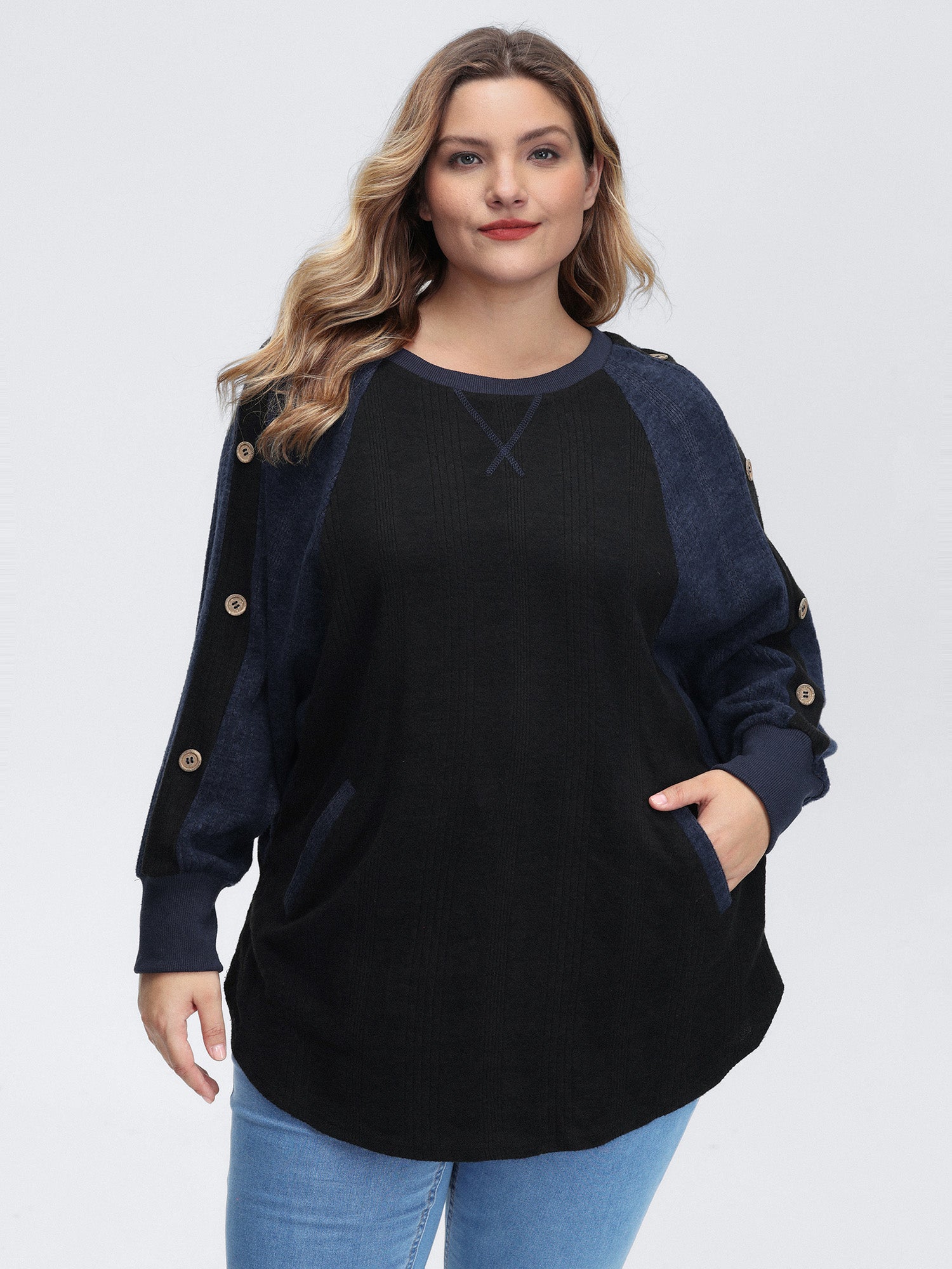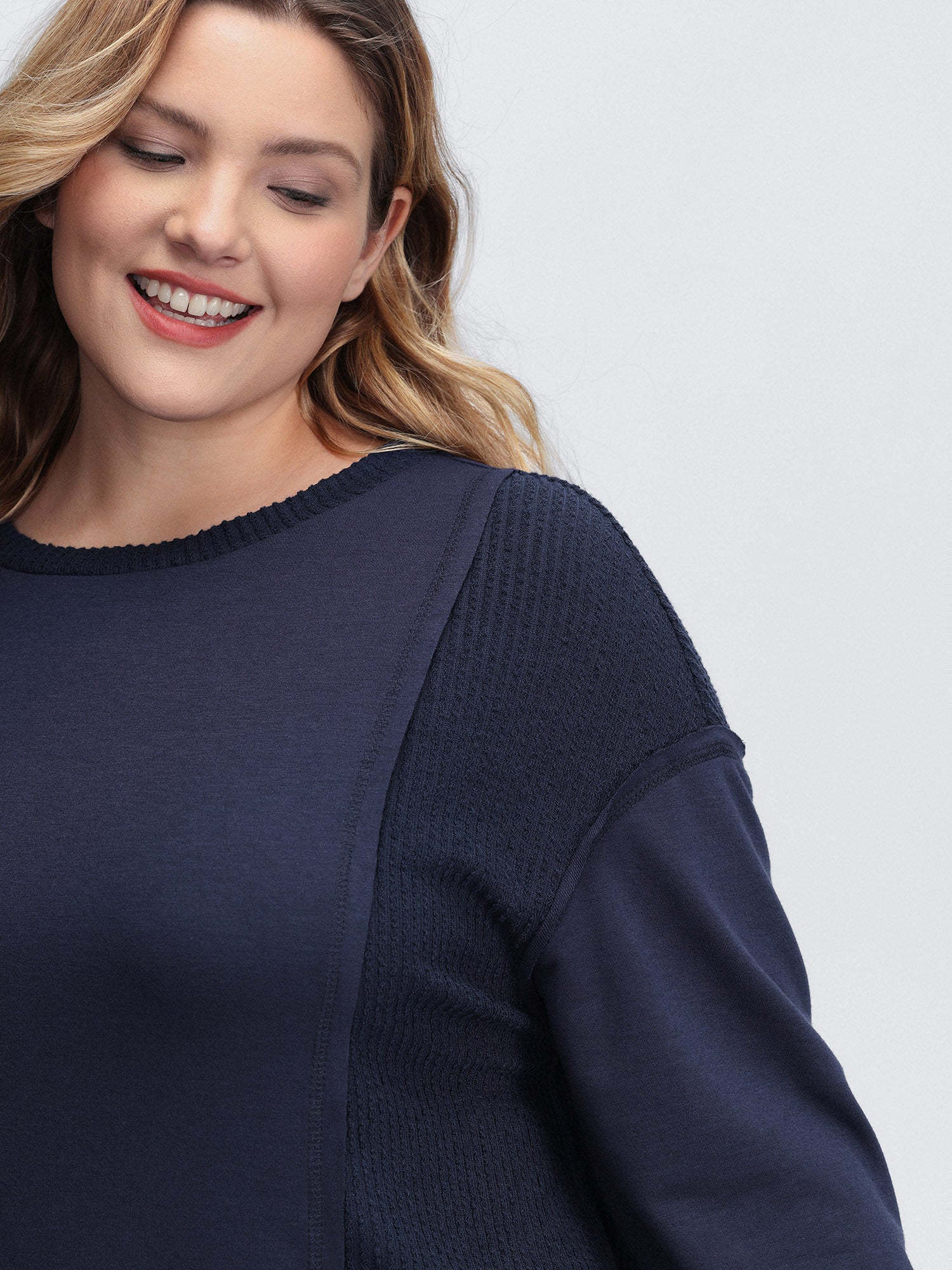 Crew Neck Textured Patchwork Sweatshirt