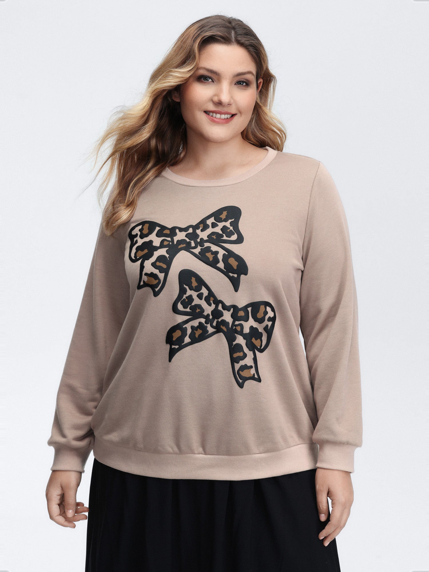 Leopard Bowtie Print Stretchy-Fit Sweatshirt