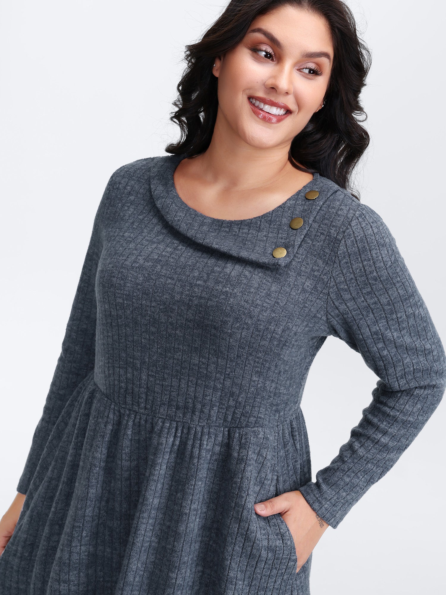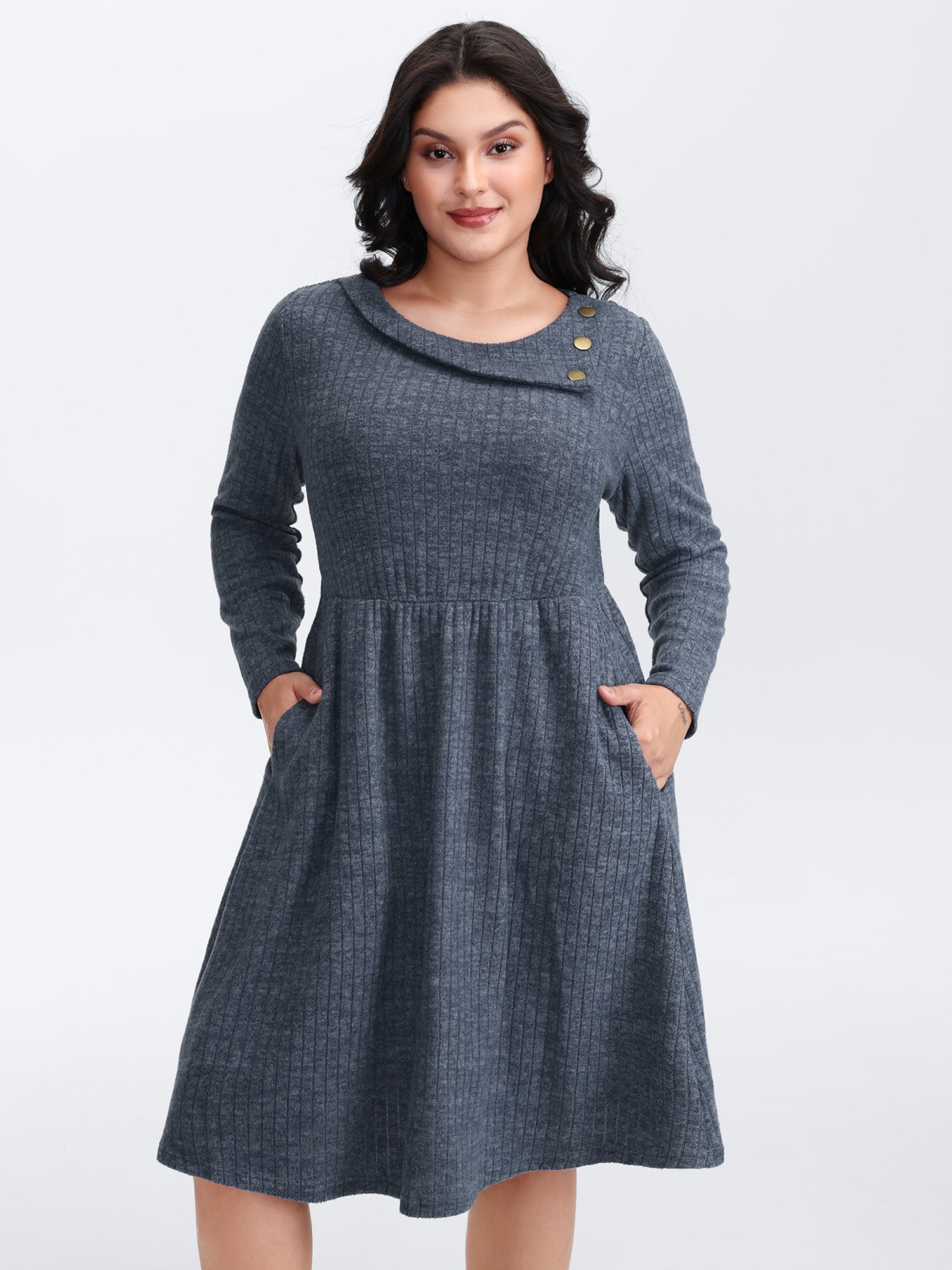 Waffle Velvety Feel Asymmetrical Neck Midi Dress