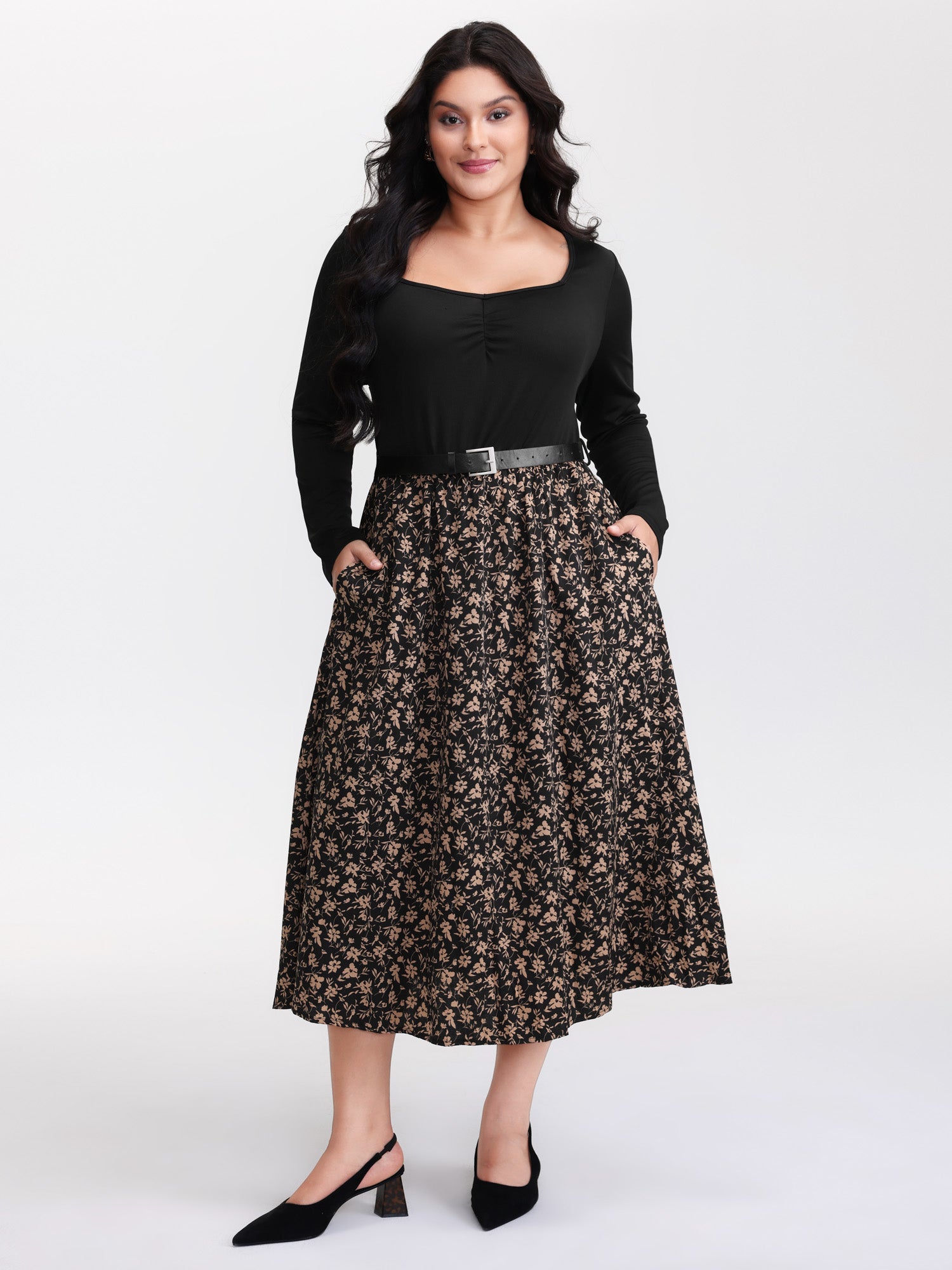 Floral Ruched Detachable Belt Maxi Dress